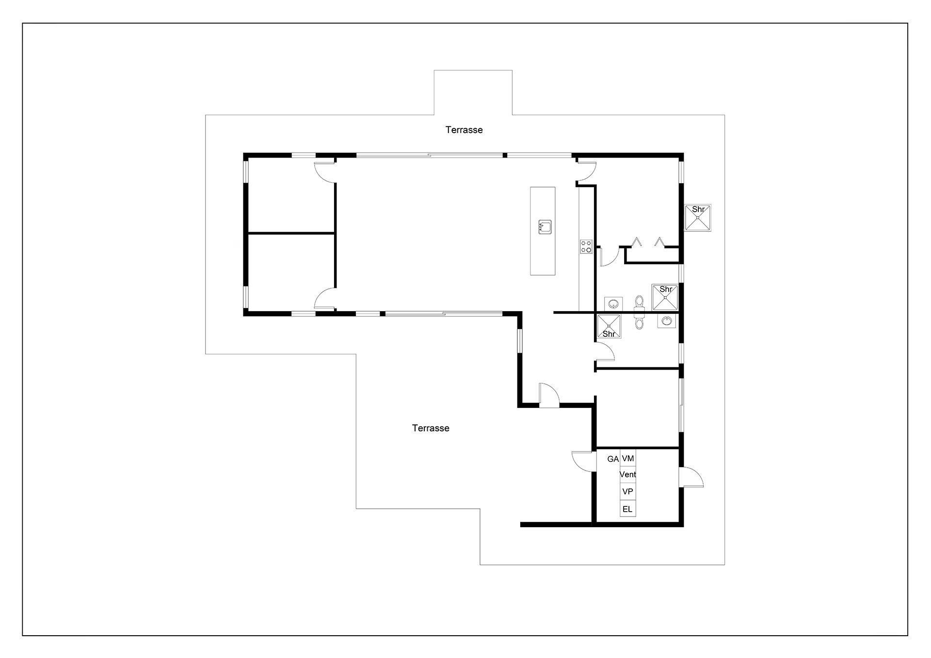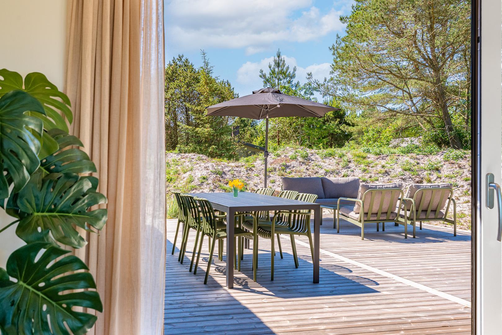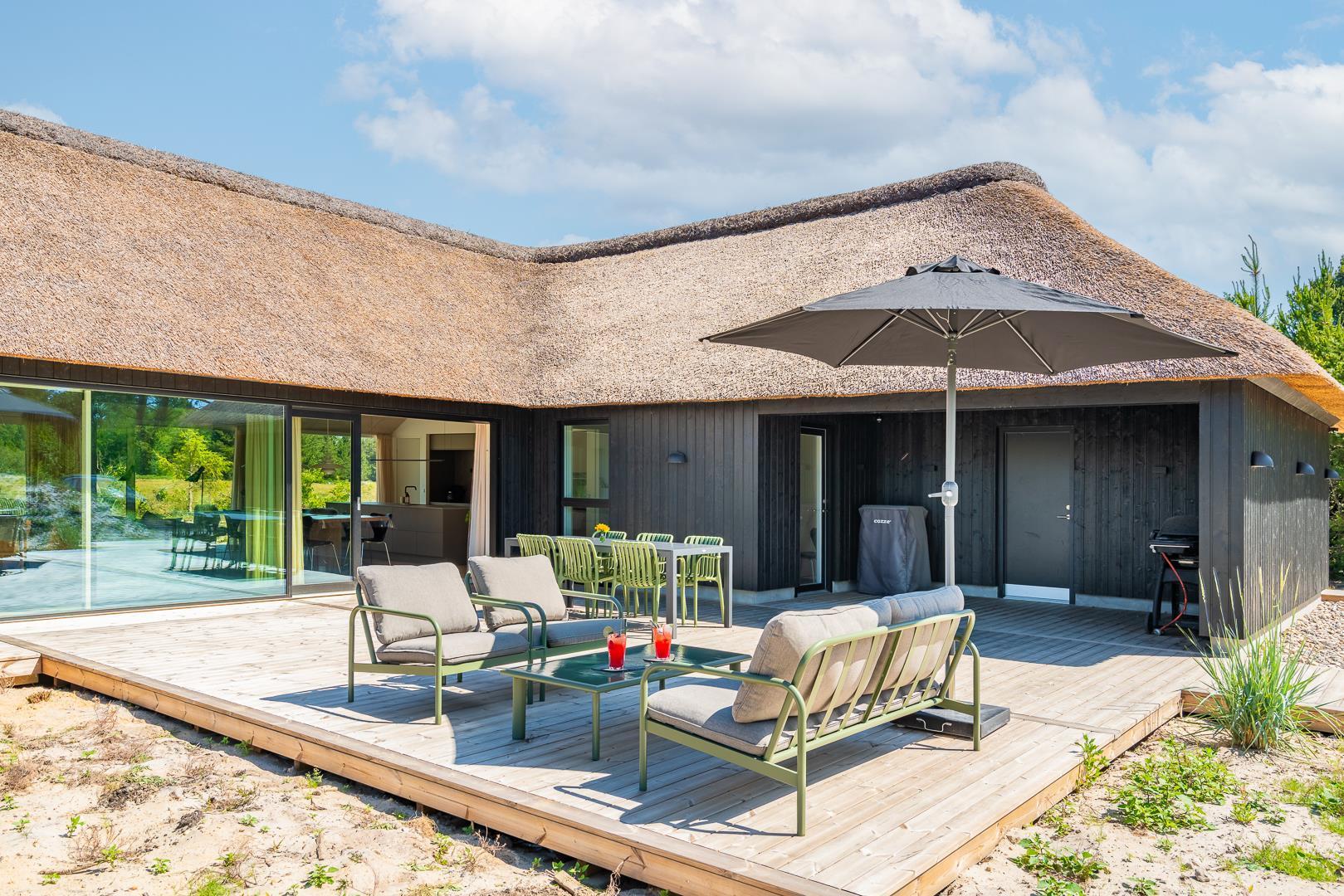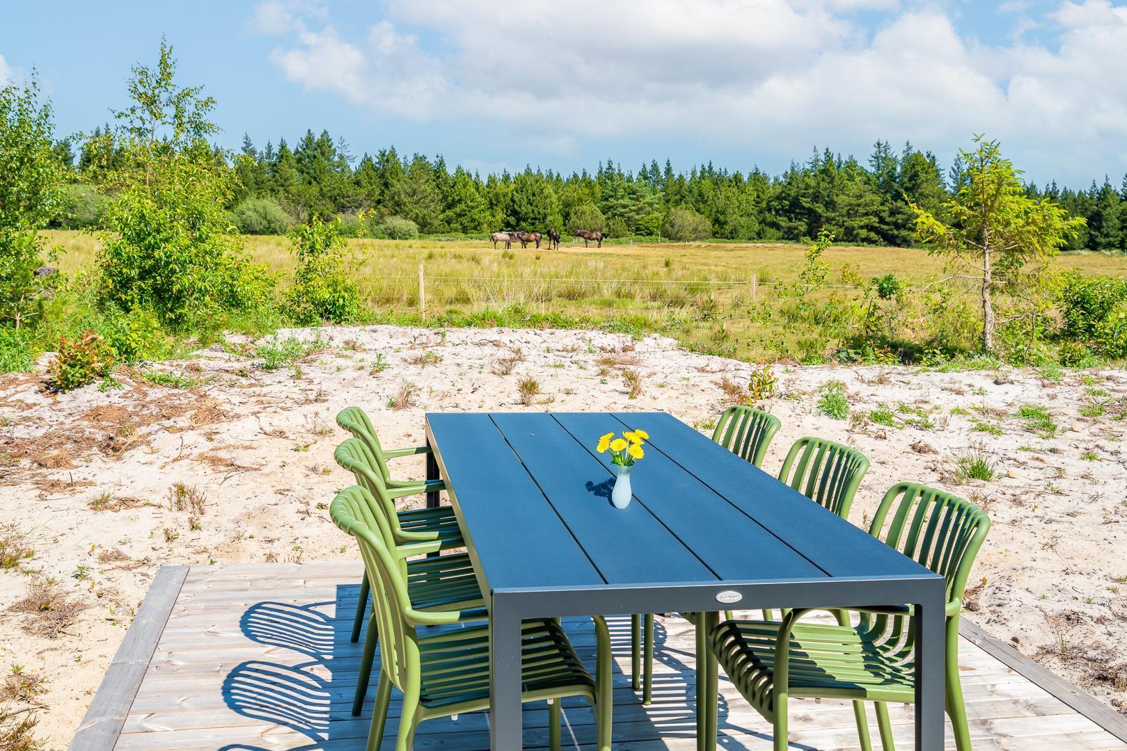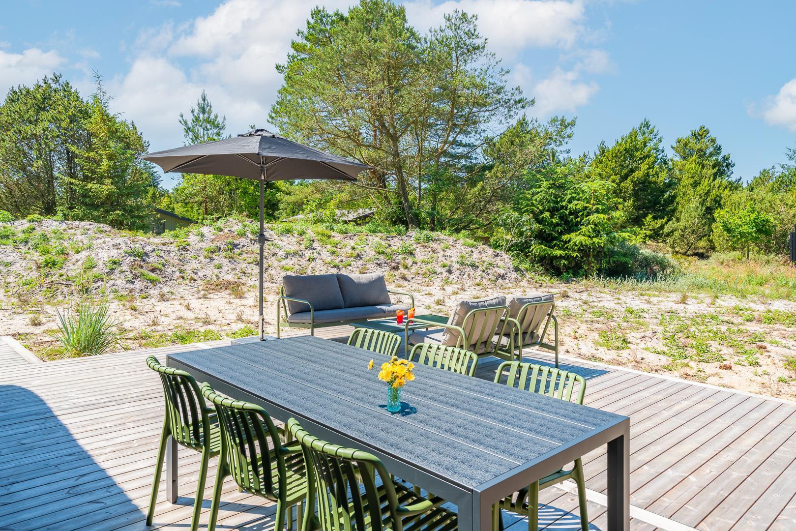 Huset byder på store, skønne træterrasser samt en overdækket terrasse, der smukt omkranser huset og giver mulighed for at nyde udelivet hele dagen — uanset vejr og vind.