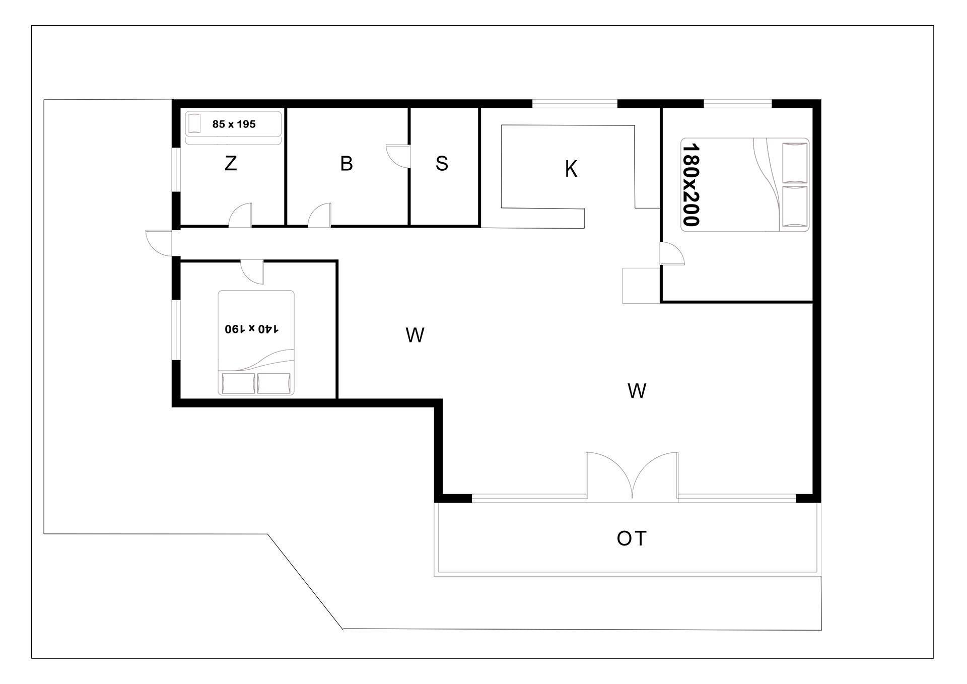 1 dobbeltseng: 140 x 190 cm
