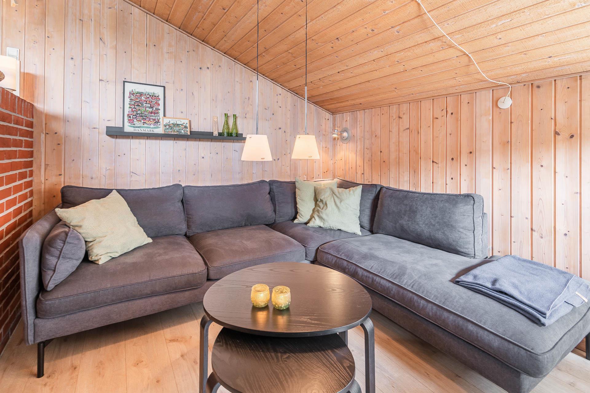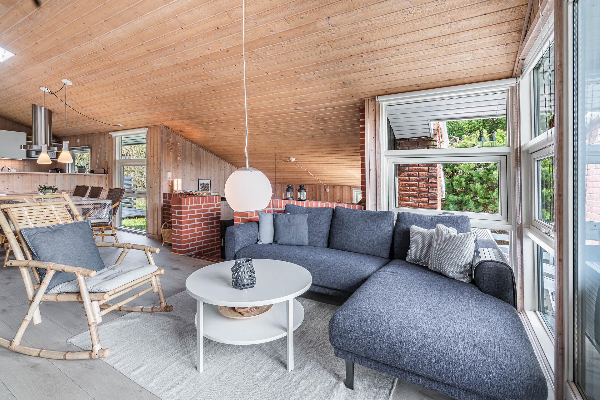 Vil du bo på ugeneret grund i et feriehus beliggende helt tilbagetrukket fra vejen, og i charmerende omgivelser med højt til himlen, så kast et blik på dette feriehus på Søndervang 74. Der er flere terrasser, en del overdækket og med altid mulighed for at finde læ og sol. Helt lukket terrasse, så der er styr på børn og hunden. Huset rummer plads til 6 personer, fordelt på 3 soverum, hvoraf 2 er med dobbeltseng (1 seng 1,60 bred). Nyere køkken med opvaskemaskine og mikroovn. Hyggelig stue og spiseplads med loft til kip. Nedsænket tv-stue, hvor alle kan nyde at slappe af. Både brændeovn og varmepumpe til de kølige dage. Nyere badeværelse med gulvvarme og vaskemaskine. Fryser findes i skuret.