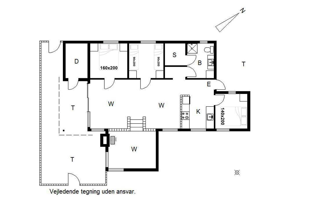 Sengestørrelse: 1 dobbeltseng 160 x 200 cm + 1 dobbeltseng 140 x 200 cm + 2 enkeltsenge 90 x 200 cm.