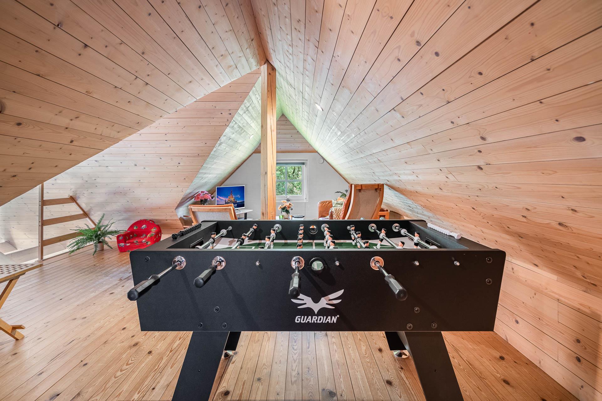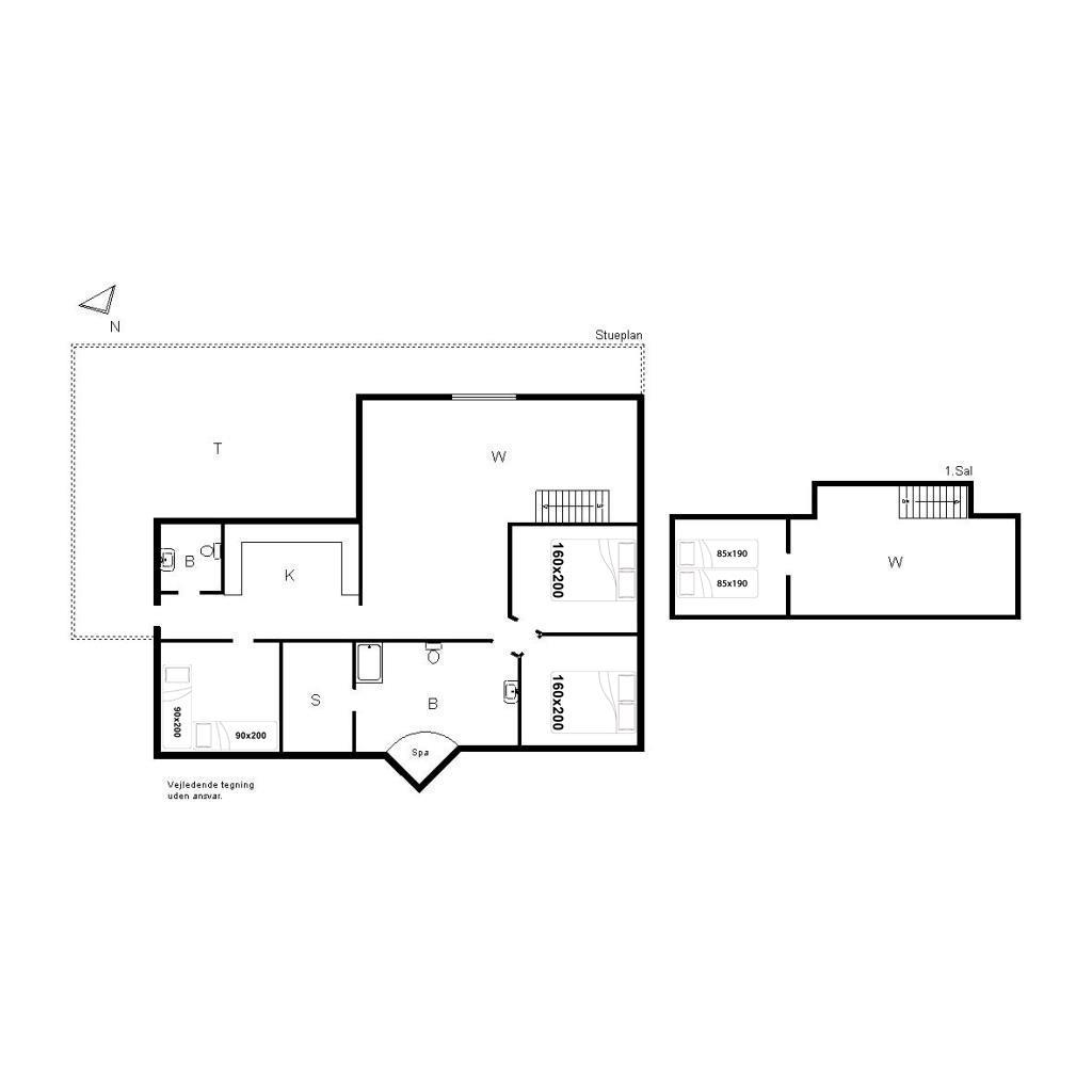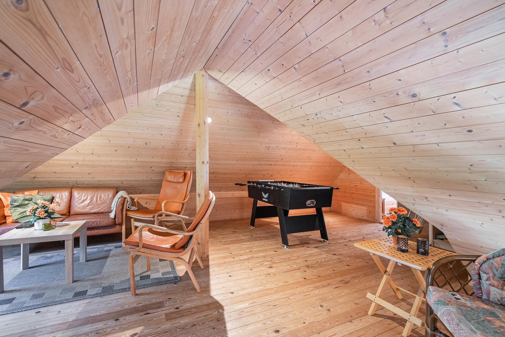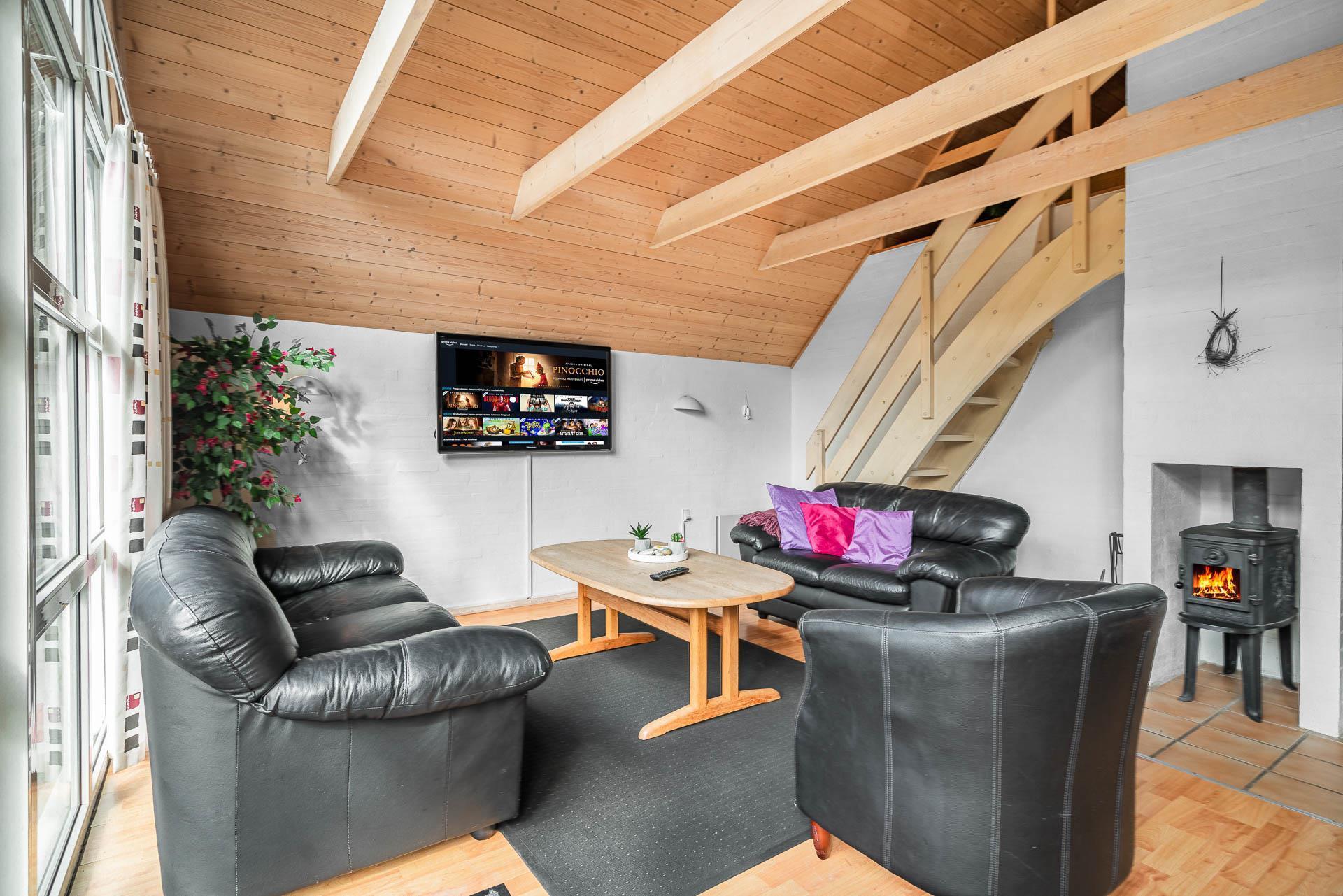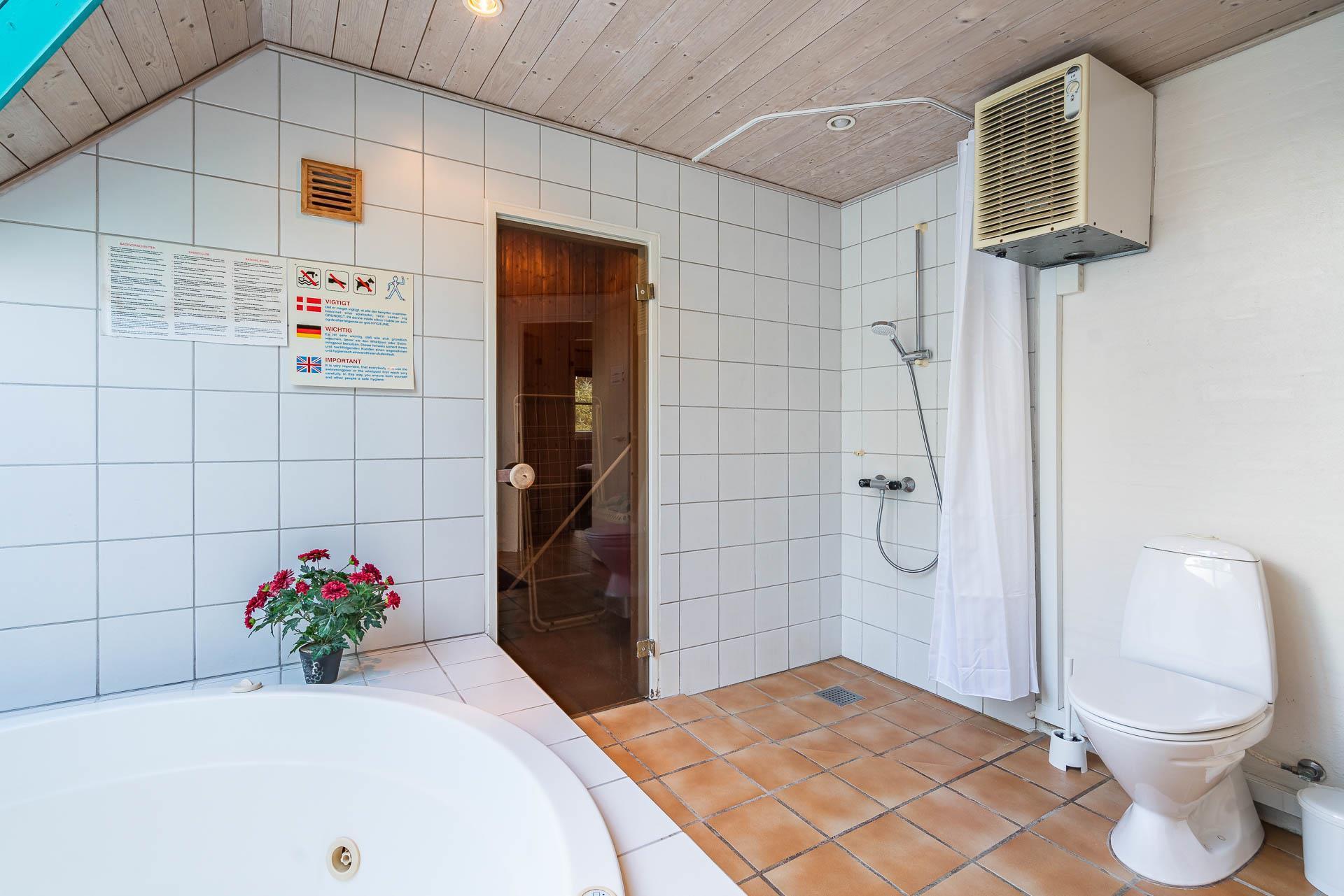 For ende af vej, på dejlig og ugeneret grund, ligger dette stenhus opført med stråtag. Der er altid mulighed for læ på grunden og I vil nyde den sydvendte terrasse. Indendørs tilbydes 4 gode soverum - 3 i stueetagen, 1 med enkeltsenge, og 2 med dobbeltsenge. På 1. sal findes endnu et dobbeltseng værelse. Huset har 2 badeværelser med gulvvarme hvoraf det ene er med standvands spa og sauna. Der er stue med tv både i stueetage og på 1. sal, hvor der også findes bord fodbold. God og velfungerende stue i åben forbindelse til spiseplads og køkken med opvaskemaskine, mikroovn, køle-fryseskab. Her finder du også vaskemaskine med tørretumbler. Der er gratis trådløst internet. Din hund er velkommen. Huset egner til sig godt til 2 familier eller måske blot den pladskrævende familie.