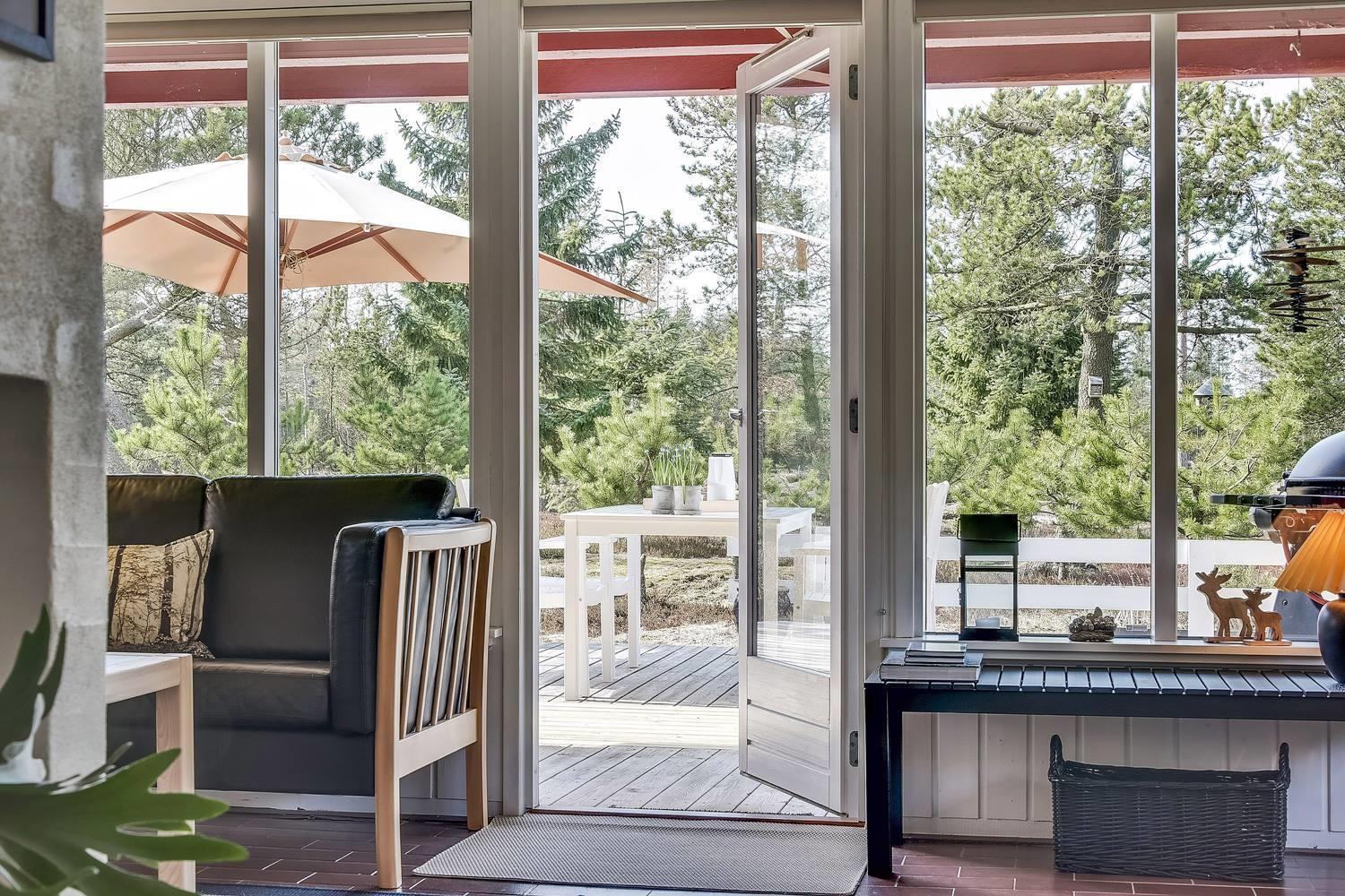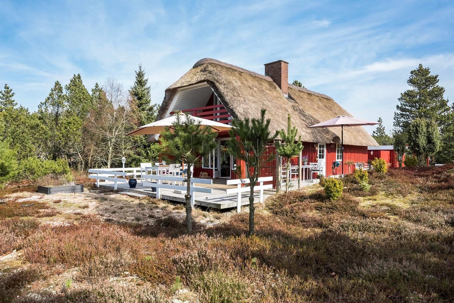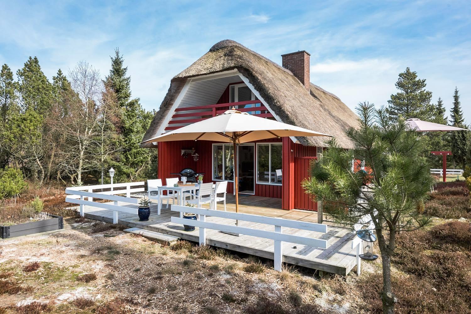 For ende af vej, i helt stille og rolige omgivelser ligger dette meget velholdte og personlige feriehus med direkte udsigt over den skønne Blåbjerg Klitplantage. Her er 3 skønne terrasser, åben, overdækket og med en pragtfuld solgård - her er altid mulighed for en god læ krog og ofte vil I kunne betragte rådyrene, der kommer meget tæt på. Grunden er på 2500 m2 og ugeneret beliggende. Indendørs finder I 3 gode soverum - i stue plan 1 x dobbeltseng og på 1. sal 2 soverum med enkeltsenge.