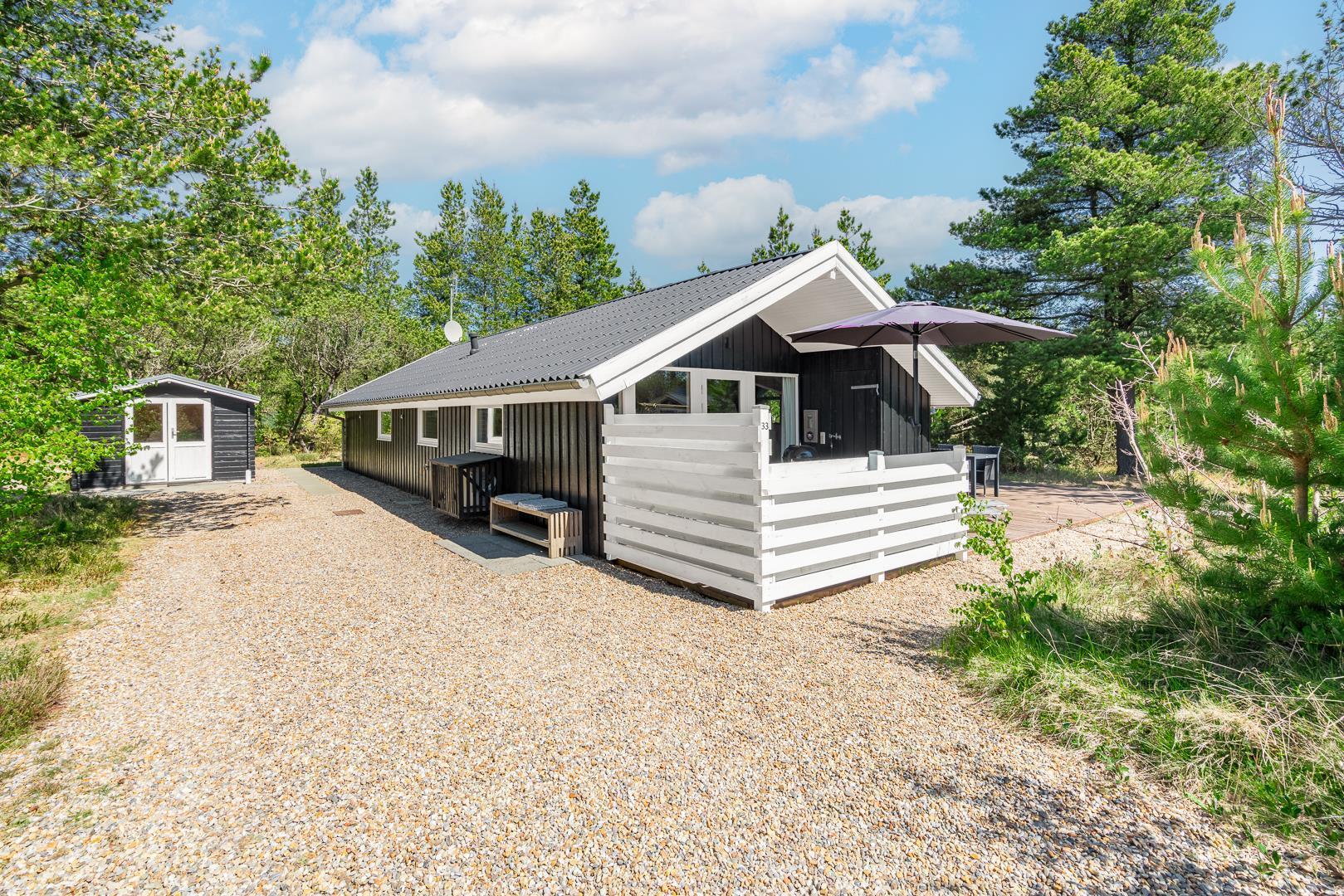 For ende af vej i den dejlige Blåbjerg Klitplantage, finder I dette attraktive feriehus, beliggende på en naturgrund med bevoksning. Til huset hører et 10 kvm skur. - evt. til opbevaring af cykler. I vil nyde at få besøg af rådyr på grunden - en terapi for sjælen.