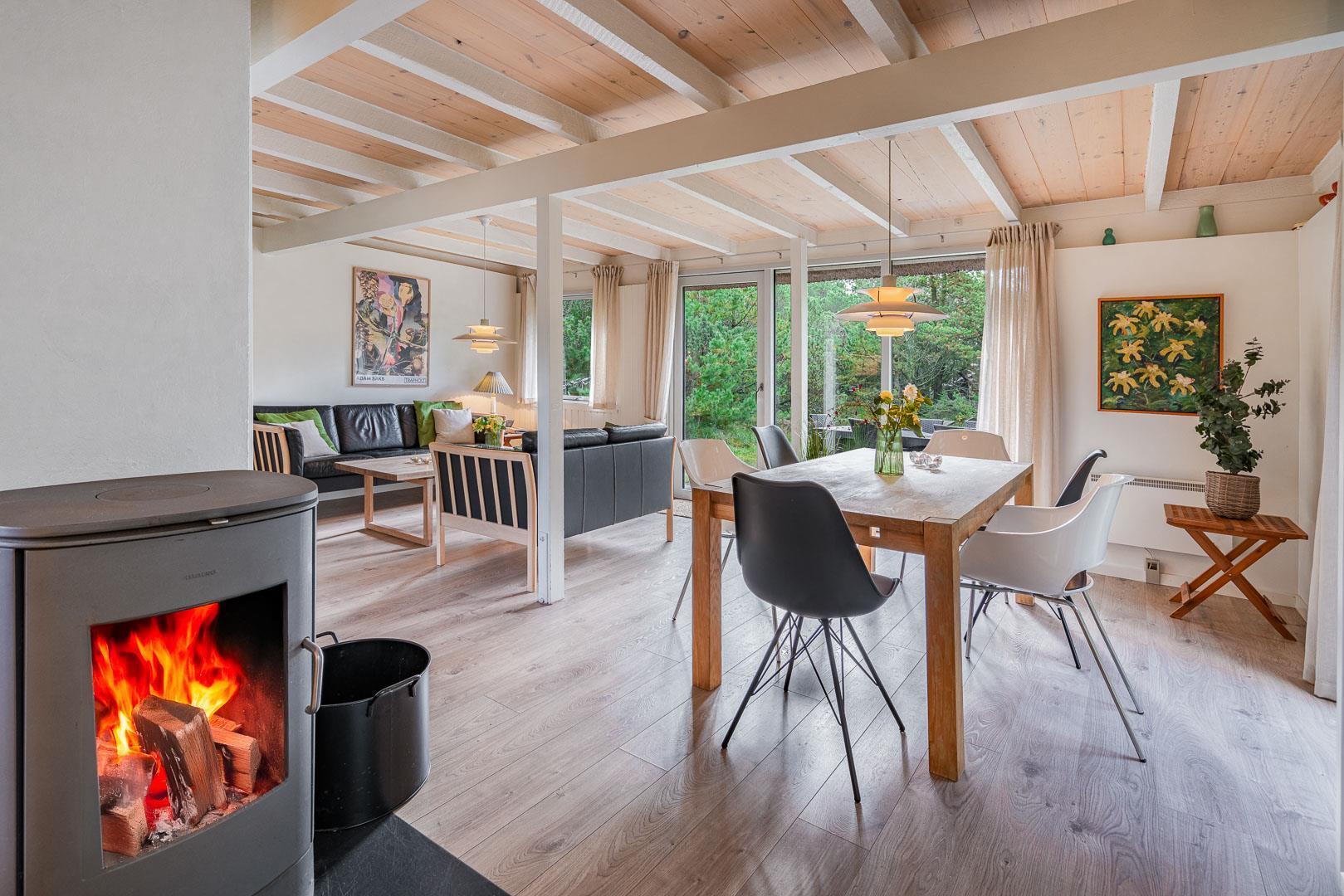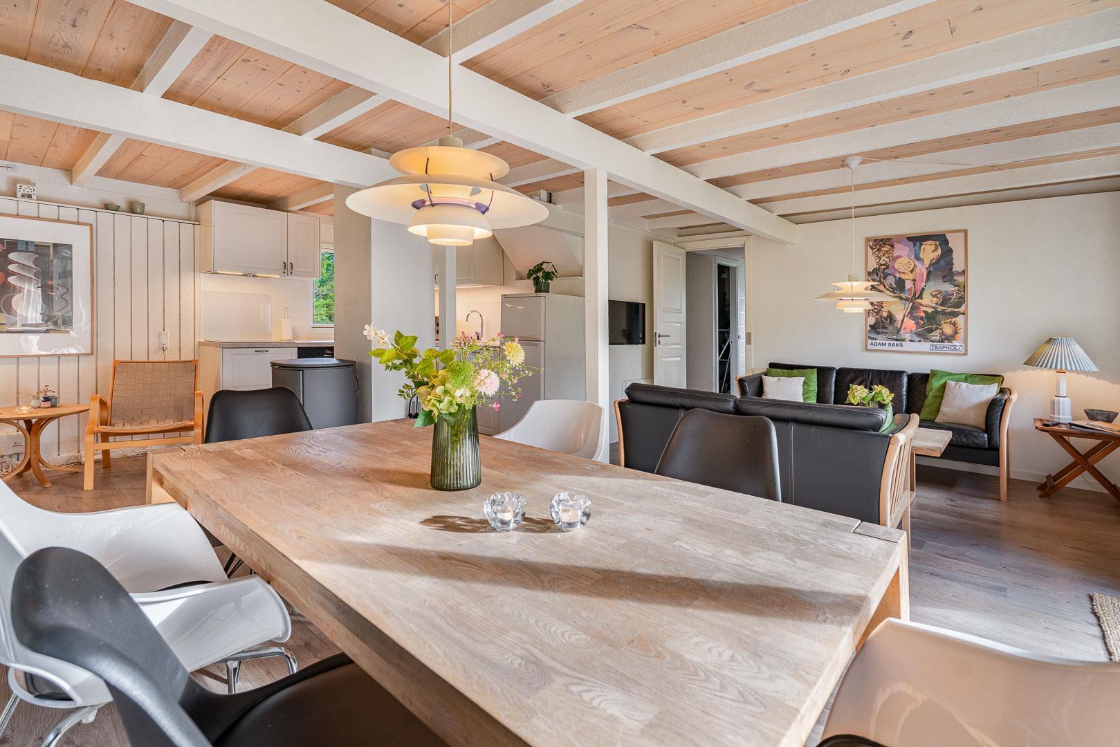 Sommerhuset er renoveret i 2024 med et stilfuldt, moderne køkken og bad, samtidig med at den autentiske og charmerende sommerhusstemning er bevaret. Indenfor mødes du af et lyst og indbydende køkken/alrum, der danner rammen om fælles madlavning, hyggelige måltider og afslappede stunder. Brændeovnen står centralt placeret og spreder varme og hygge til hele rummet samt den hyggelige stue, hvilket gør hele rummet til et naturligt samlingspunkt.