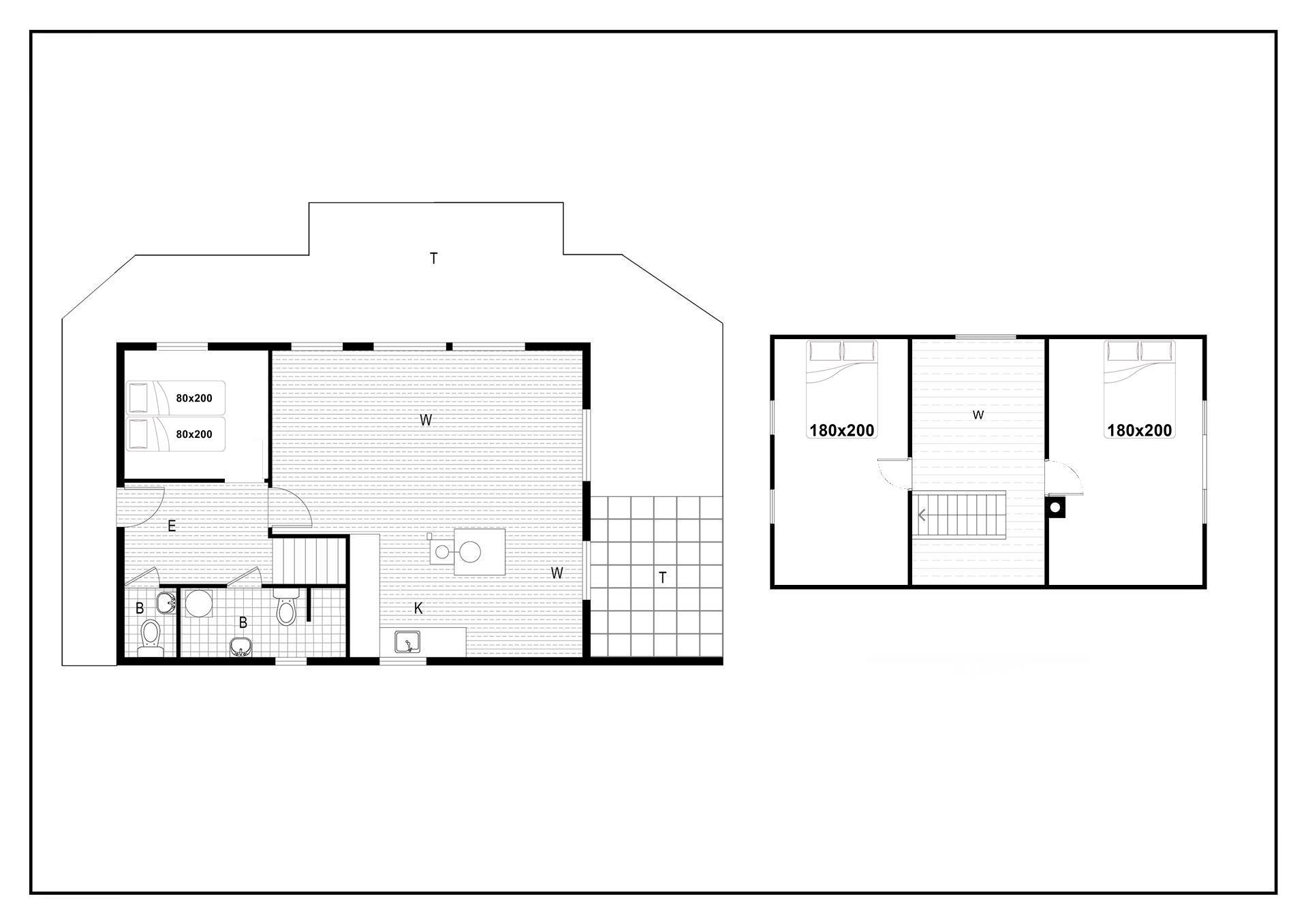 Fra stuen er der udgang til en overdækket terrasse, hvor du kan nyde udendørs måltider og grille – selv når vejret ikke helt spiller med. I stueetagen finder du desuden et badeværelse, et ekstra toilet og et soveværelse med dobbeltseng. På førstesalen er der to hyggelige soveværelser med dobbeltsenge samt en lille opholdsstue, hvor du kan slappe af med en god bog eller børnene kan få lov til at slappe af med lidt TV.