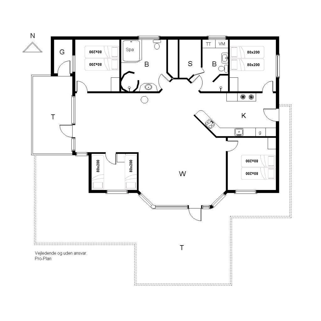 Sommerhuset har 4 soveværelser: 3 med dobbeltsenge og 1 med to enkeltsenge – perfekt til både børn og voksne. De 2 badeværelser har gulvvarme, og i det ene finder I en spa, hvor I kan lade batterierne op efter en dag på stranden.
