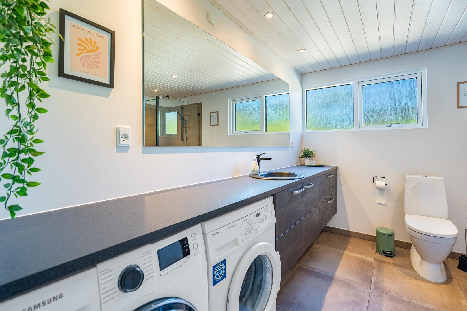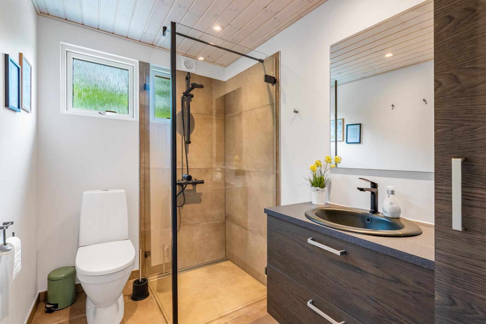 Desuden to nye moderne badeværelser, fra 2025, med gulvvarme og den ene med sauna.
