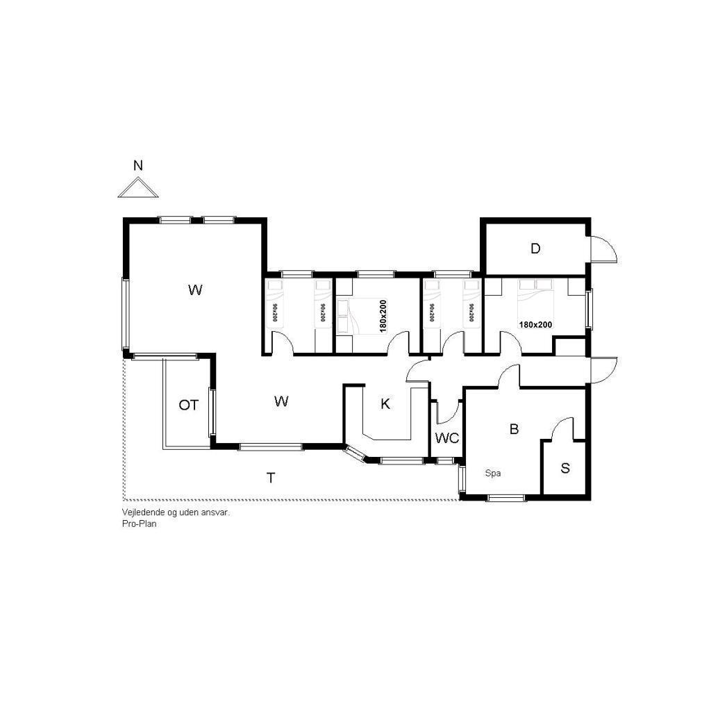 Sengestørrelse: 2 dobbeltsenge 180 x 200 cm + 2 enkeltsenge 90 x 200 cm.