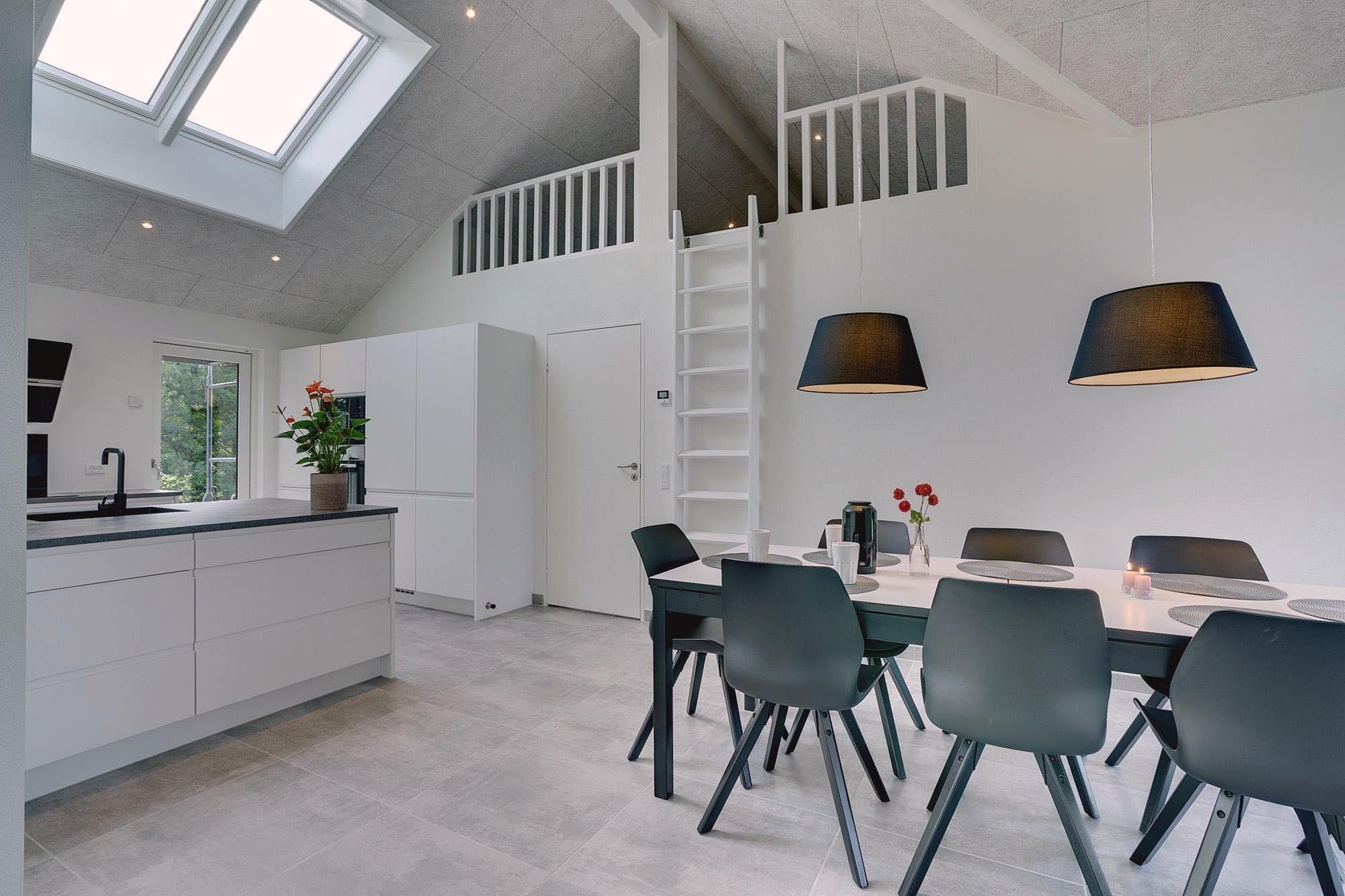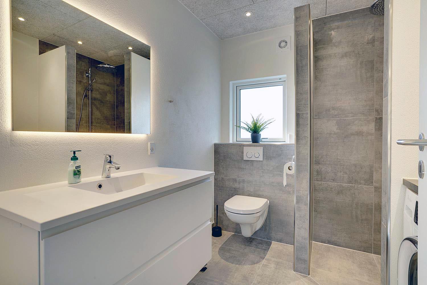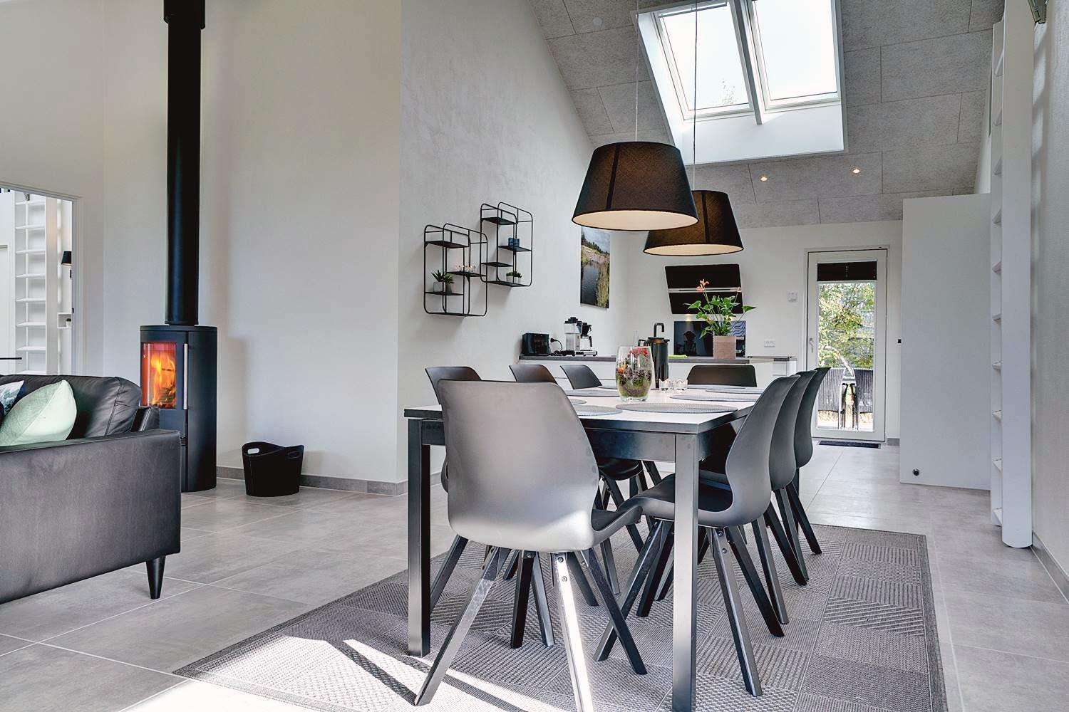 Stort køkken kombineret med spiseplads og opholdsstue med brændeovn og varmepumpe - et vand til luft anlæg sørger for godt indeklima og en reduceret strømregning. Overalt er her gulvvarme. Dejligt indgangsparti med bryggers.