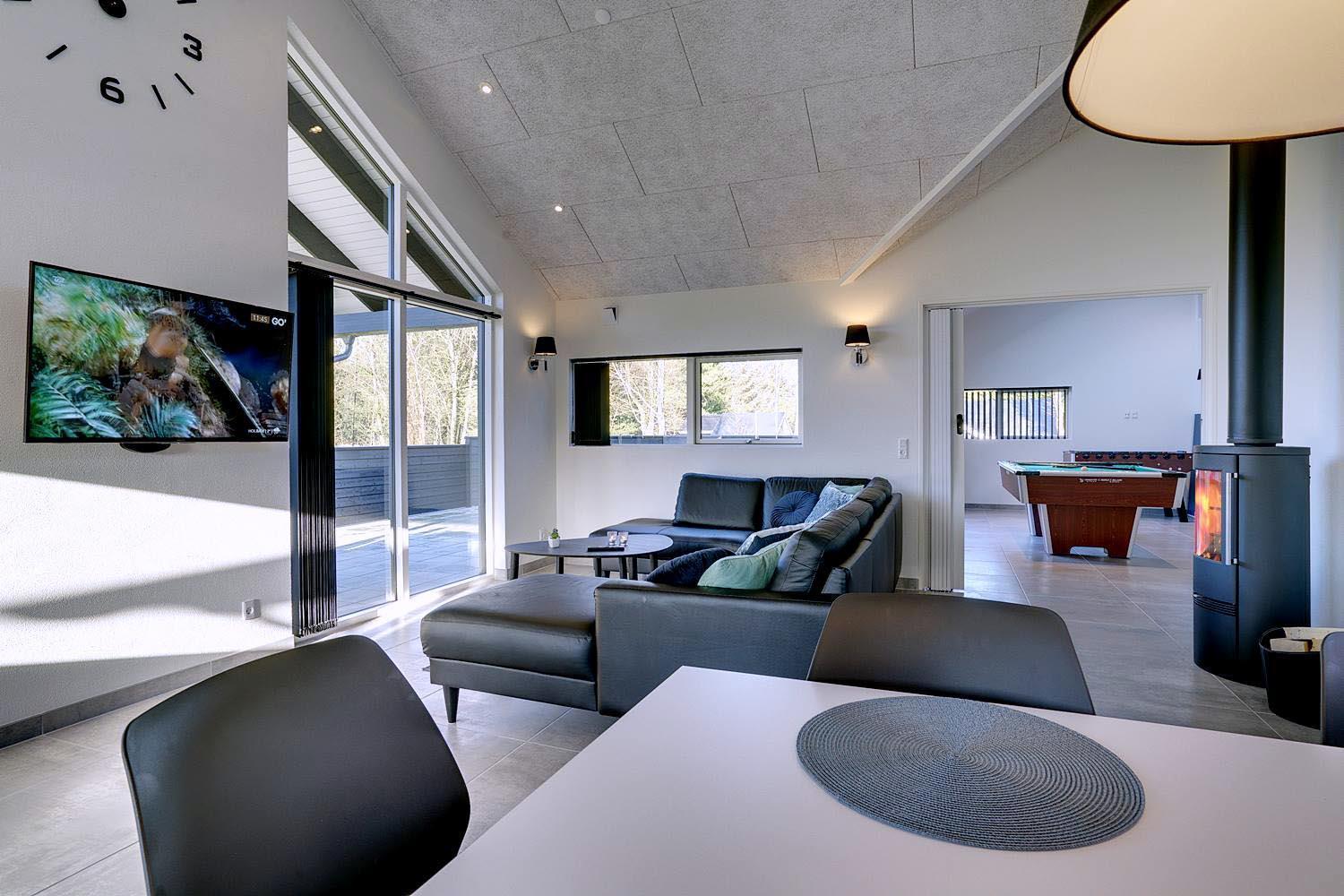 Nyere kvalitetshus beliggende i helt udbygget feriehus område, Hedevang 22. SEPARAT AKTIVITETSRUM med billard, bordtennis, bordfodbold, arcade spilleautomat, dart og afslapning for hele familien. Med sine 150 m2 er huset rummeligt og her er god plads til 2 familier. Huset har 2 afdelinger med hver 2 soverum og et badeværelse. Desuden wellness med spa og infrarød sauna - det store badeværelse har 2 brusere.