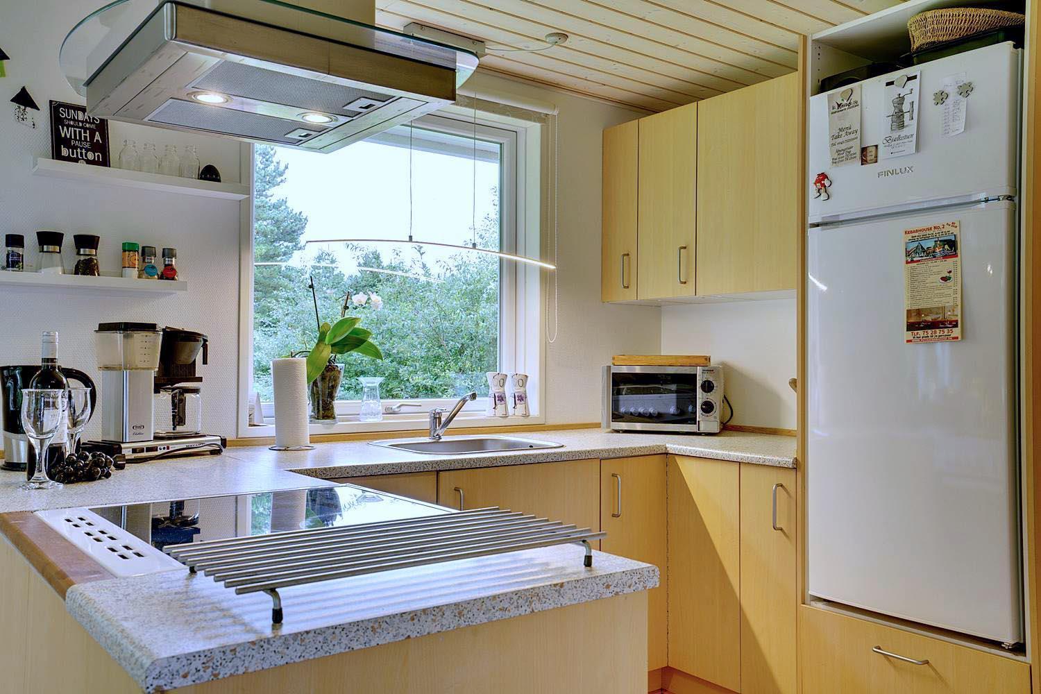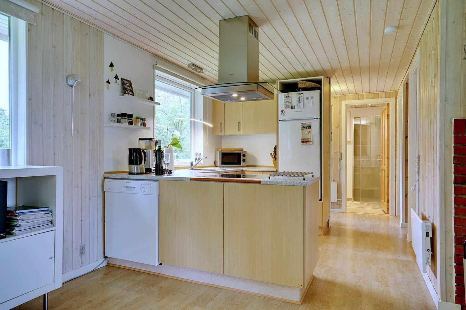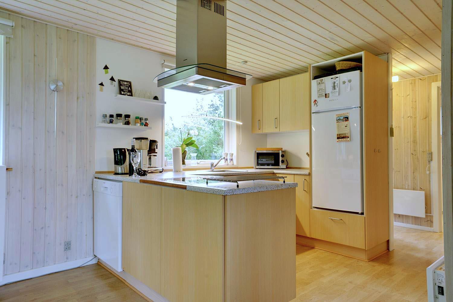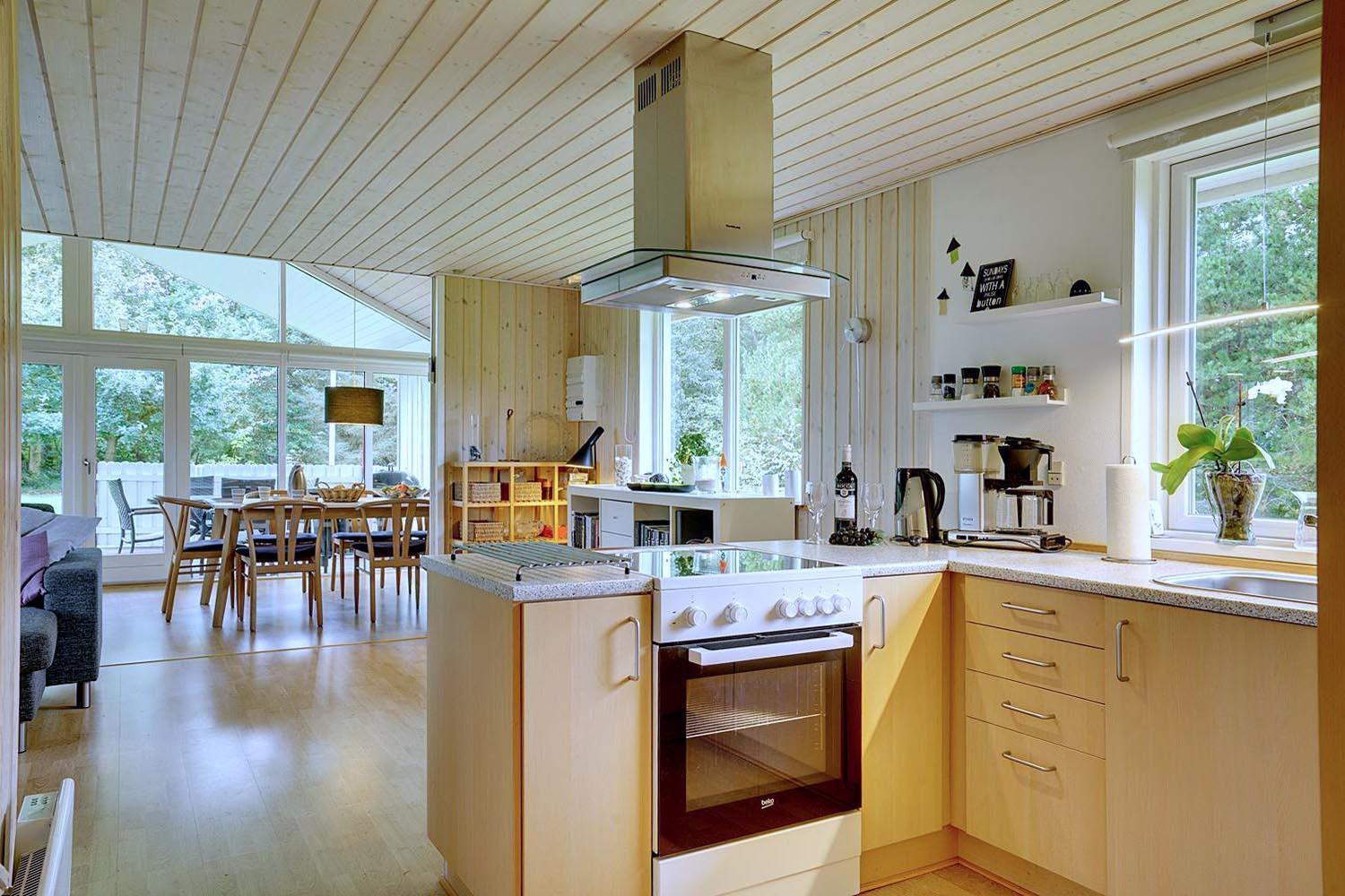 Køkkenet er fuldt udstyret med bl.a. opvaskemaskine – så er der mere tid til hygge! Her er to soveværelser: ét med dobbeltseng og ét med to enkeltsenge. Sengestørrelser: 1 dobbeltseng 180 x 200 cm + 2 enkeltsenge 90 x 200 cm.