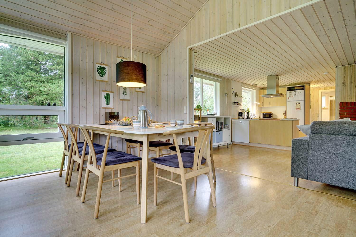 Sommerhuset på Engvejen 27 er 70 m² og indrettet med alt, hvad I har brug for til en komfortabel ferie. Den åbne stue har brændeovn og varmepumpe – perfekt til afslapning efter en dag ved havet. Der er også Chromecast, så I kan streame jeres yndlingsfilm og -serier.