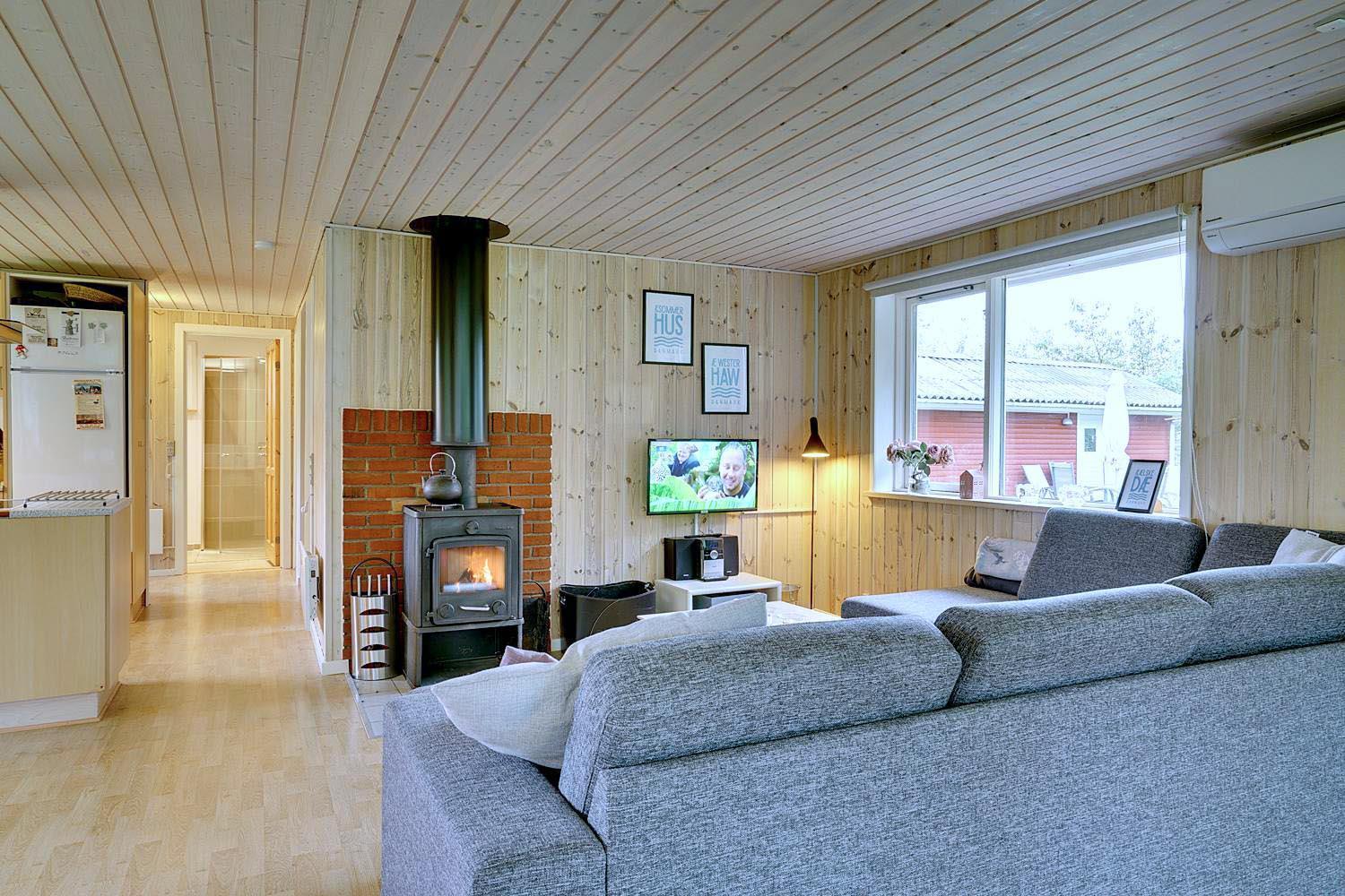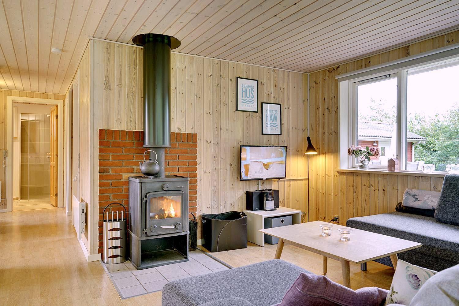 Indendørs hygge med brændeovn, Chromecast og plads til hele familien