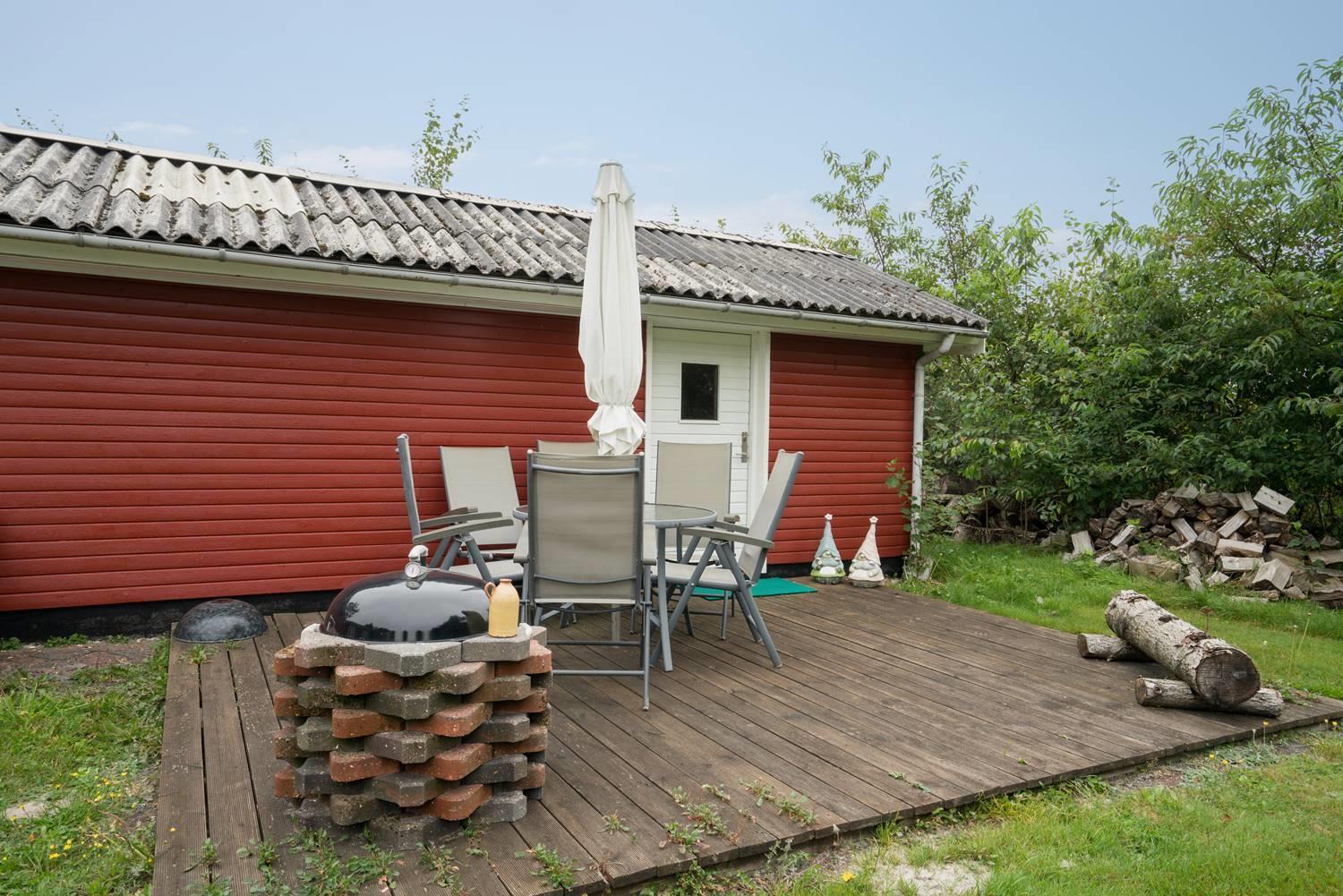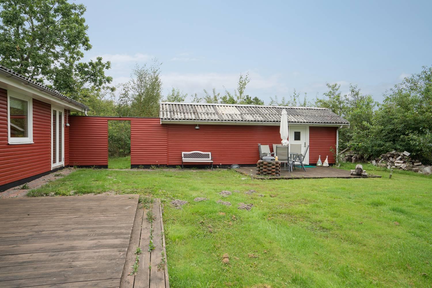 Udenfor kan I nyde jeres ferie i fulde drag. Haven er indhegnet – perfekt, hvis I har hund eller små børn med. Her er trygge rammer til leg og afslapning.