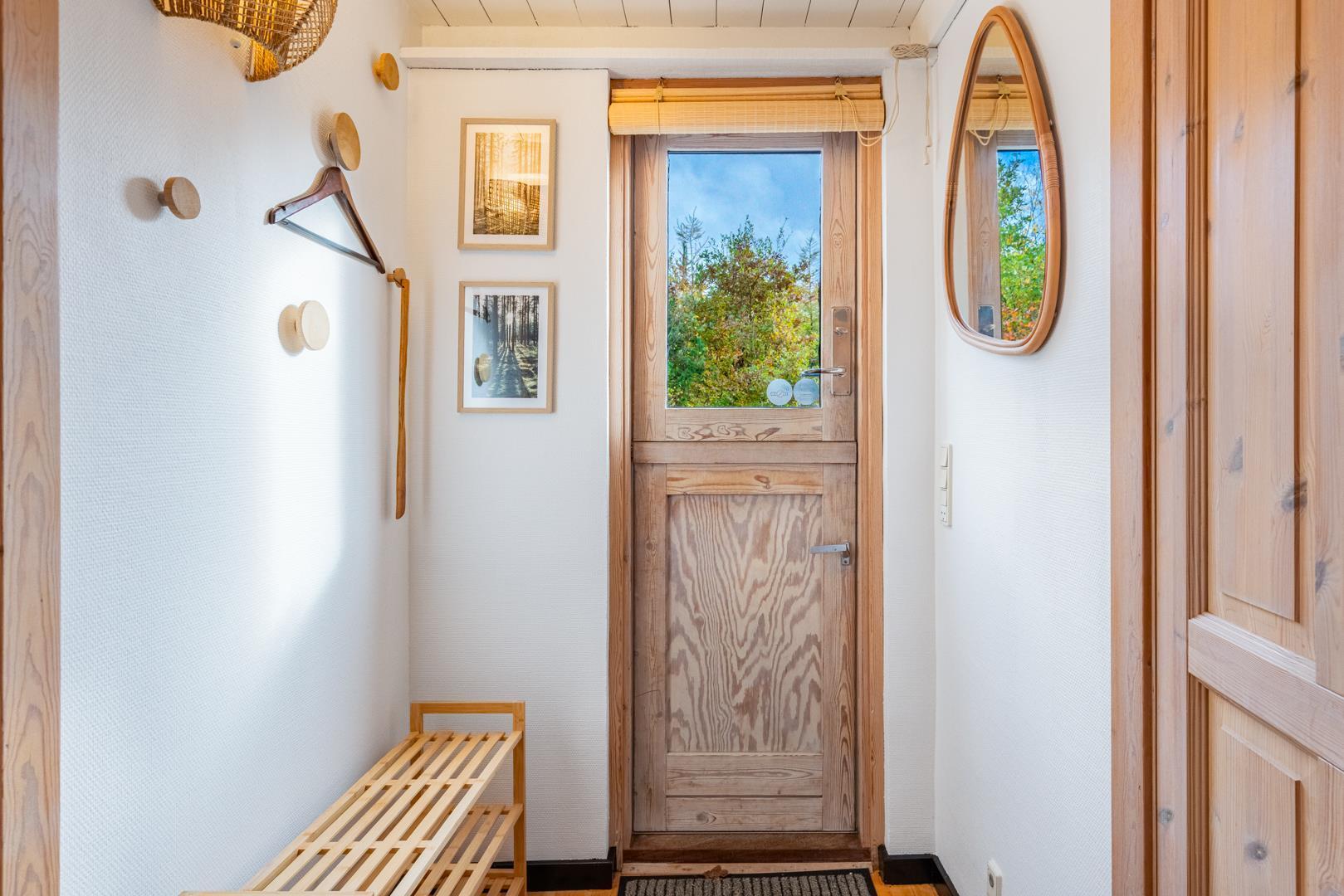 På Ndr. Skovvej 28 ligger dette hyggelige feriehus som oser af helt klassisk sommerhusstil med en personlig indretning og masser af små, fine detaljer.