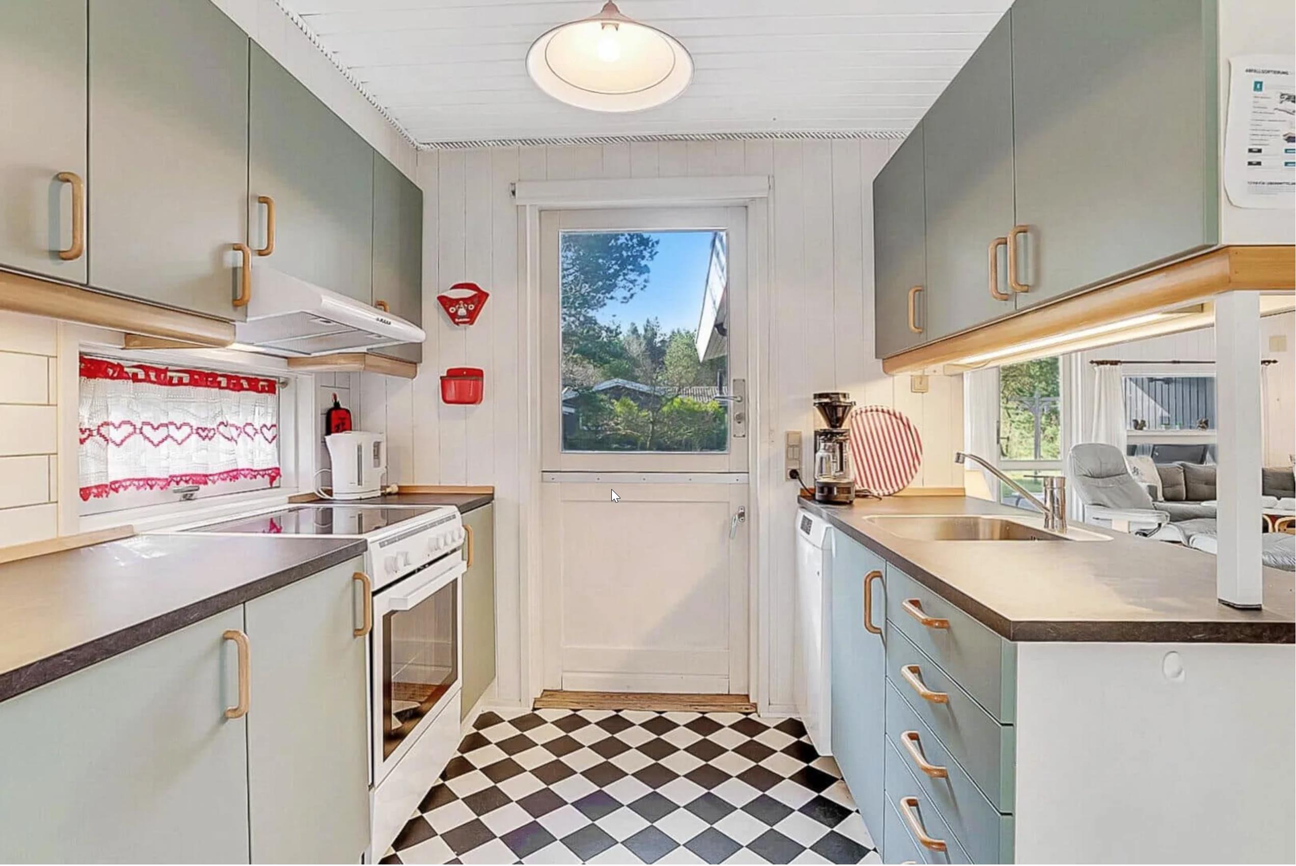 Sommerhuset på 72 m² fremstår lyst og indbydende med en åben planløsning, hvor køkken, spiseplads og stue smelter sammen til et hyggeligt opholdsrum.