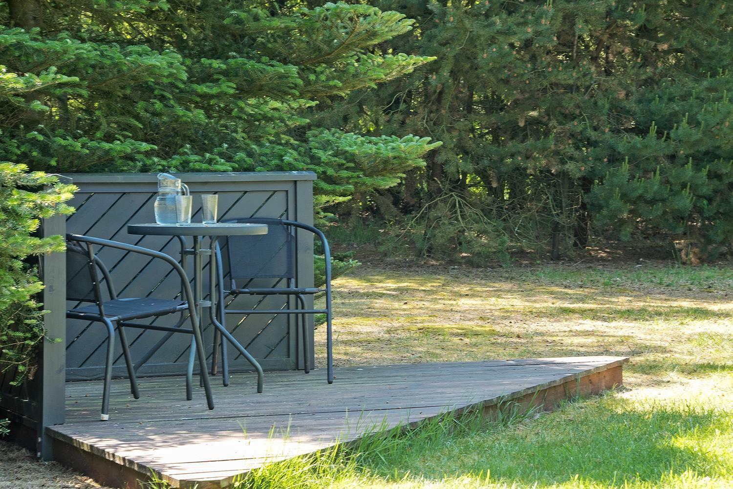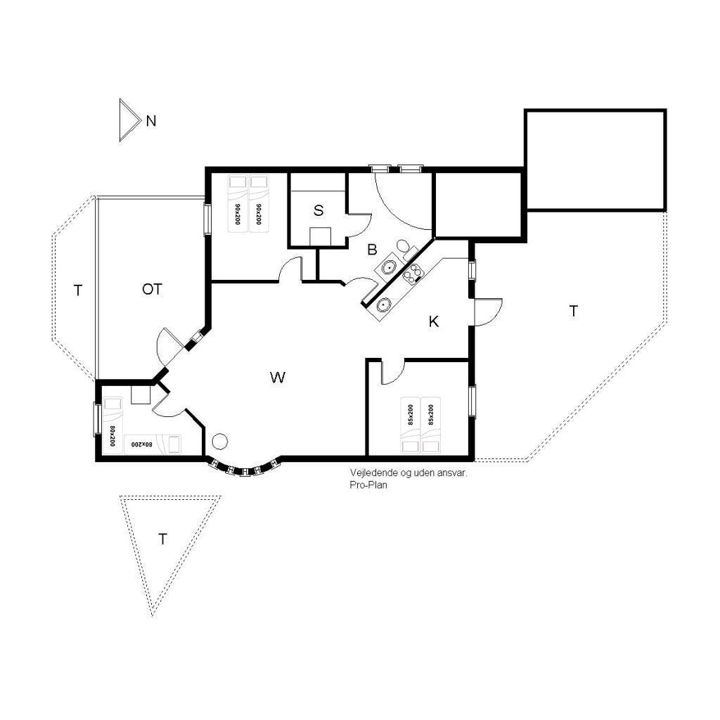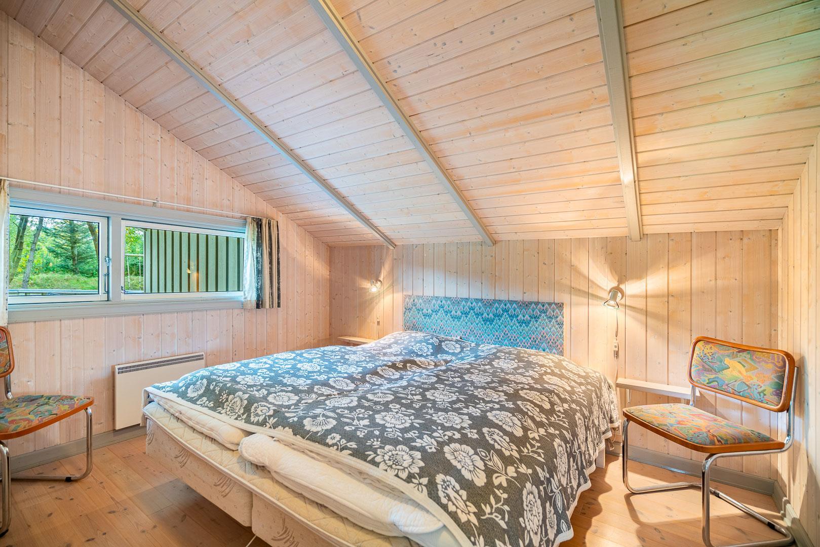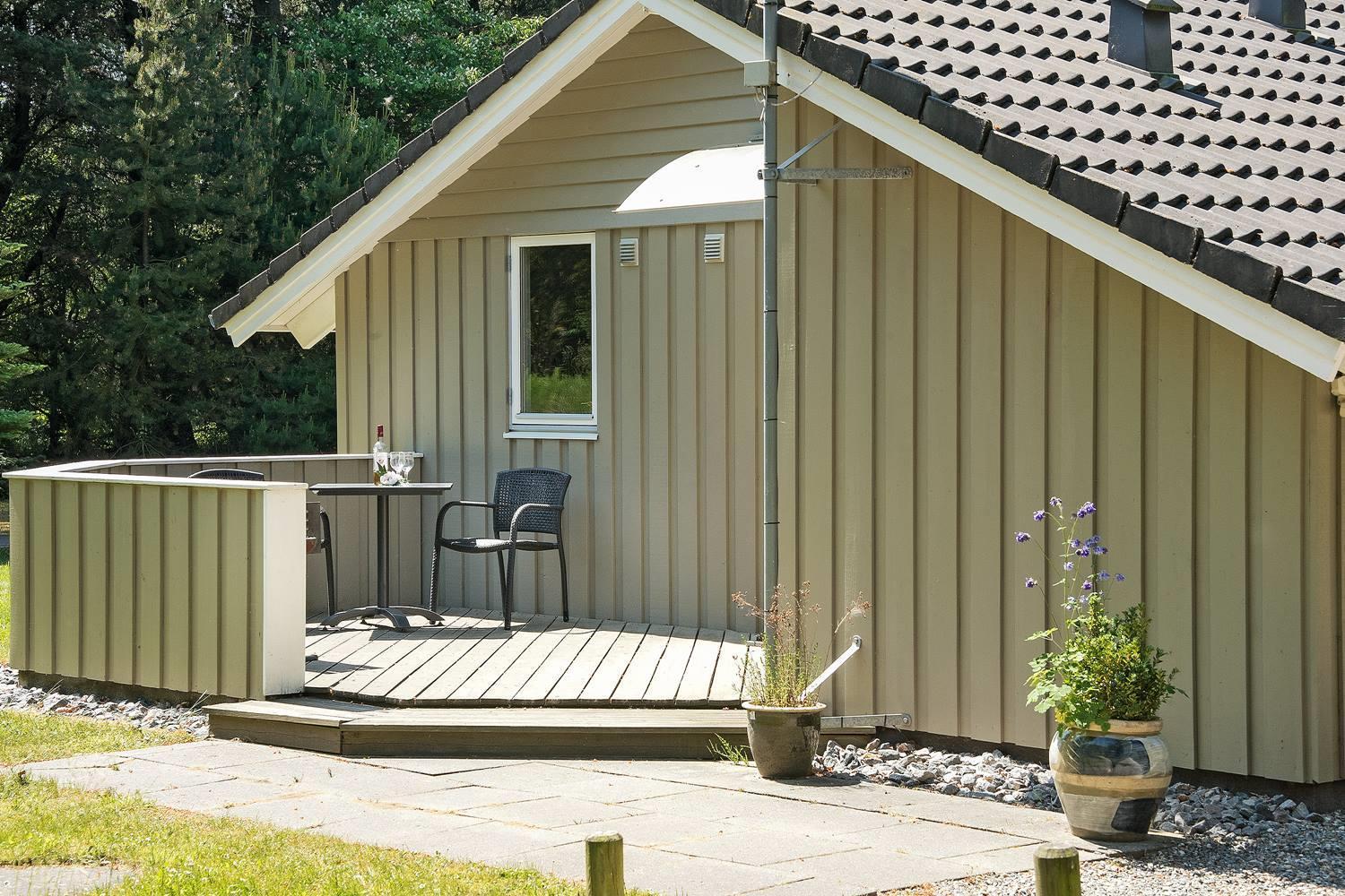 Velholdt sommerhus beliggende for enden af lukket vej på en stor grund med græs og træer omkring, hvor det er muligt at spille bold eller børnene kan lege i de rolige omgivelser. Husets delvist overdækkede terrasse er indbydende og ligger i læ for vinden. Stuen er indrettet med stor brændeovn, der gør det nemt og billigt at opvarme huset hele året.Der er desuden varmepumpe i huset. Desuden er der fjernsyn med video- og DVD-afspiller samt tilsluttet parabol med tyske og danske kanaler. Køkkenet er udstyret med opvaskemaskine, mikroovn samt køle/fryseskab. Badeværelset er med behagelig gulvvarme samt 2-personers spabad, sauna bruseniche, skabe og toilet.