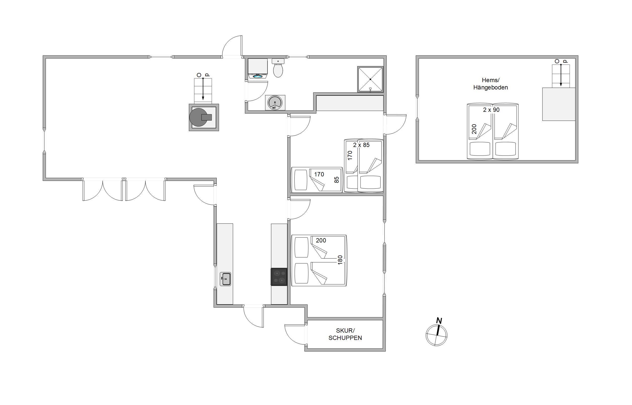 Sommerhuset er indrettet med 3 gode soveværelser, som I kan få jeres skønhedssøvn i på ferien, så I kan samle ny energi til de kommende feriedage. Det ene af soveværelserne er på førstesalen, hvor der er adgang via en stige, og det er derfor ikke egnet til ældre mennesker. Derudover er der 1 badeværelse med gulvvarme i feriehuset.