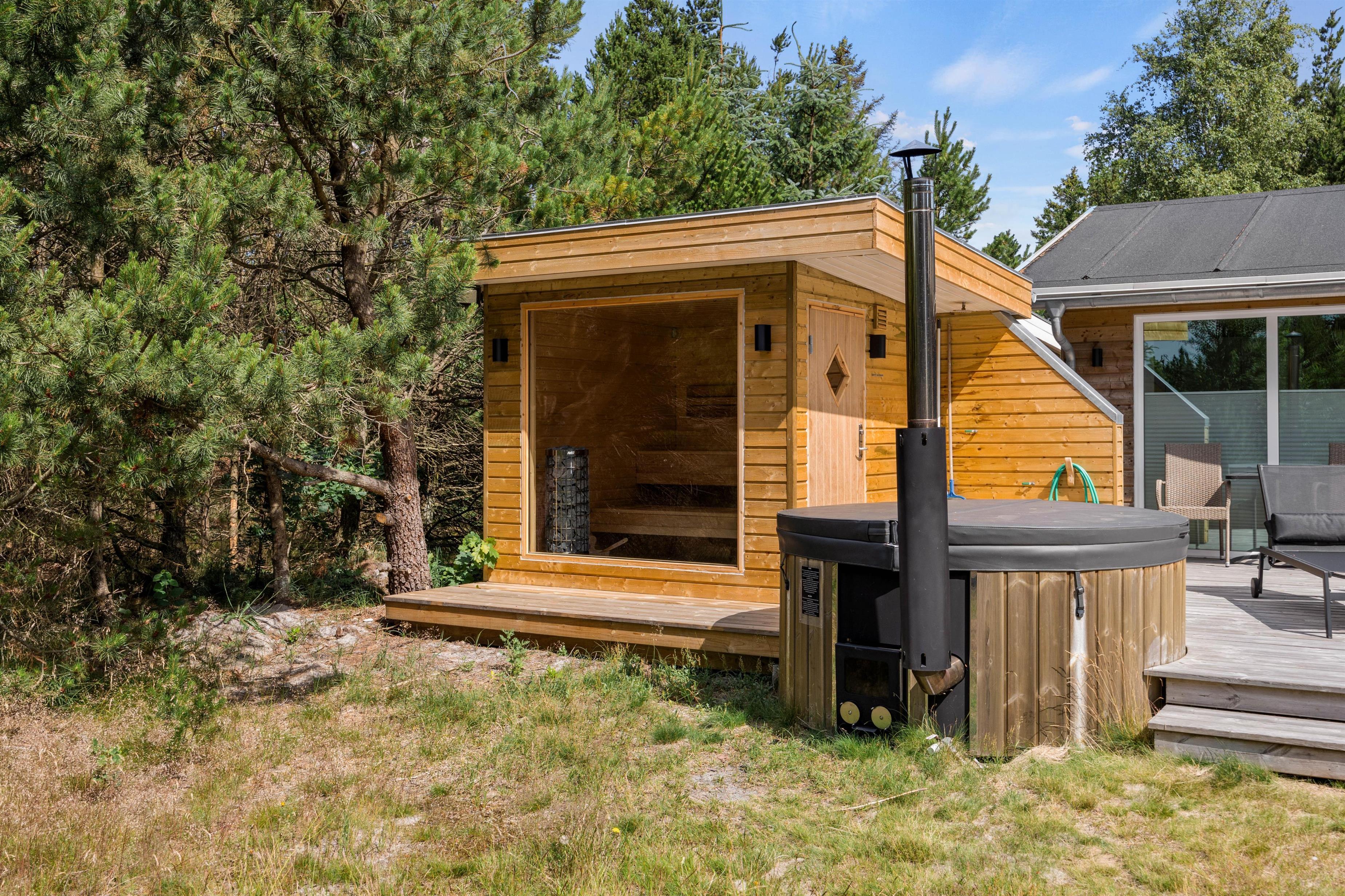 Feriehuset tilbyder jer tre dejlige afskærmede terrasser, som ligger fordelt rundt om huset. Det giver nogle fantastiske muligheder for at nyde de grønne omgivelser, mens I slapper af i vildmarksbadet eller griller på en af terrasserne.