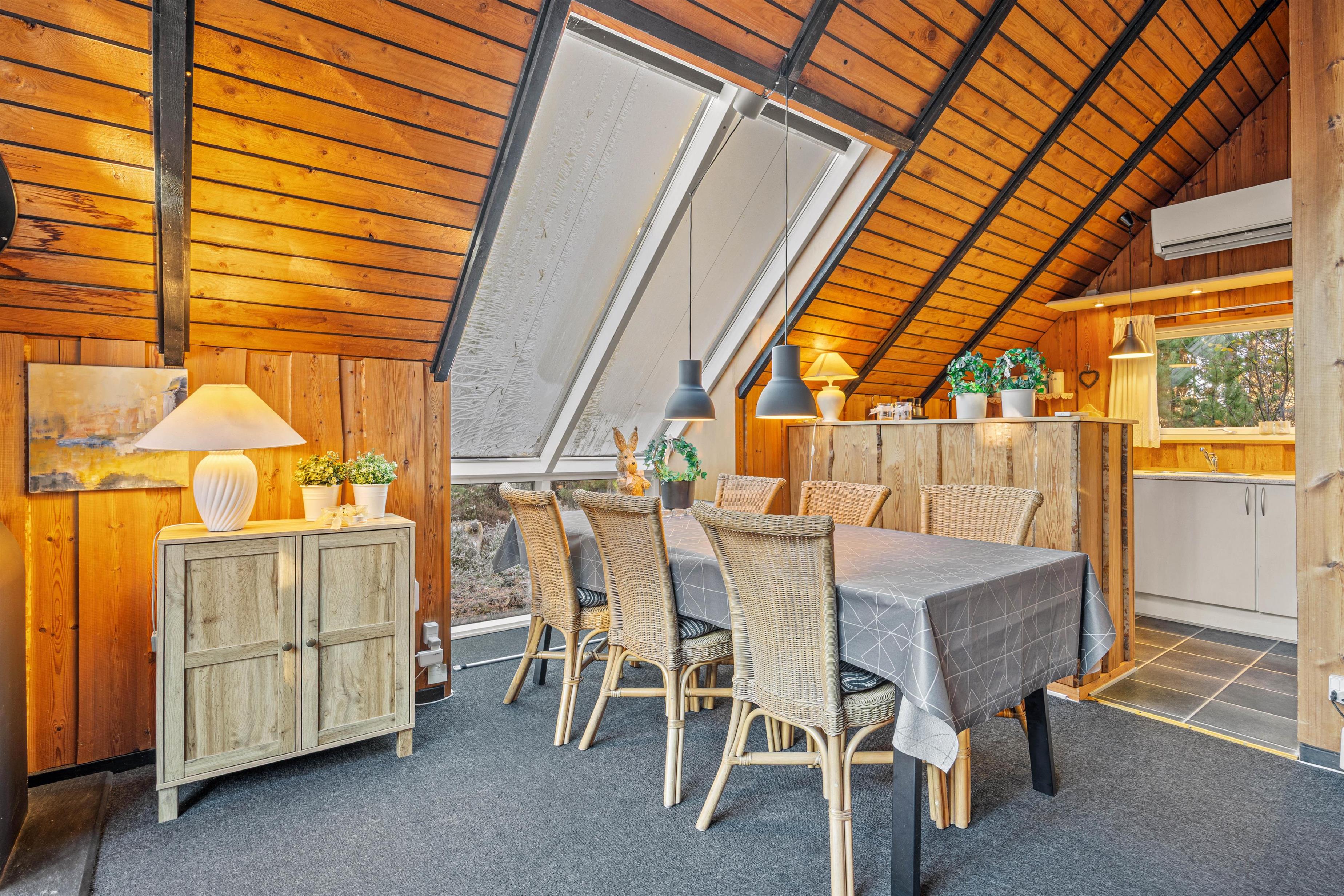 Store tagvinduer og vinduespartier giver jer en flot udsigt ud over den omkringliggende natur og sørger samtidig for lyse og venlige omgivelser indenfor. Her kan I sammen klargøre aftenens måltid i køkkenet, og efter maden kan I slappe af med en god bog foran den knitrende brændeovn, mens opvaskemaskinen klarer det sidste af oprydningen for jer.