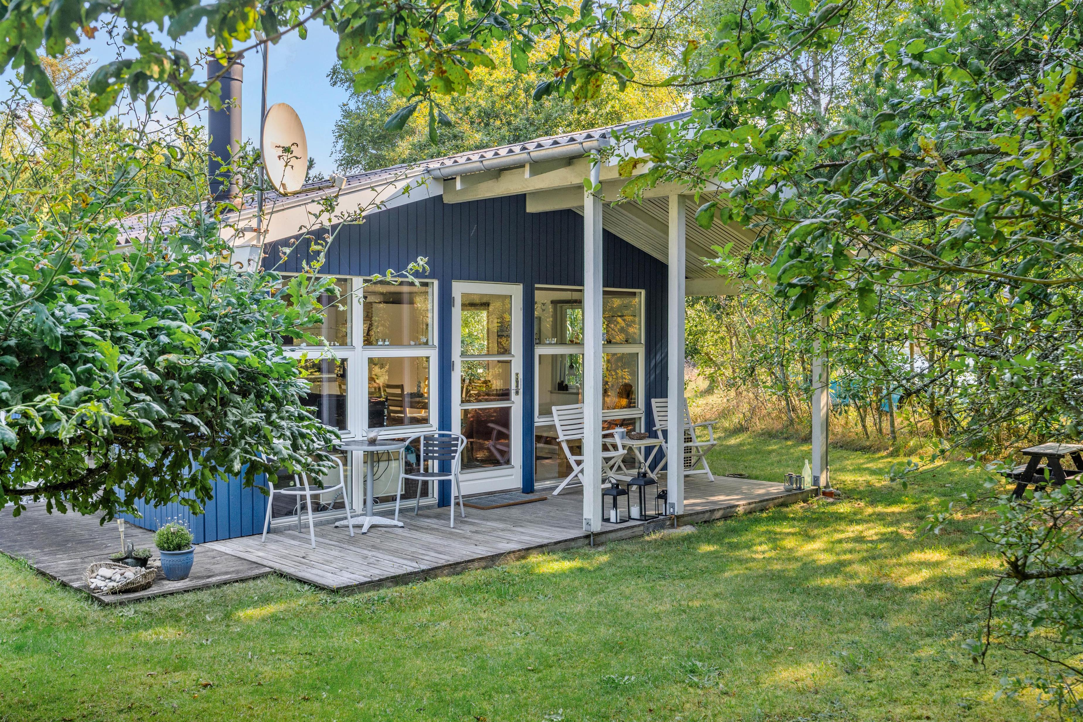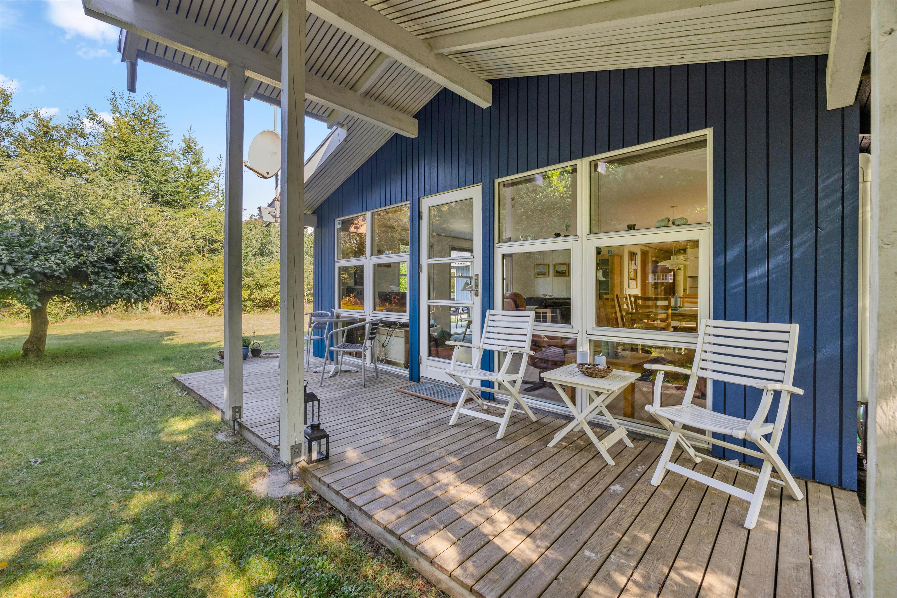 Hele vejen rundt om huset finder I flere fine steder, hvor I kan sidde i solen og læse en god bog eller slappe af i liggestolene. En af terrasserne er også overdækket, og her kan I nyde den friske havluft i al salgs vejr, mens I kan runde dagen af med en hyggelig grillaften. På den dejlige naturgrund er der god plads til, at børnene kan lege, de har endda deres eget legehus til rådighed.