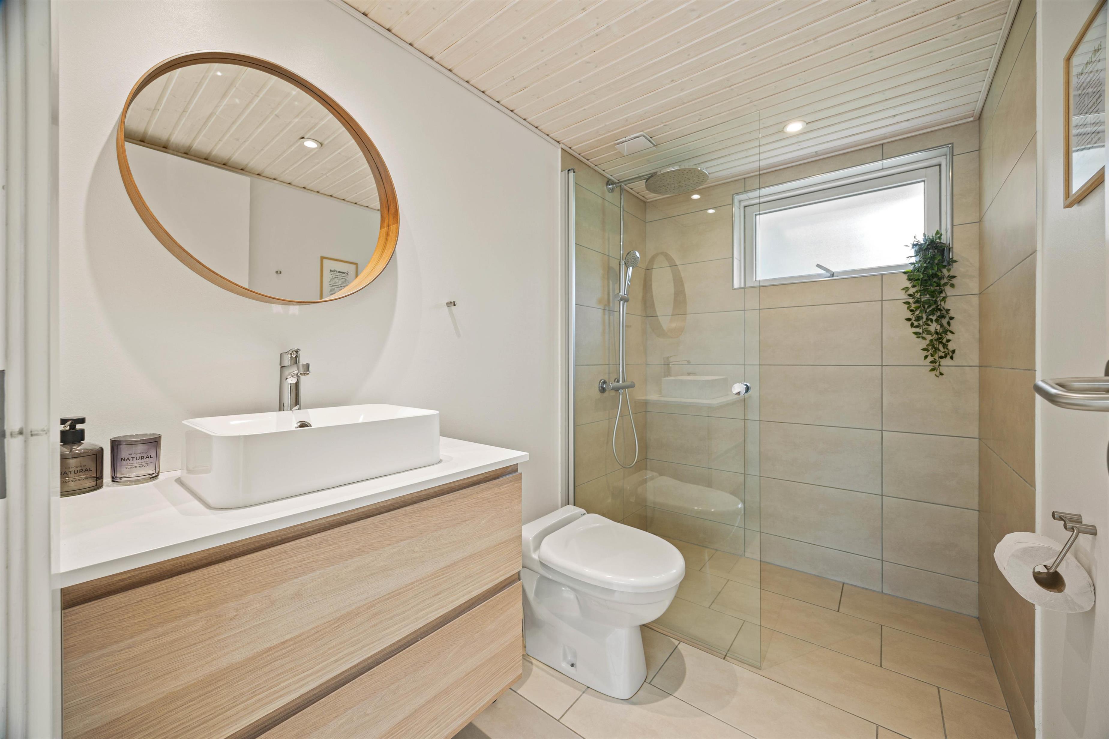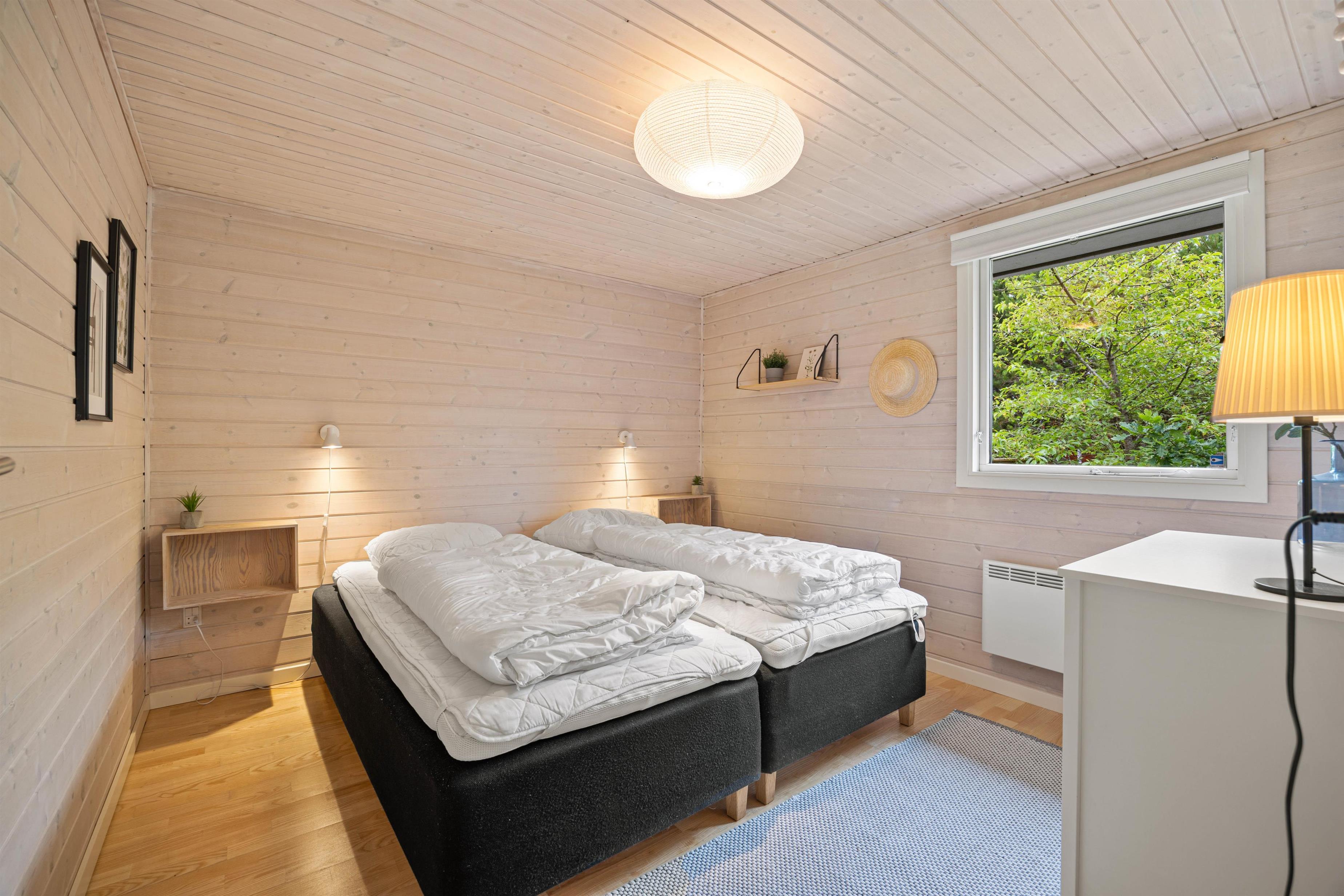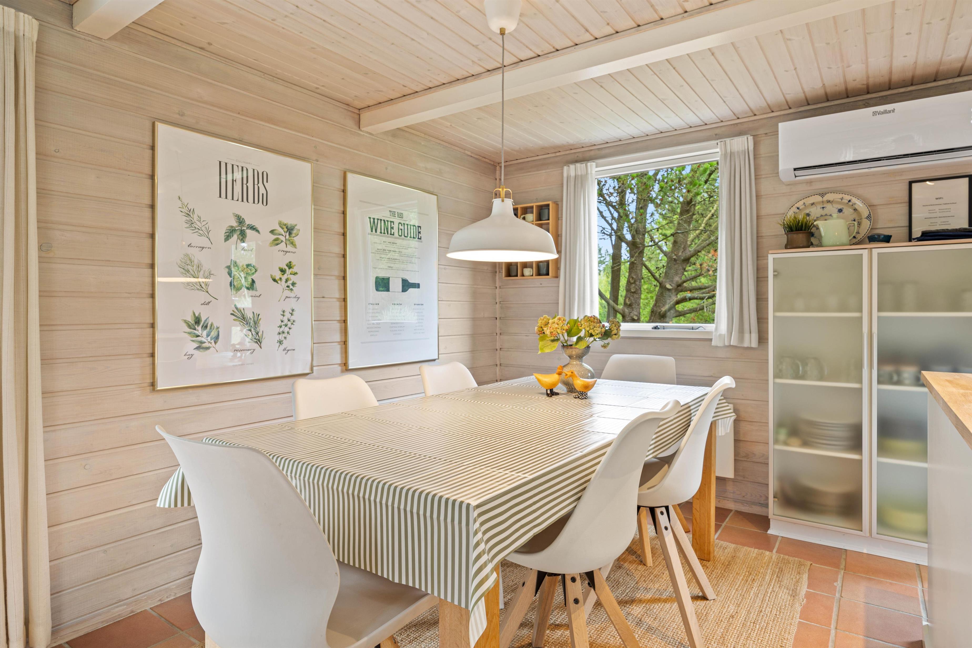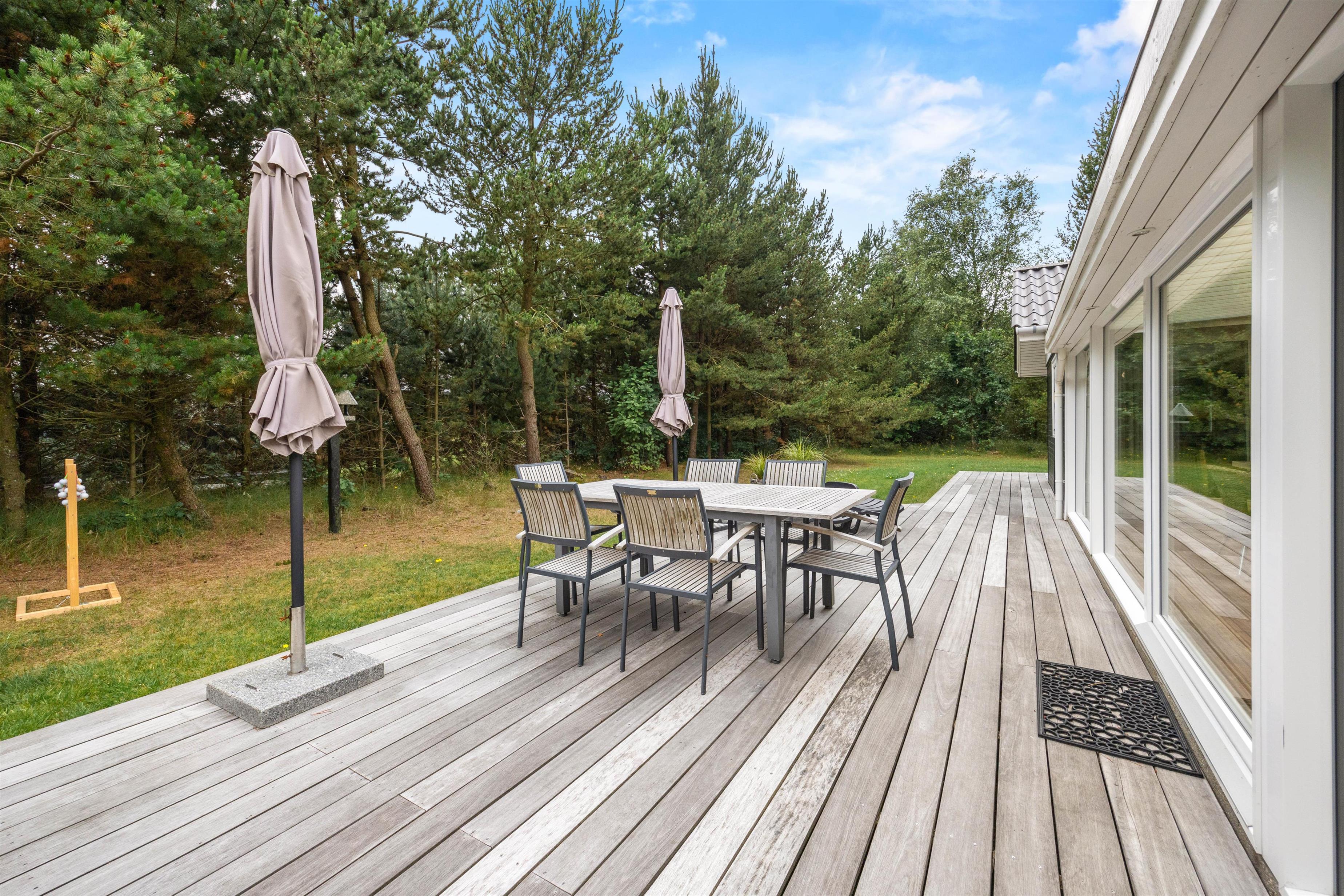 Ikke kun indenfor er huset perfekt til feriehygge. Hele vejen rundt om huset slænger sig en træveranda, så I altid kan finde den perfekte plads i solen. Er vejret lidt drilsk, kan I søge ind i den skønne udestue og derfra nyde lyset og udsigten til naturgrunden, der i øvrigt byder masser af plads til leg for både børn og hund.