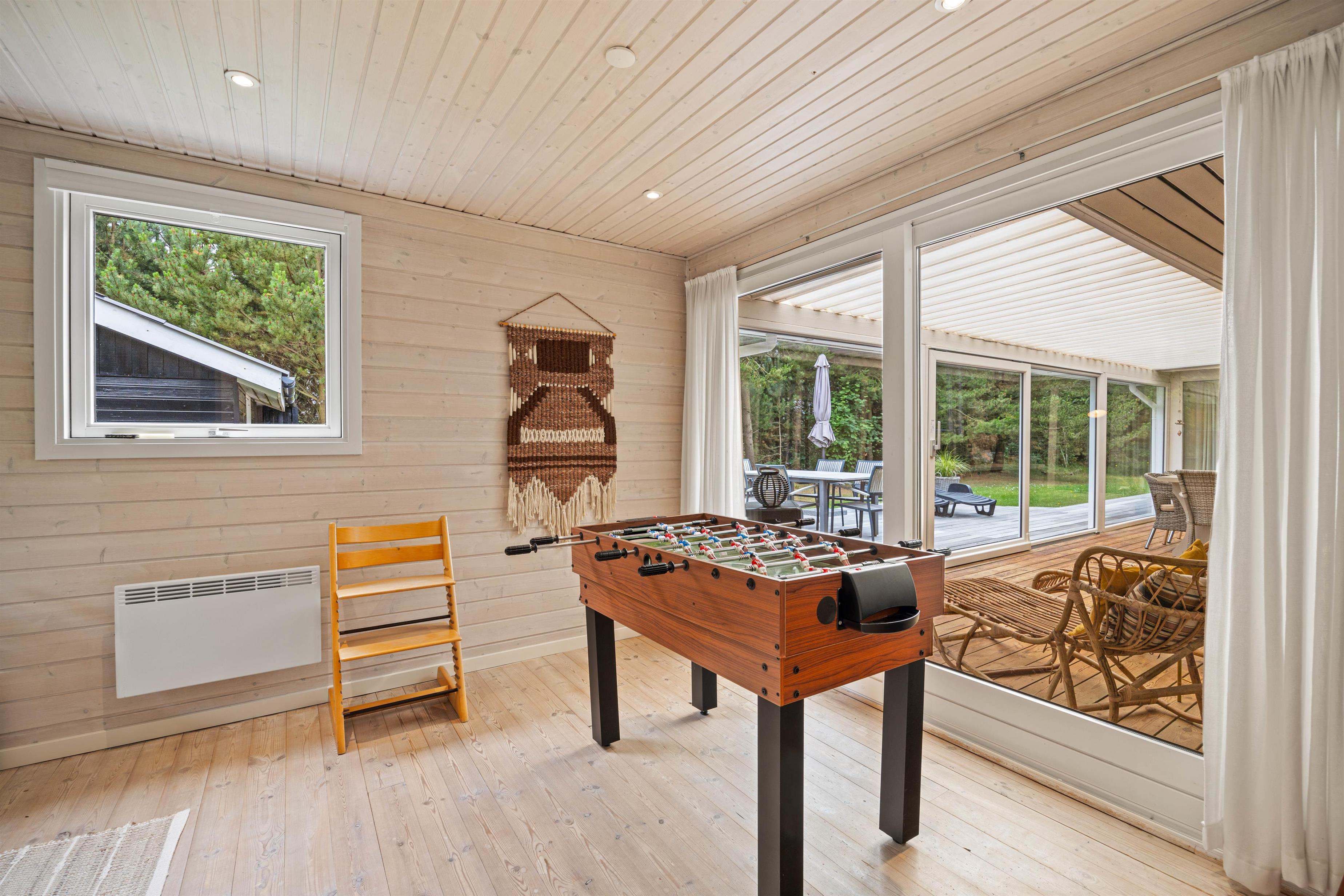 Et ekstra opholdsrum, som ligger i forlængelse af udestuen, rummer bordfodbold, elektriske dartspil og et smart tv, er der således garanteret for både sjov og hygge - selv på regnvejrsdage. Internetforbindelsen er naturligvis gratis.
