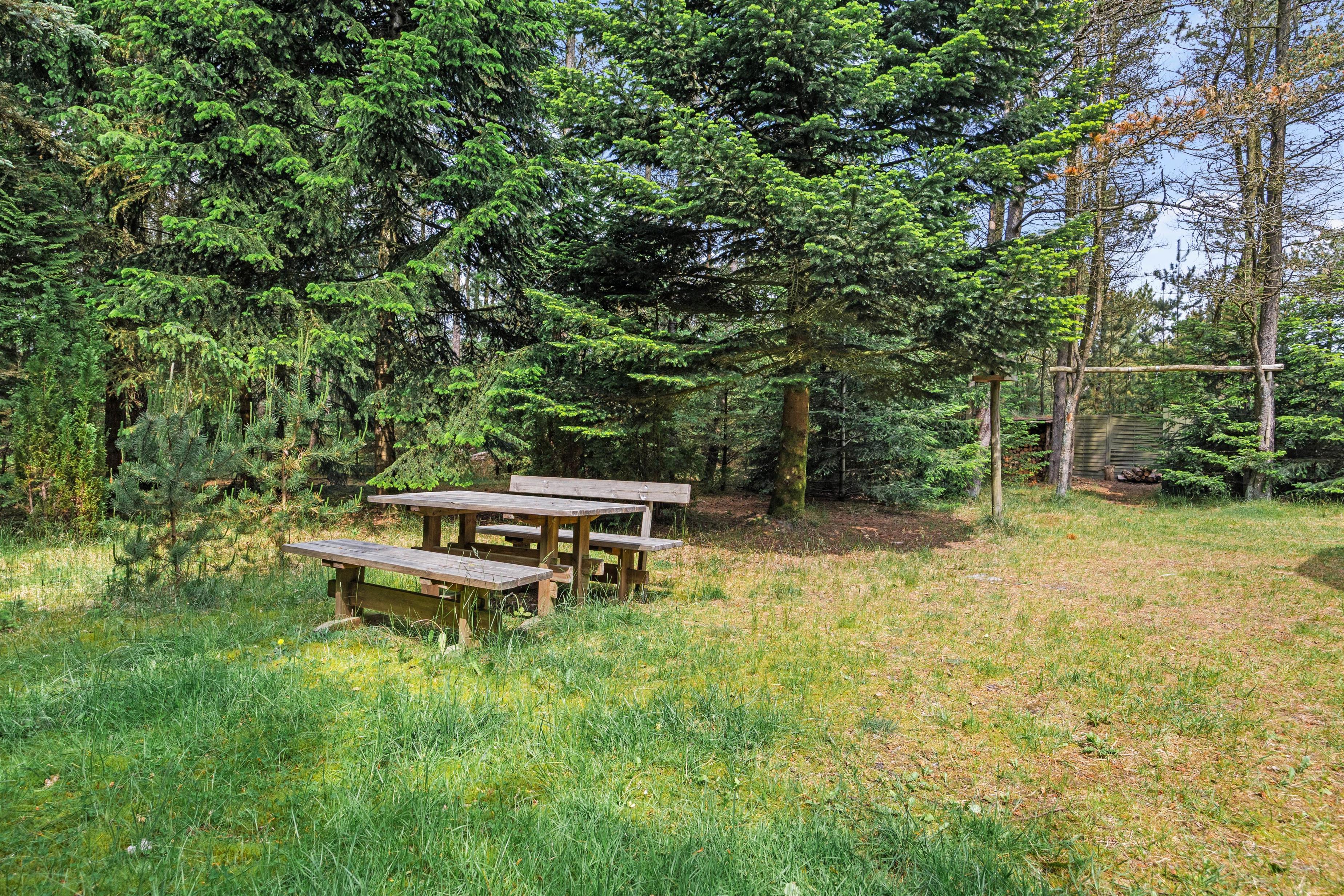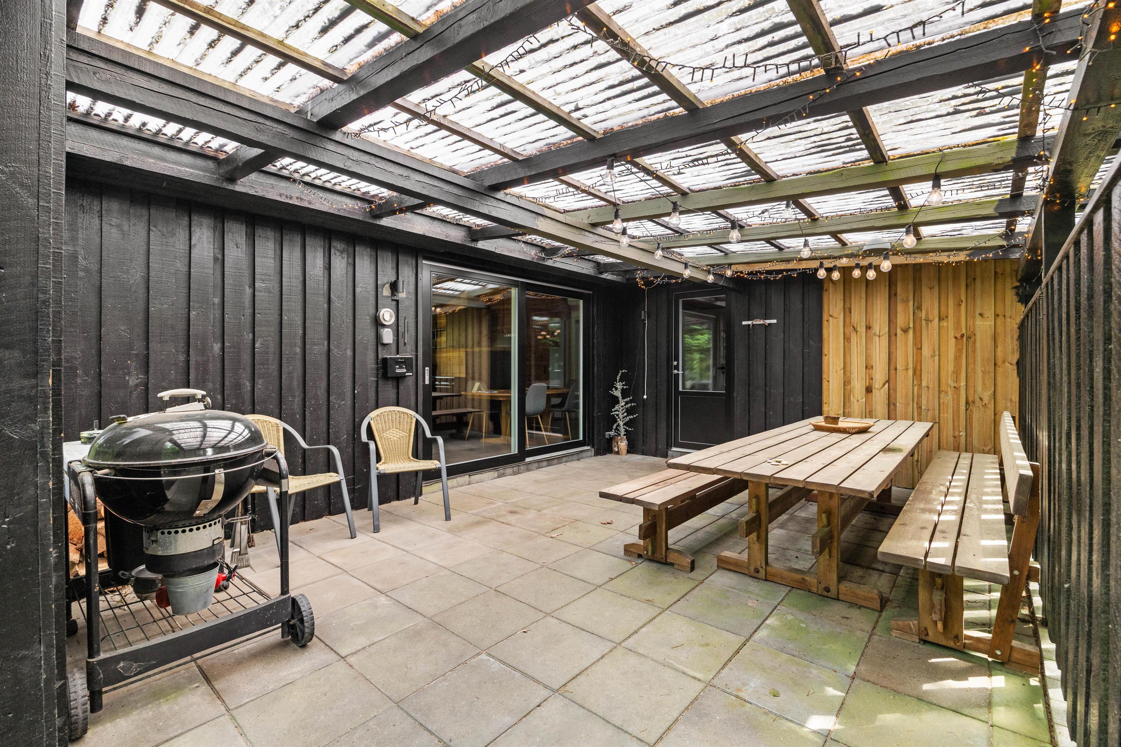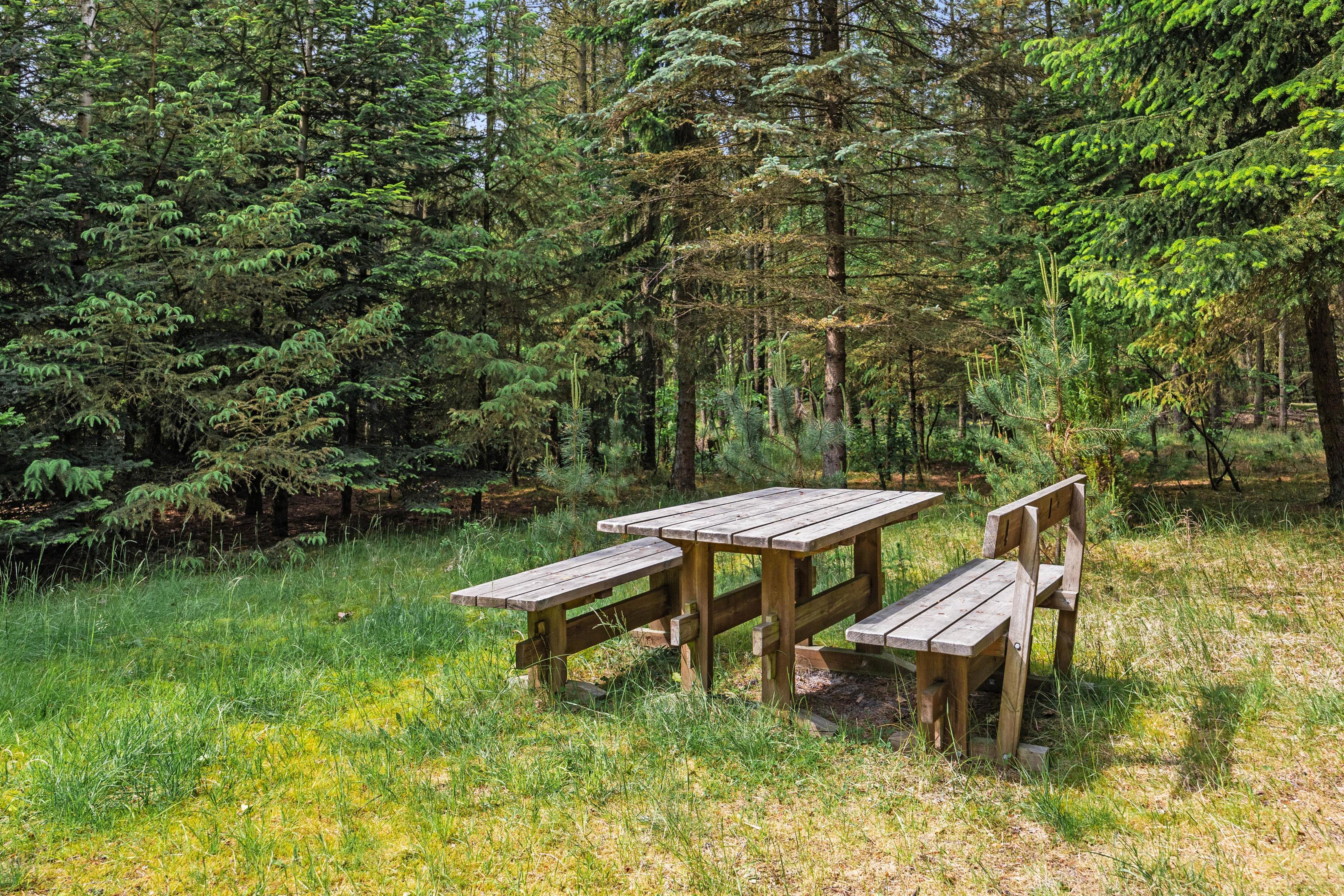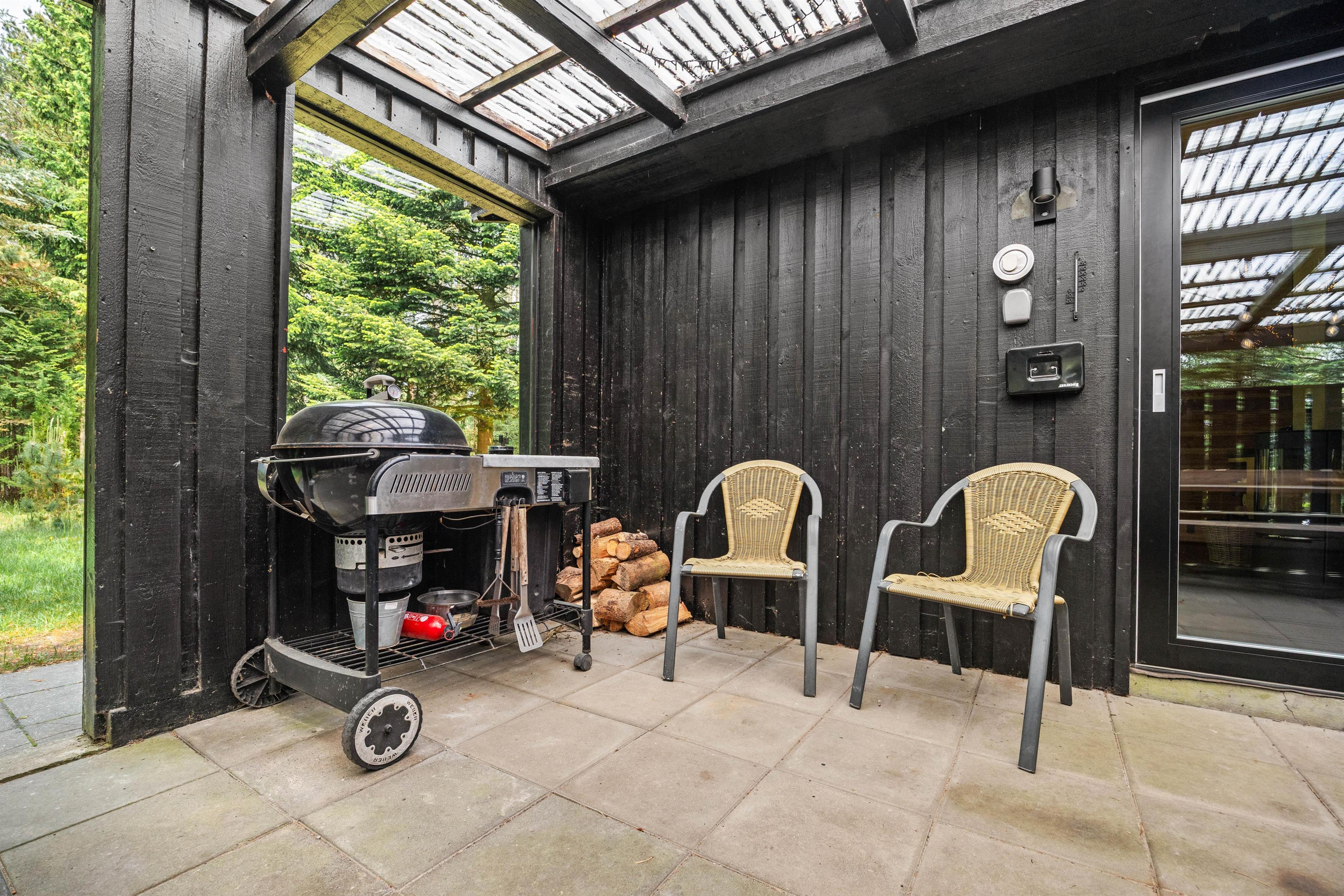 Terrassen er perfekt udstyret til en aften med BBQ, hvor I kan nyde måltider under åben himmel. På solrige dage kan I slappe af i solsengene og lade solens stråler varme jer. Terrassen giver også en fantastisk udsigt over den skønne naturgrund, hvor I måske får et glimt af skovens mange dyr. Ved huset findes desuden et praktisk redskabsskur, som giver ly til jeres cykler, når I ikke er ude og udforske de naturskønne omgivelser.