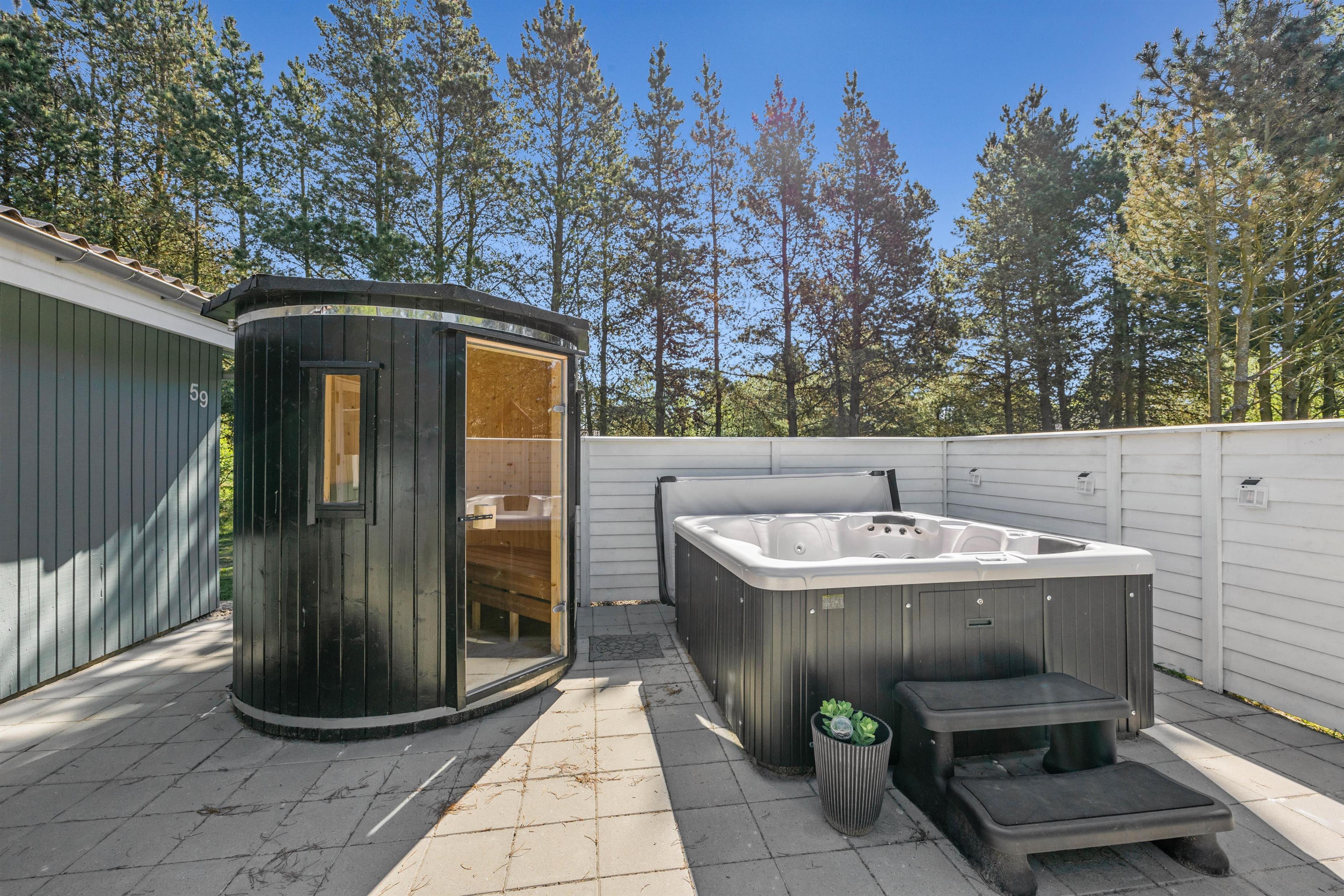 Sommerhusets helt store højdepunkter finder I i poolrummet. Her står en 21 kvadratmeter stor swimmingpool klar til jer, hvor I med garanti kommer til at tilbringe mange sjove timer sammen med masser af vandlege. Til dem, der ikke er de store vandhund og hellere vil slappe af, kan I læne jer tilbage i det lækre spabad, der er at finde udenfor. Udendørs er også en lækker sauna, hvor I rigtig kan blive varmet igennem.