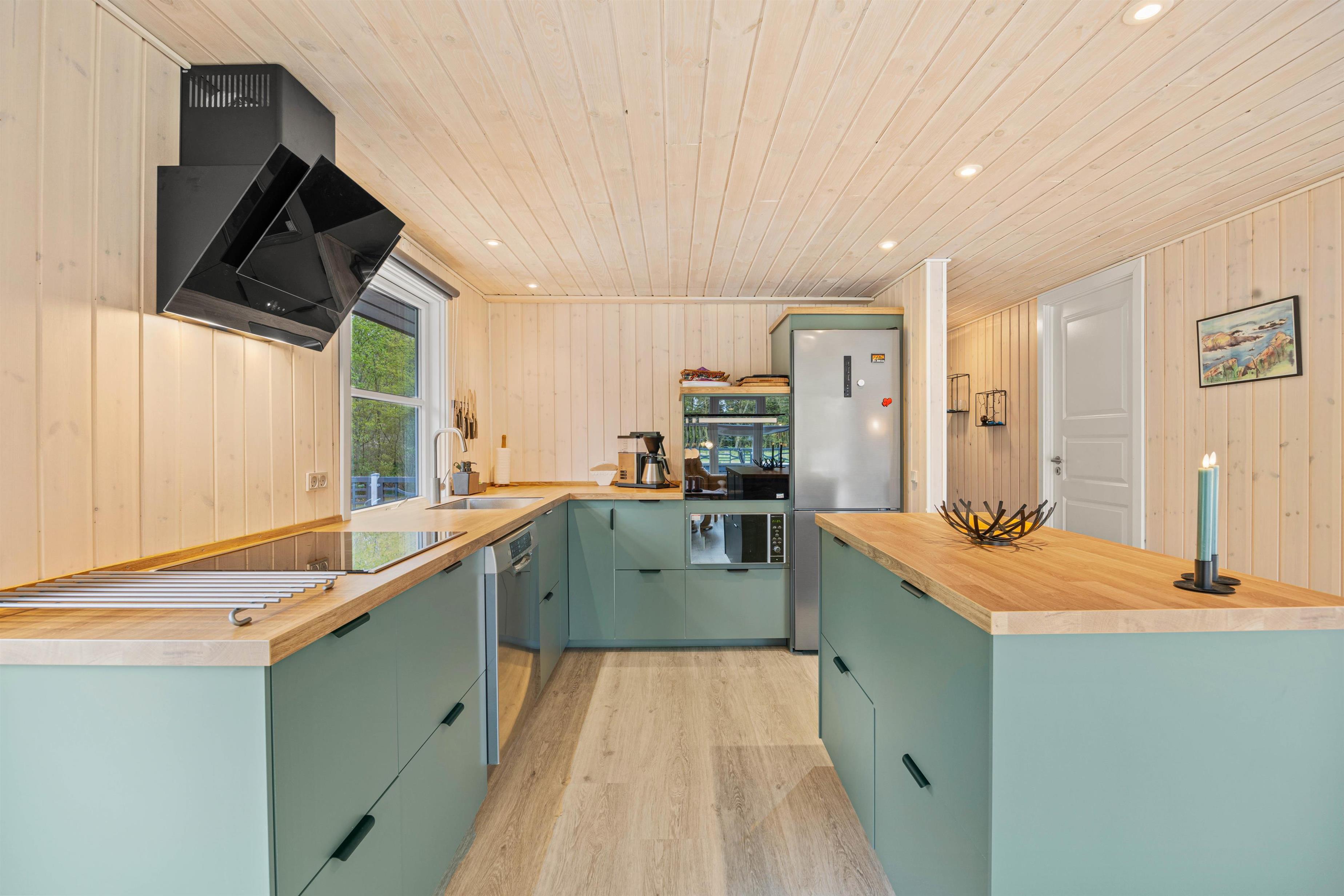 Sommerhuset på Anders Lyhnesvej 12 i Houstrup byder inden for med sin hyggelige indretning, og der kommer ikke til at gå lang tid fra jeres ankomst, til at I føler jer hjemme her! Sommerhusets hjerte er alrummet, der forener køkken, stue og spisestue. Køkkenet er blevet renoveret i 2025, så står top tunet med alt der er nødvendigt til et lækkert måltid. I kommer helt sikkert til at tilbringe en stor del af jeres ferie her, hvor I kan samles til madlavning, film og spil, mens brændeovnen knitrer i baggrunden og fuldender feriestemningen.