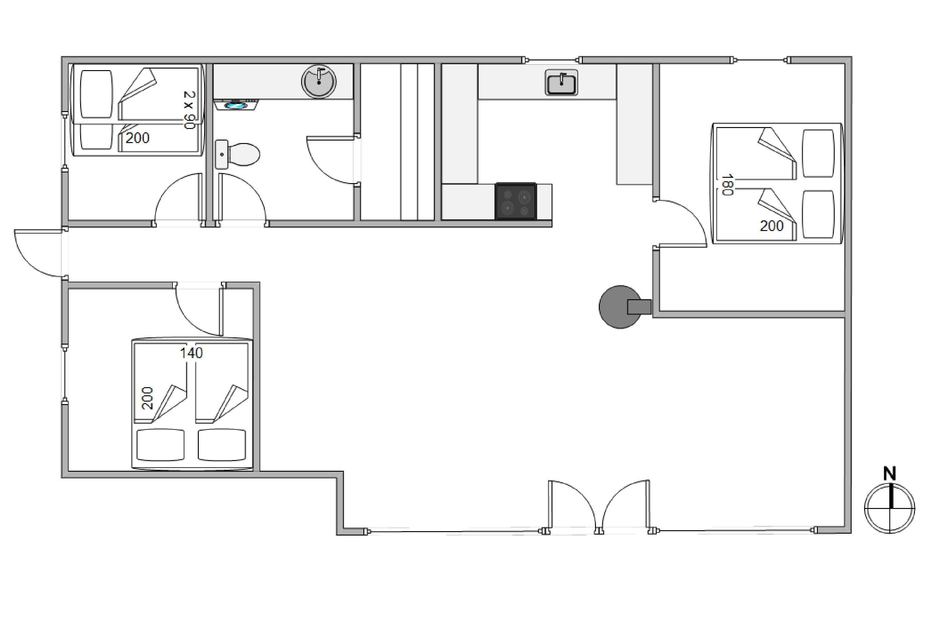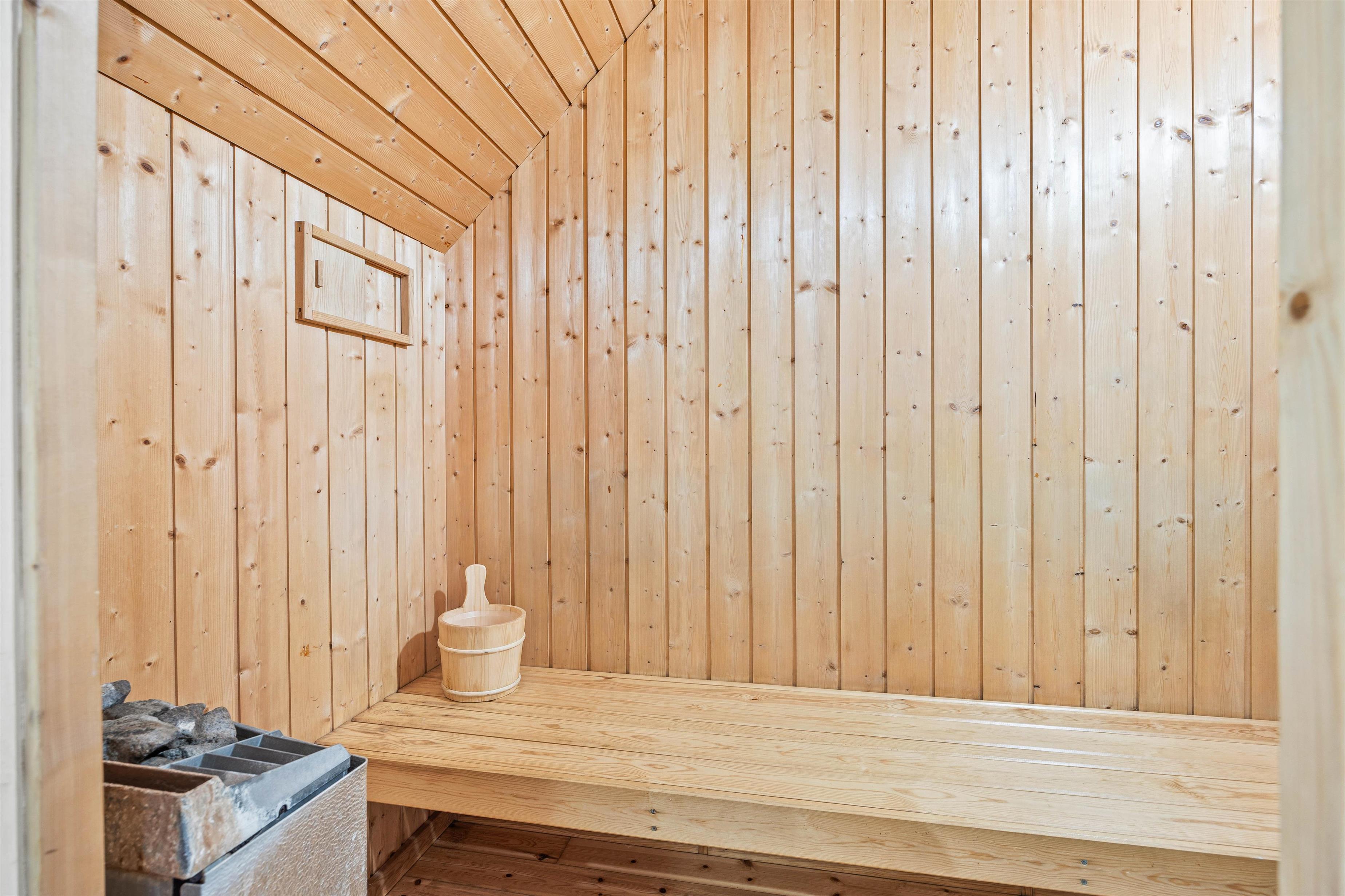 Sommerhuset har 3 soveværelser: 2 med dobbeltsenge til de voksne og et med en køjeseng, som børnene vil elske. På badeværelset er der en sauna, hvor I kan slappe af efter en dag fuld af aktiviteter. Dertil finder I også en praktisk vaskemaskine, så I kan holde styr på garderoben.