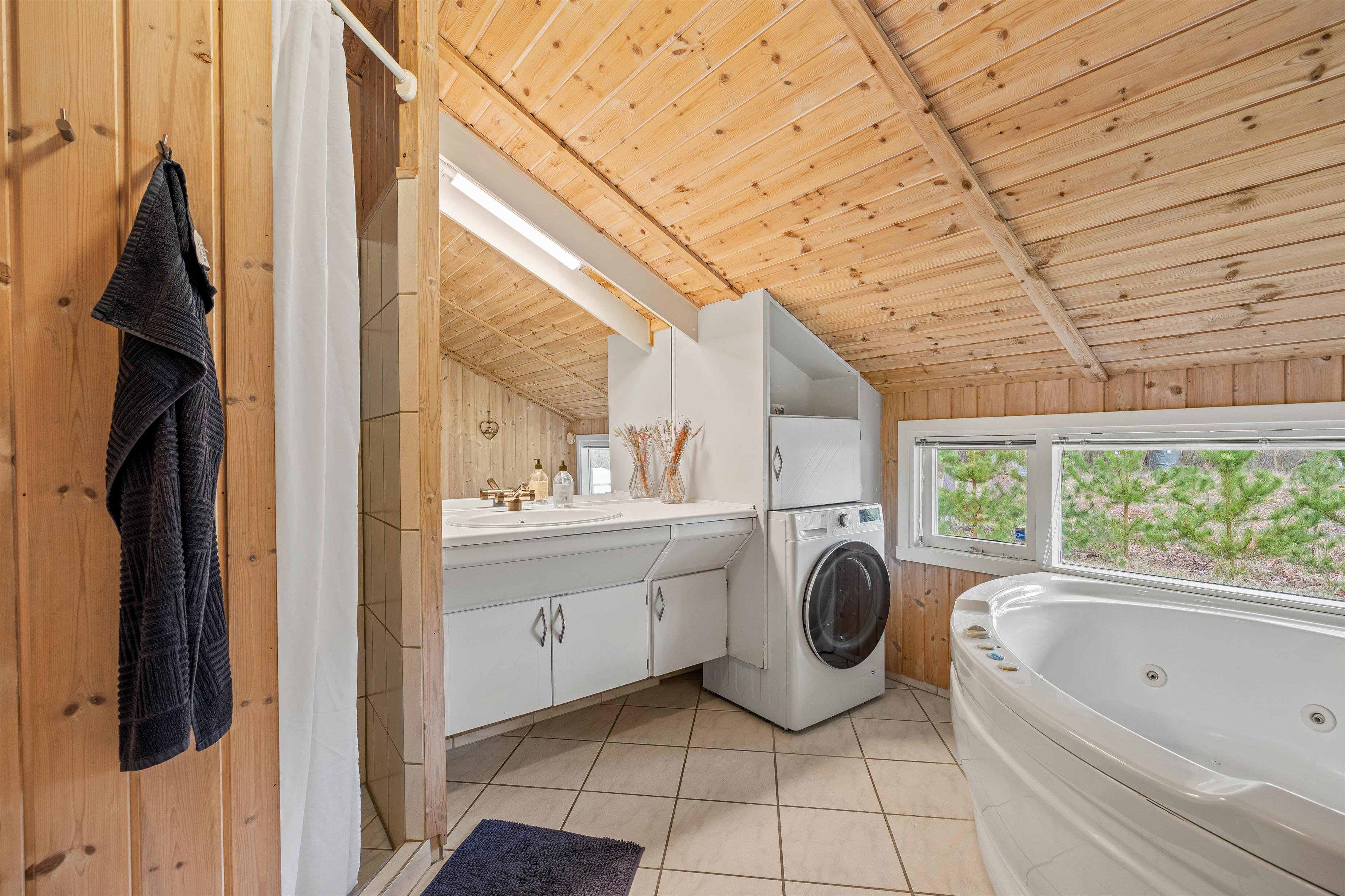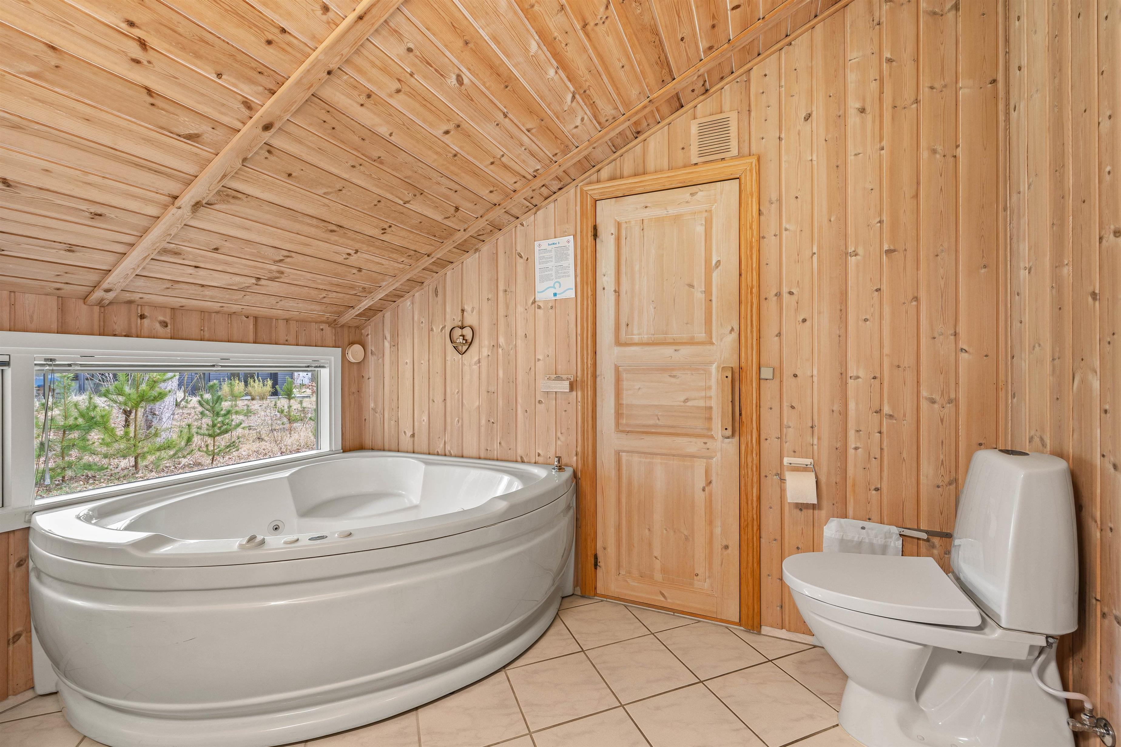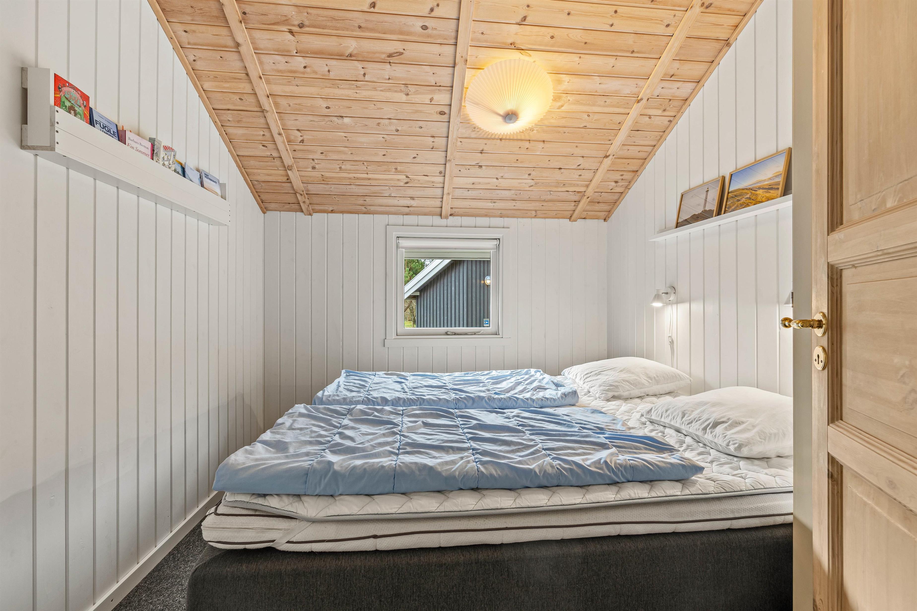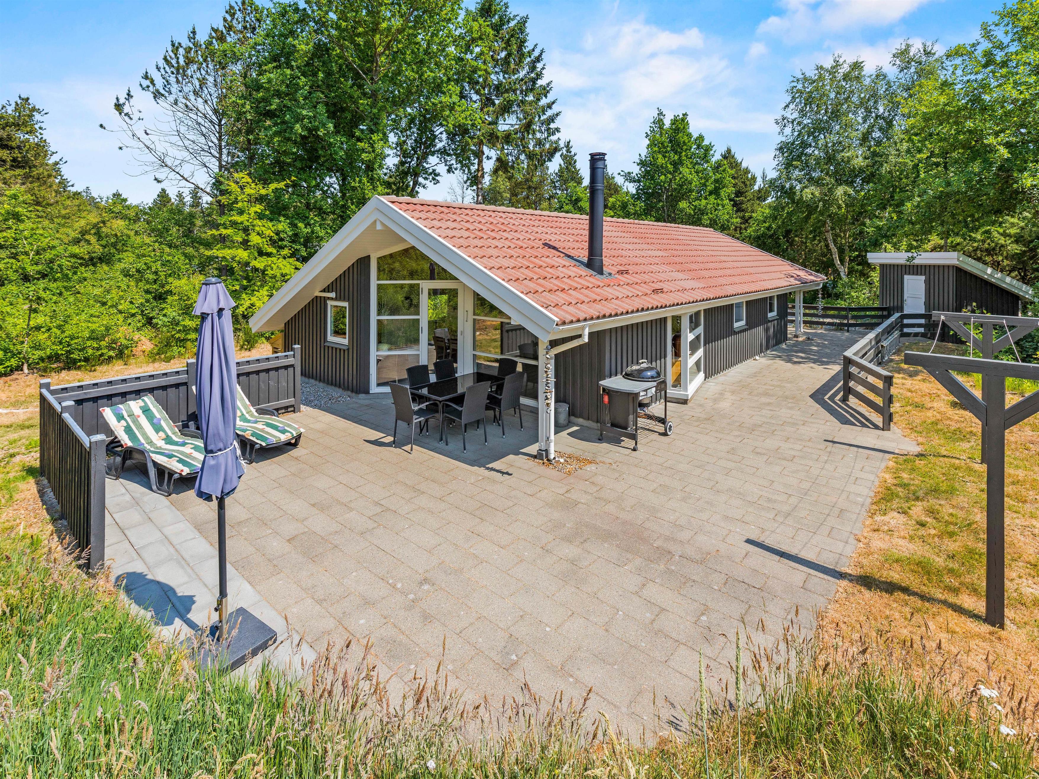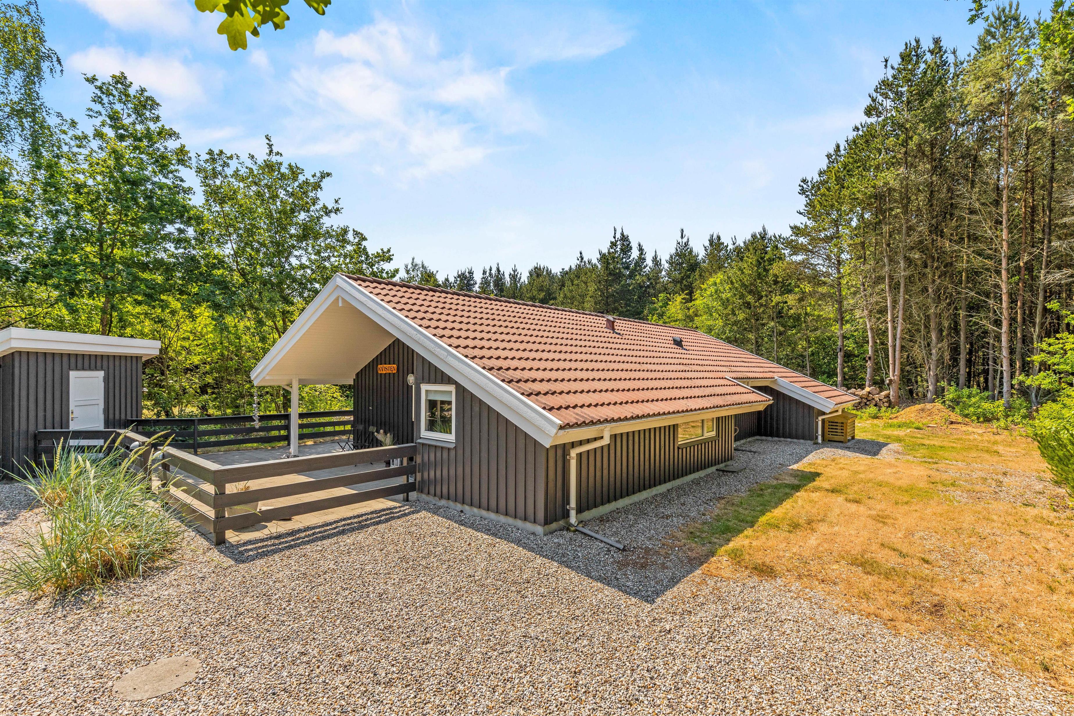 For enden af Vestervang finder I dette skønne træsommerhus, hvor I kan tilbringe en stille og rolig ferie med familien. Huset ligger godt gemt inde mellem fyrretræerne, og her har I masser af privatliv. I huset er der plads til op til 6 personer, og det velindrettede hus med både sauna og spabad har alt, hvad feriehjertet begærer.