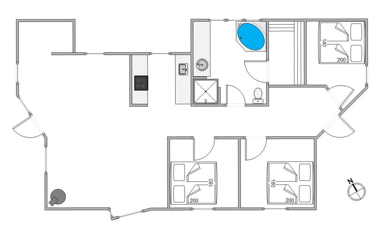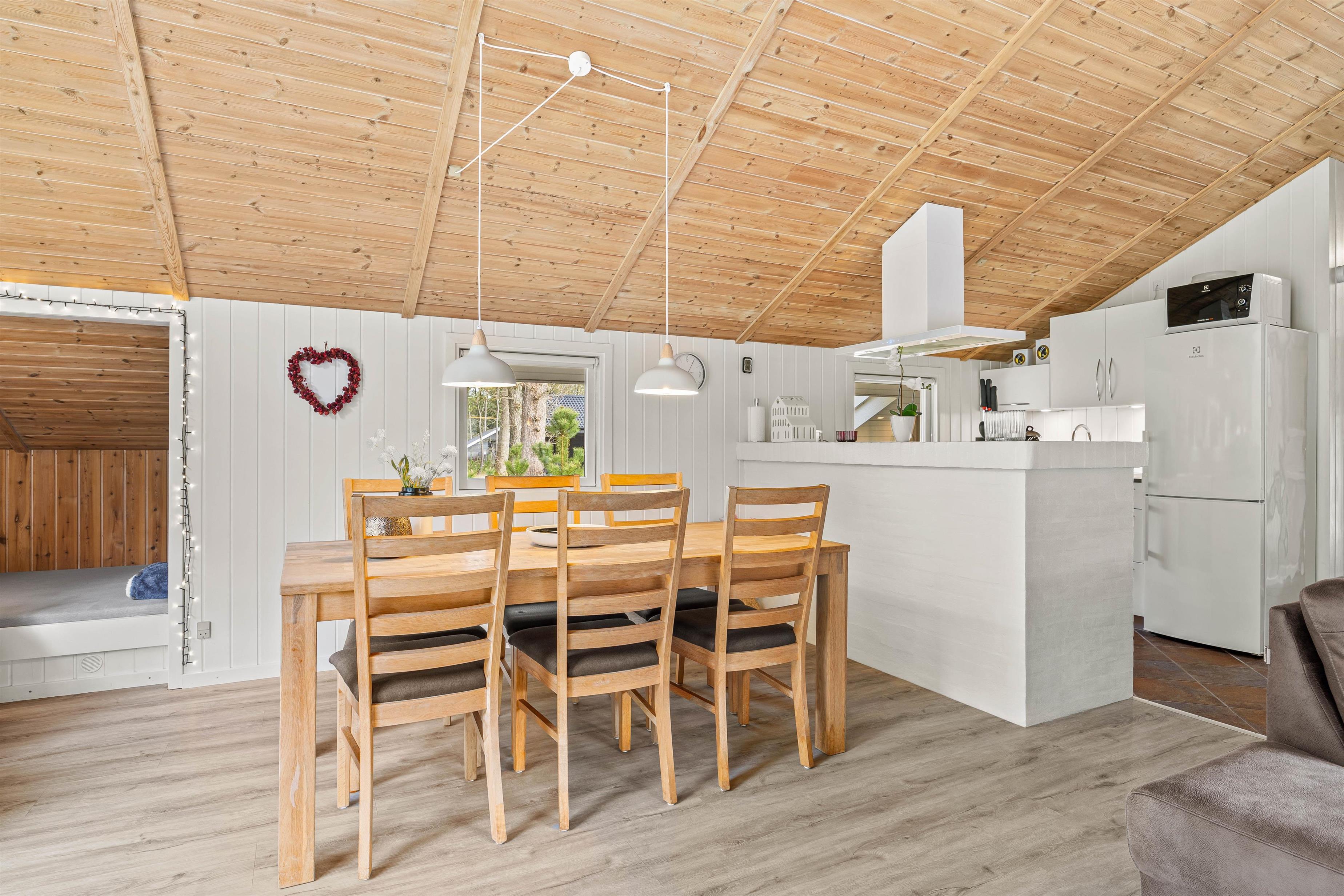 De lyse trævægge og de høje lofter tilfører huset en helt speciel charme og sørger sammen med den gode indretning for, at I vil føle jer hjemme helt fra start af. Det åbne køkken- og stuerum er husets hjerte og indbyder til fælles madlavning og masser af samvær. Efter maden kan I planlægge de næste par dages ferieudflugter, og med den gratis internetforbindelse kan I hurtigt dele dagens feriebilleder og oplevelser med dem derhjemme.