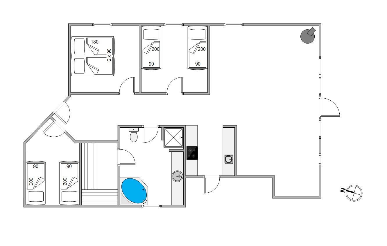 På Jeppesvej 90 ligger dette velholdte feriehus på en stor og fredfyldt naturgrund i Houstrup. Her er der plads til hele familien, og det veludstyrede hus er endda indrettet med spabad og sauna.