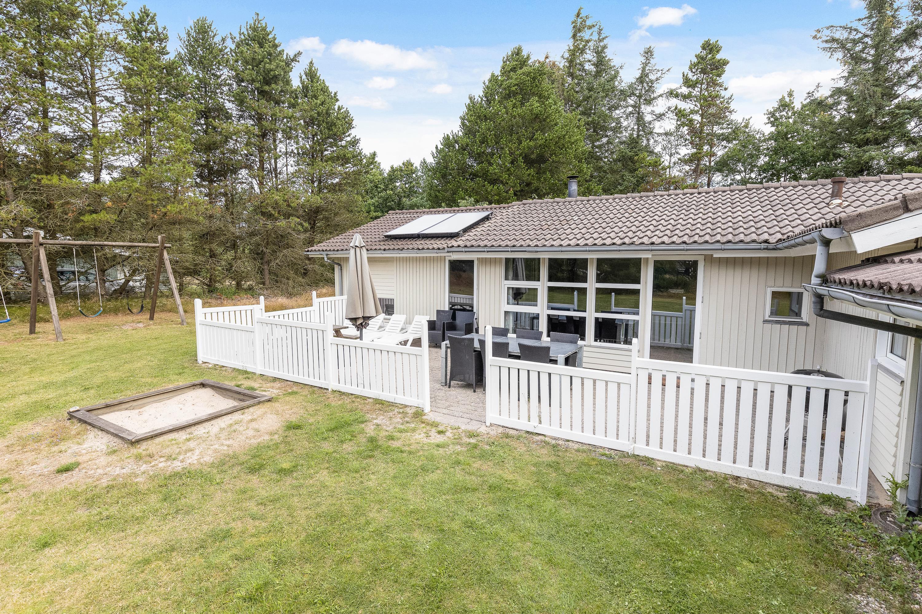 Huset er skønt hegnet ind mellem de mange træer og har en dejlig stor græsplæne, hvor både hunden og børnene kan få lov til at lege og spille bold, mens I nyder solen fra terrassen i de fredelige omgivelser. Terrassen er et perfekt samlingspunkt for afslappende eftermiddage med en god bog eller hyggelige grillmiddage sammen med venner og familie.