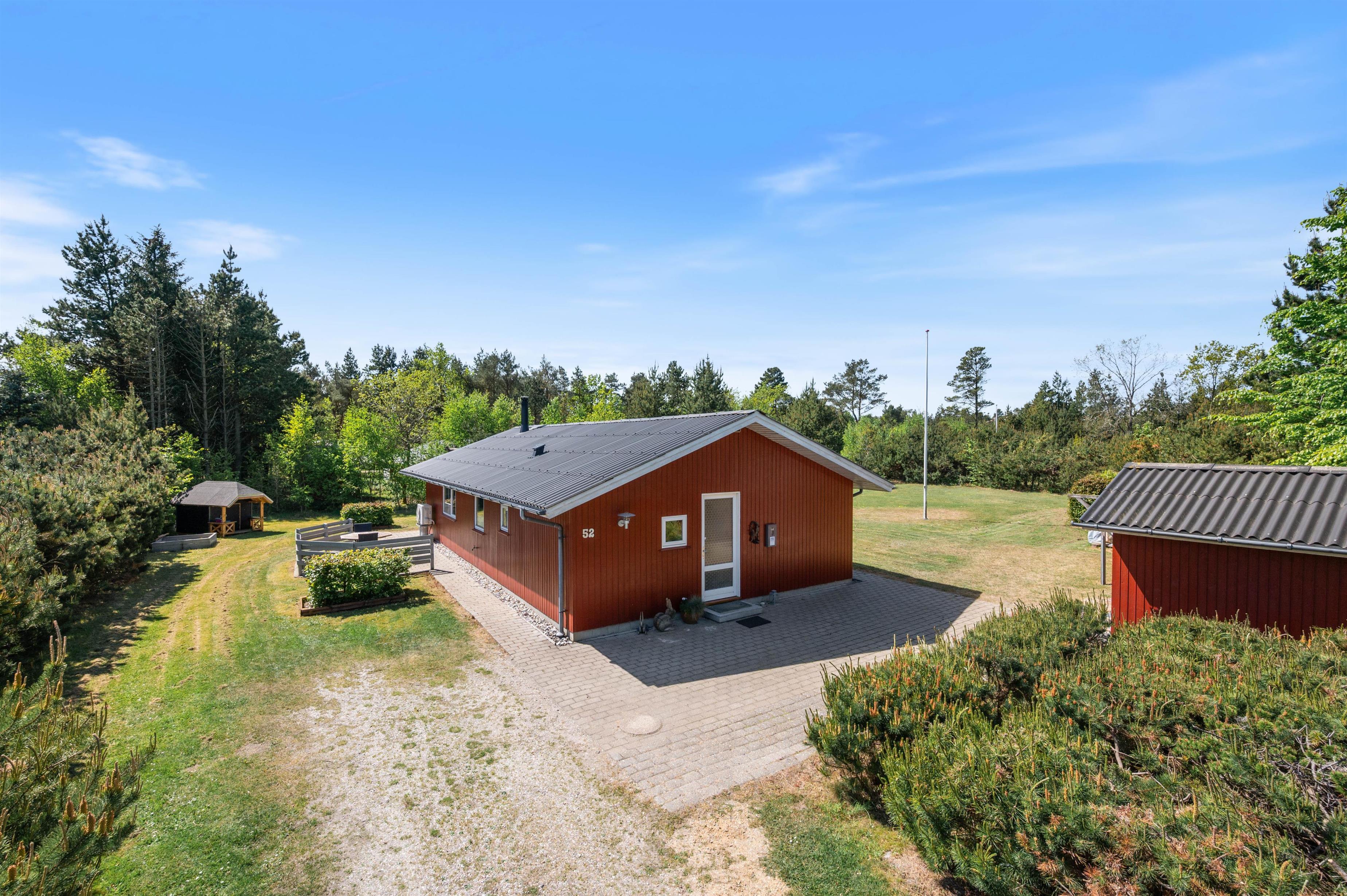 Sommerhuset ligger i både gå- og cykelafstand fra Houstrup Strand og Blåbjerg Plantage, hvor I – hvis I er heldige kan se kronhjorte, der lever vildt i plantagen. I kan også køre en tur til Nr. Nebel, hvor I finder gode butikker og spisesteder.