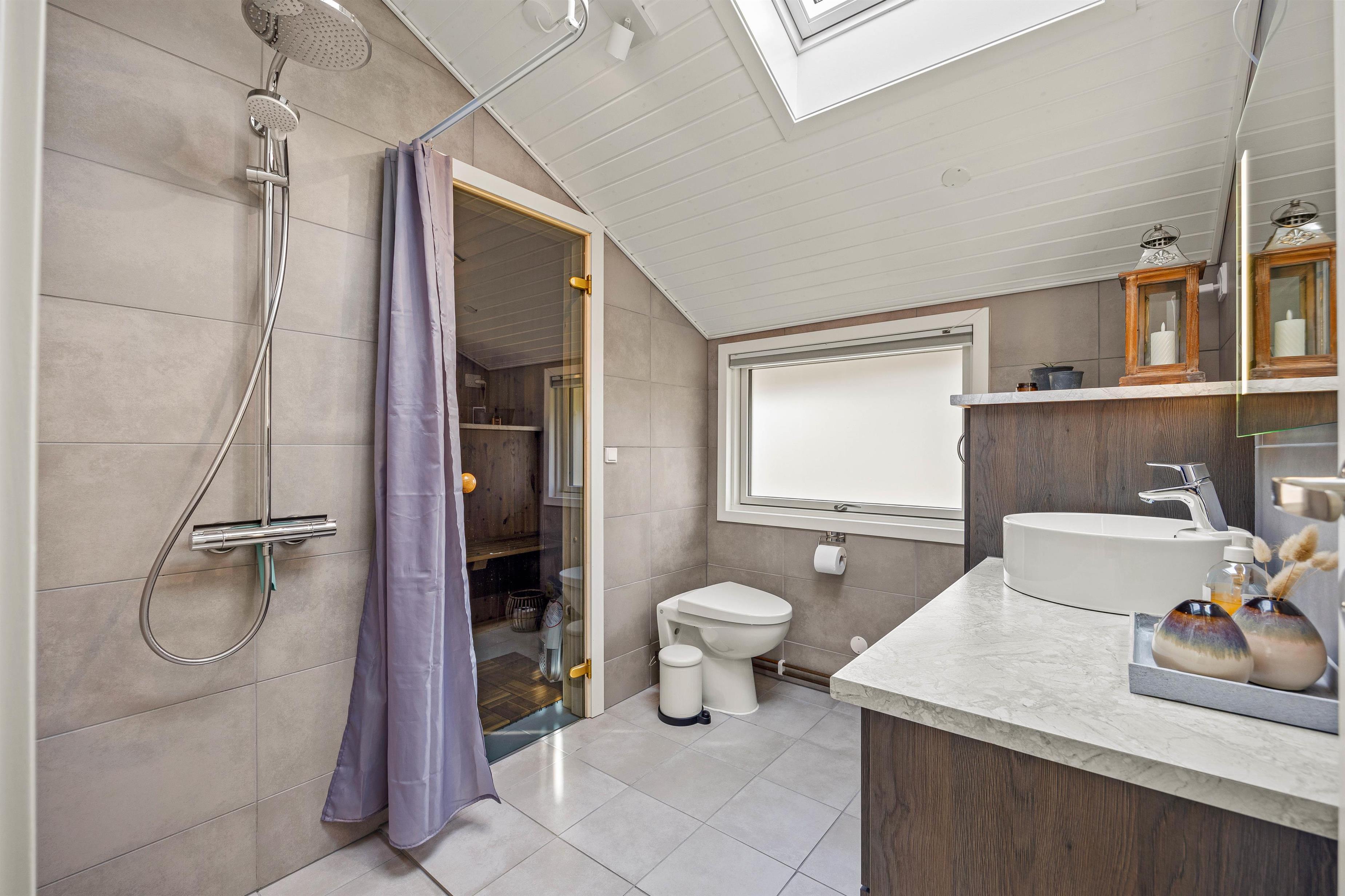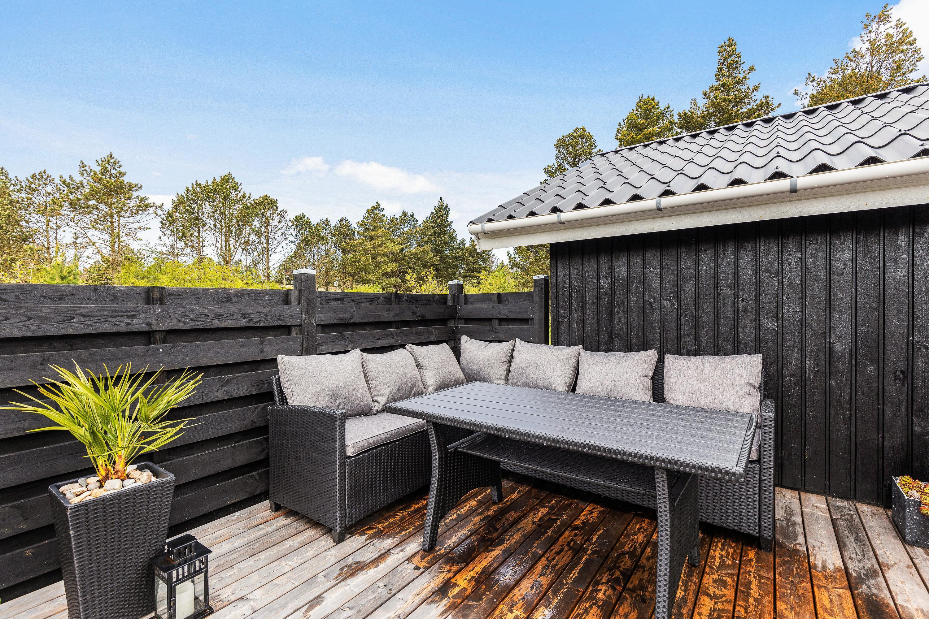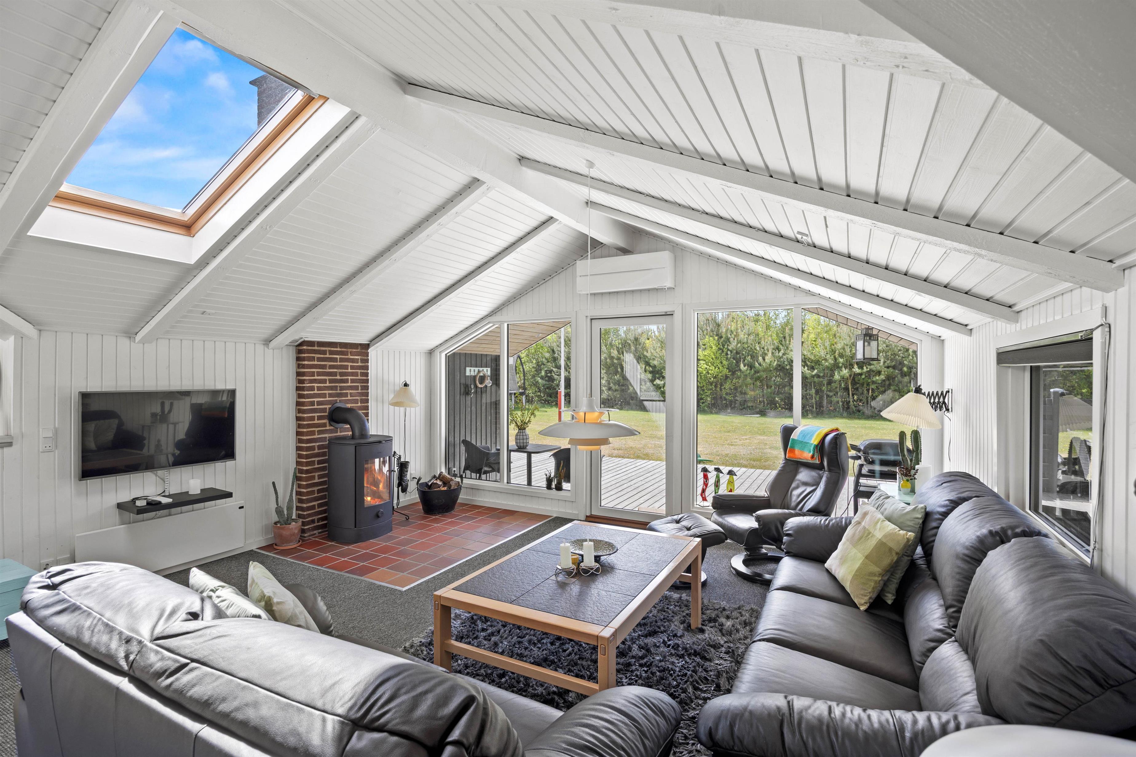 Lyst og moderne, men med bibeholdt feriehuscharme er dette idyllisk beliggende sommerhus perfekt til din ferie med familien. Det i 2019 renoverede feriehus indbyder til masser af indendørs hygge med brændeovn og sauna og til masser af solskin og frisk luft på den dejlig store terrasse, der forløber rundt om huset. Praktiske detaljer som vaskemaskine, opvaskemaskine og gulvvarme i badeværelset afrunder billedet.