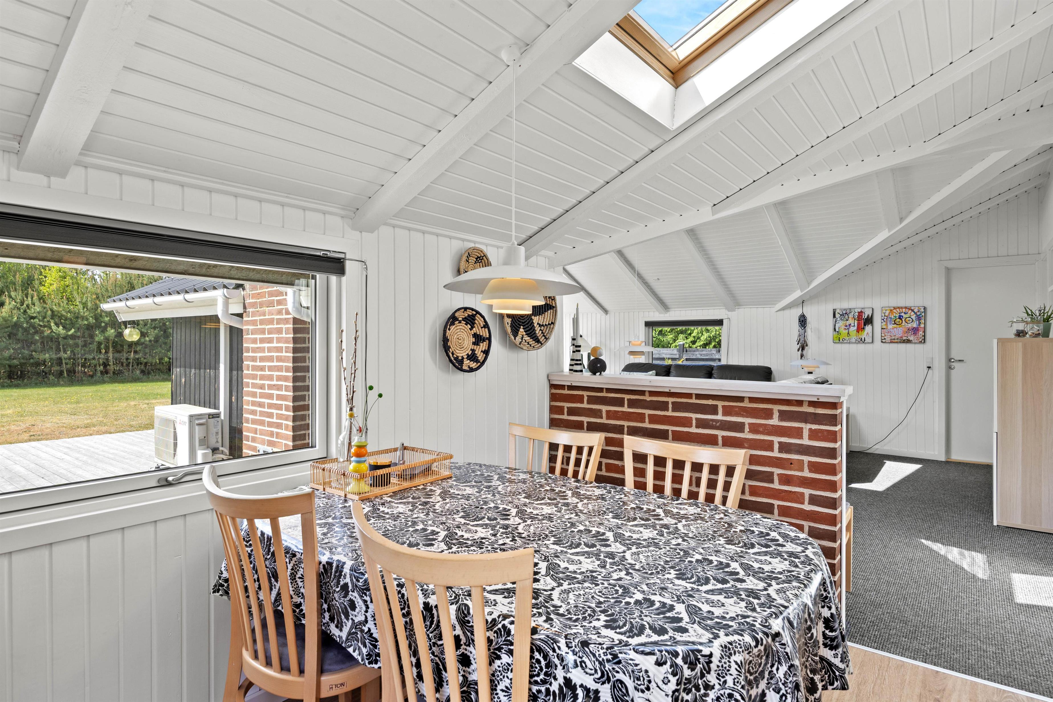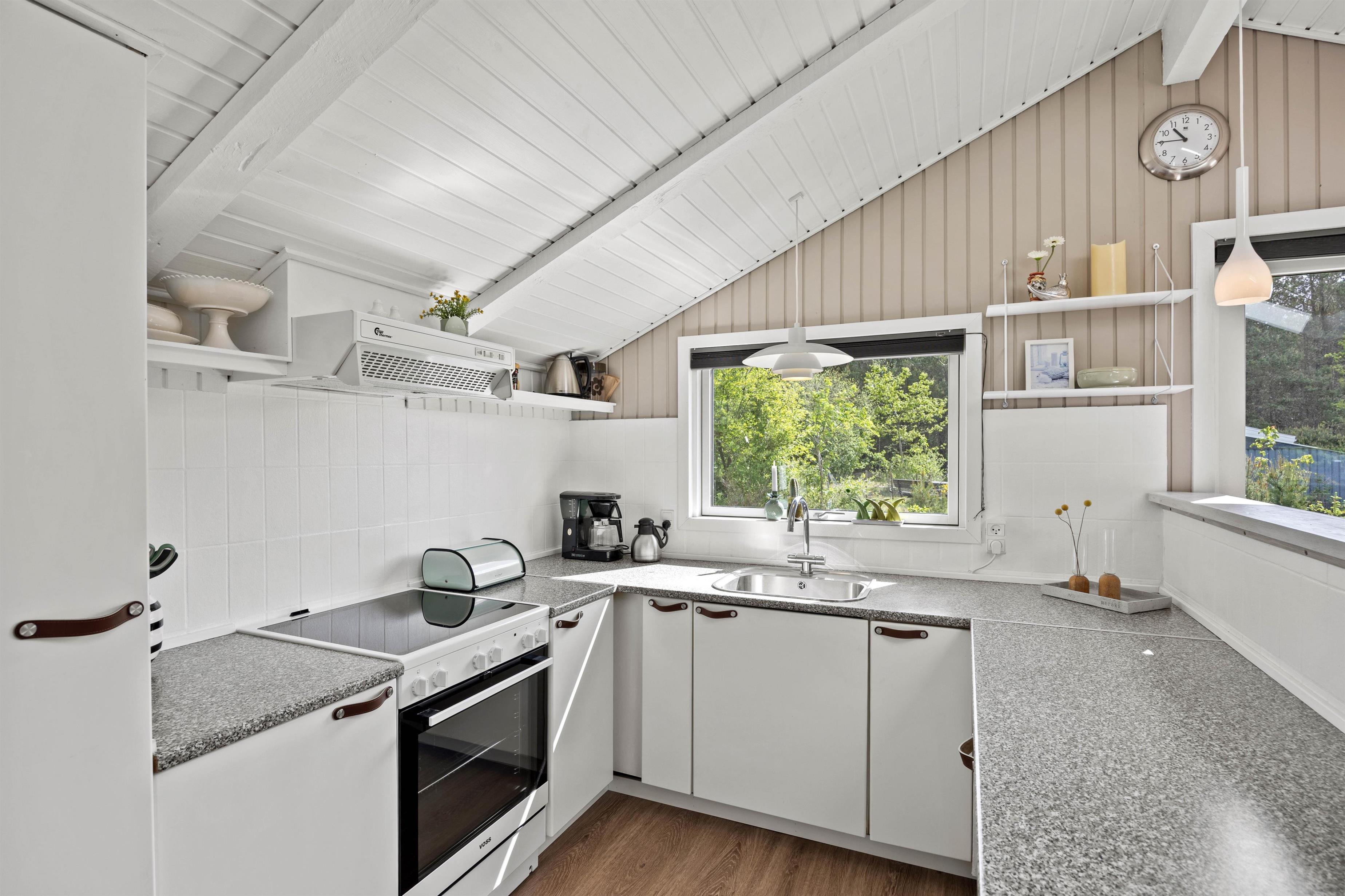 Kirkeflod 60 indbyder til rigtig, klassisk sommerhusferie. Her er god plads til familiehygge i det lyse stue-alrum med det åbne køkken. Efter aftensmaden er det oplagt at finde familiespillene frem og afslutte dagen med en familiedyst i Partners.