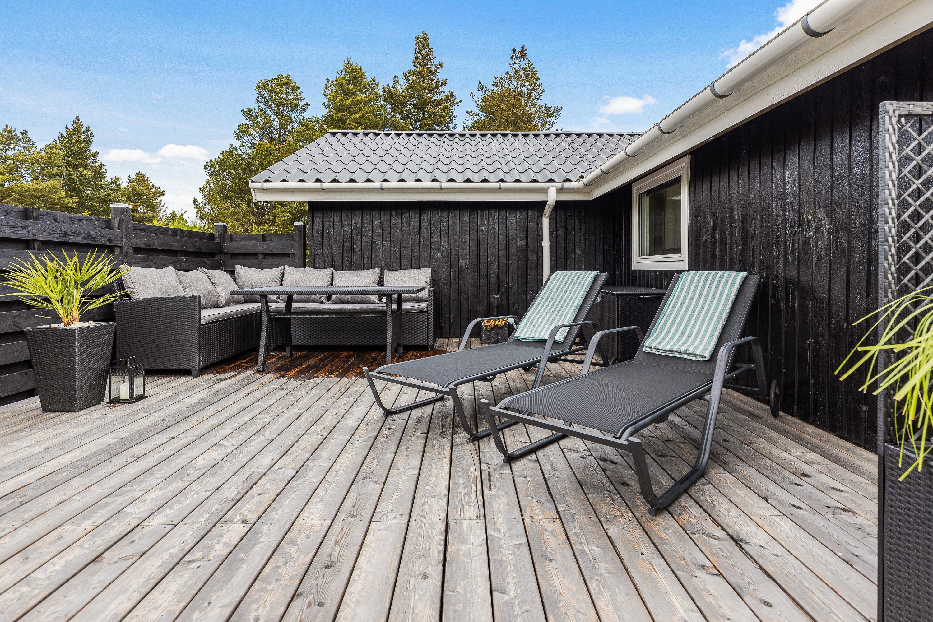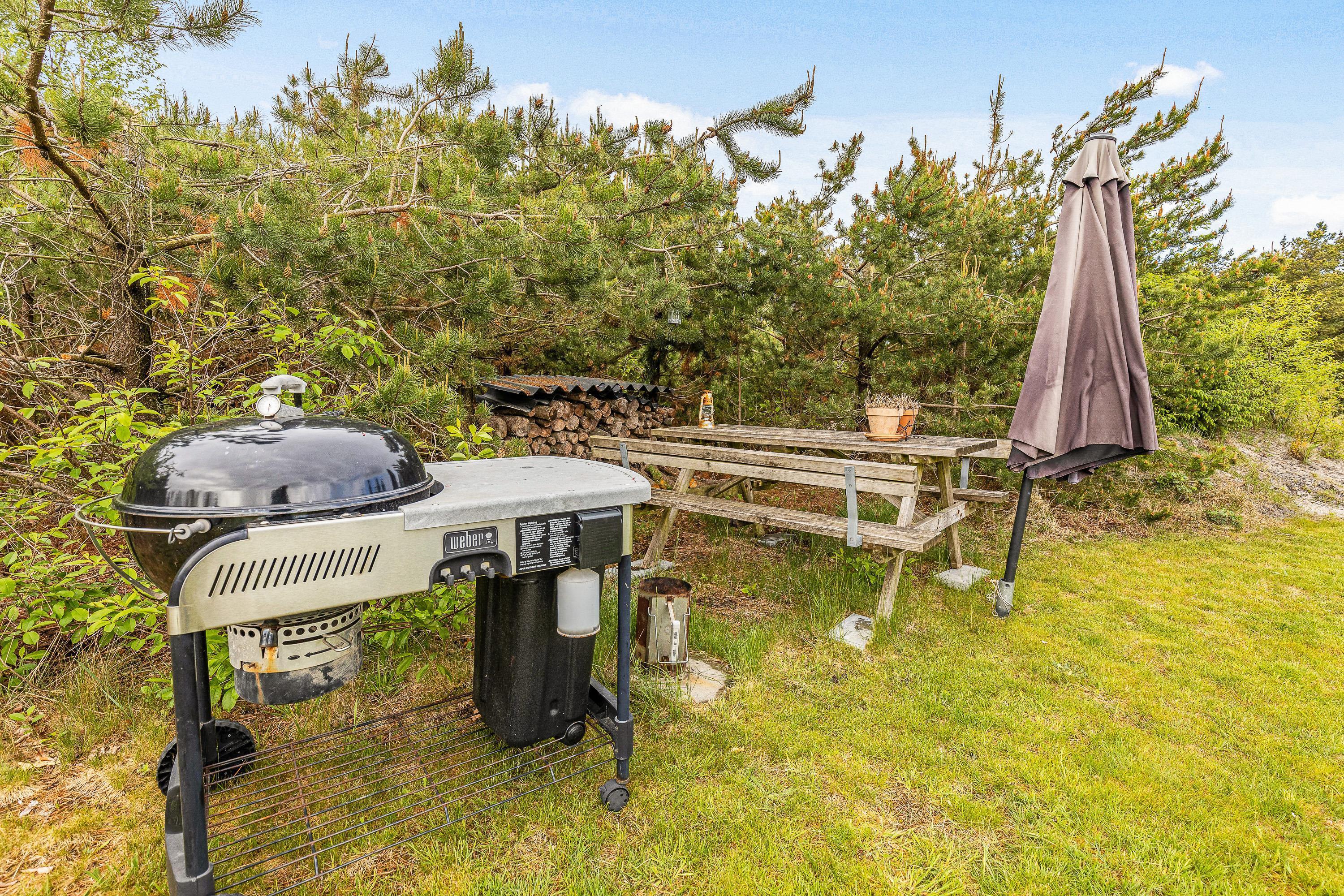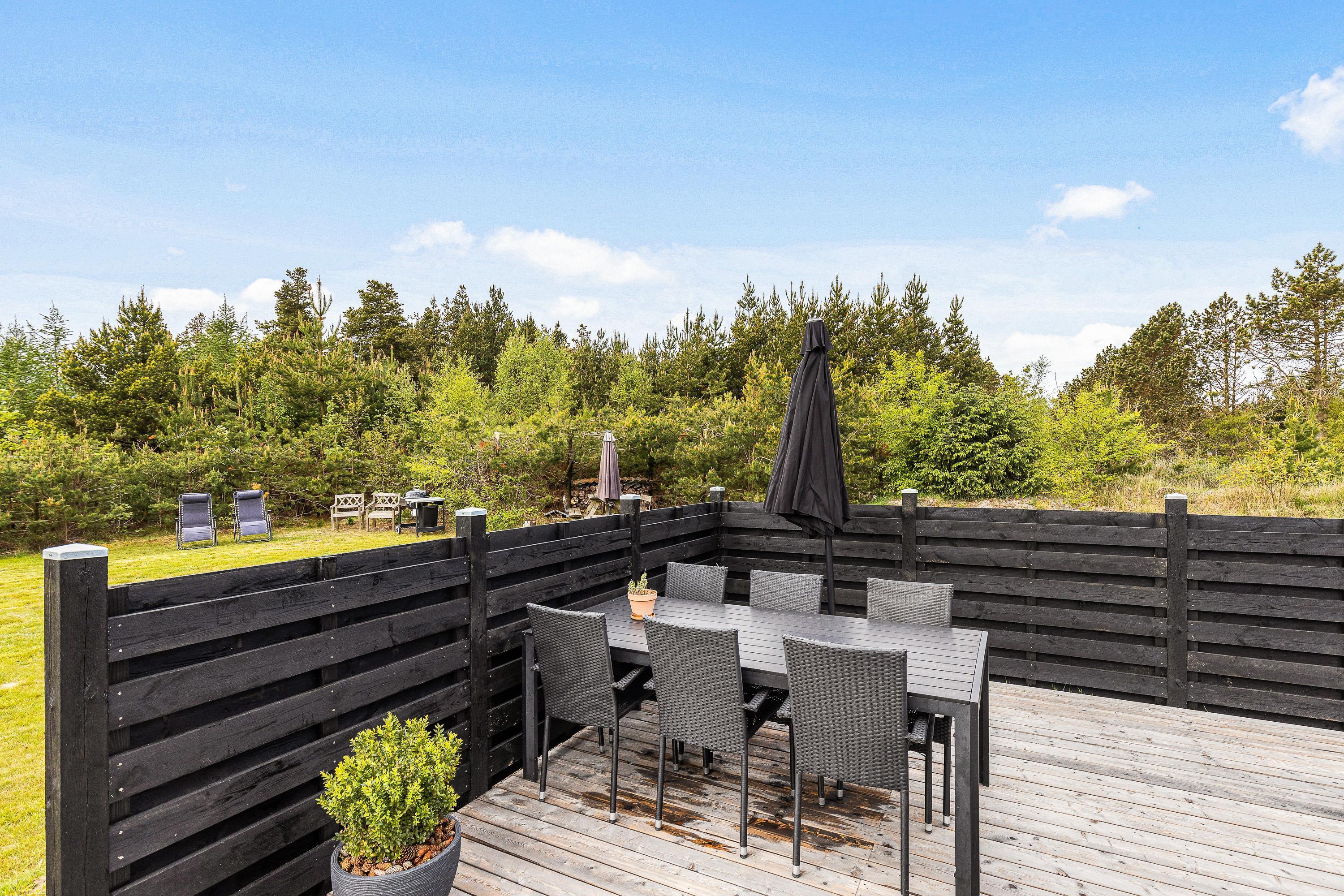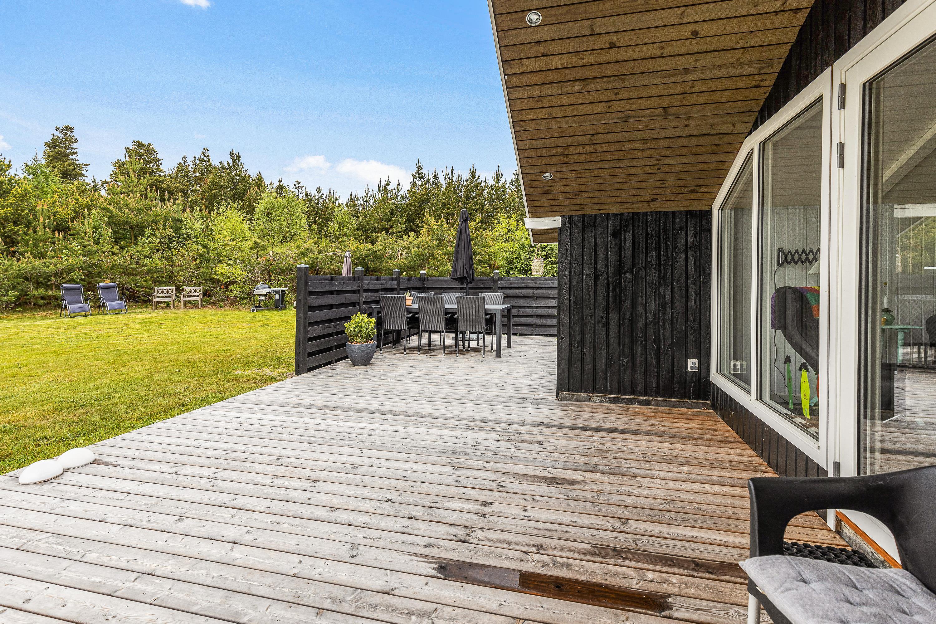 Imens resten af familien sover lidt længere, kan du tage morgenkaffen med på terrassen og nyde den klare morgenluft og fuglenes sang fra de omkringliggende træer. Når middagssolen bager, kan I søge skygge under husets udhæng og måske skal der om aftenen tændes op i grillen og hygges med god mad og snak indtil solen går ned.
