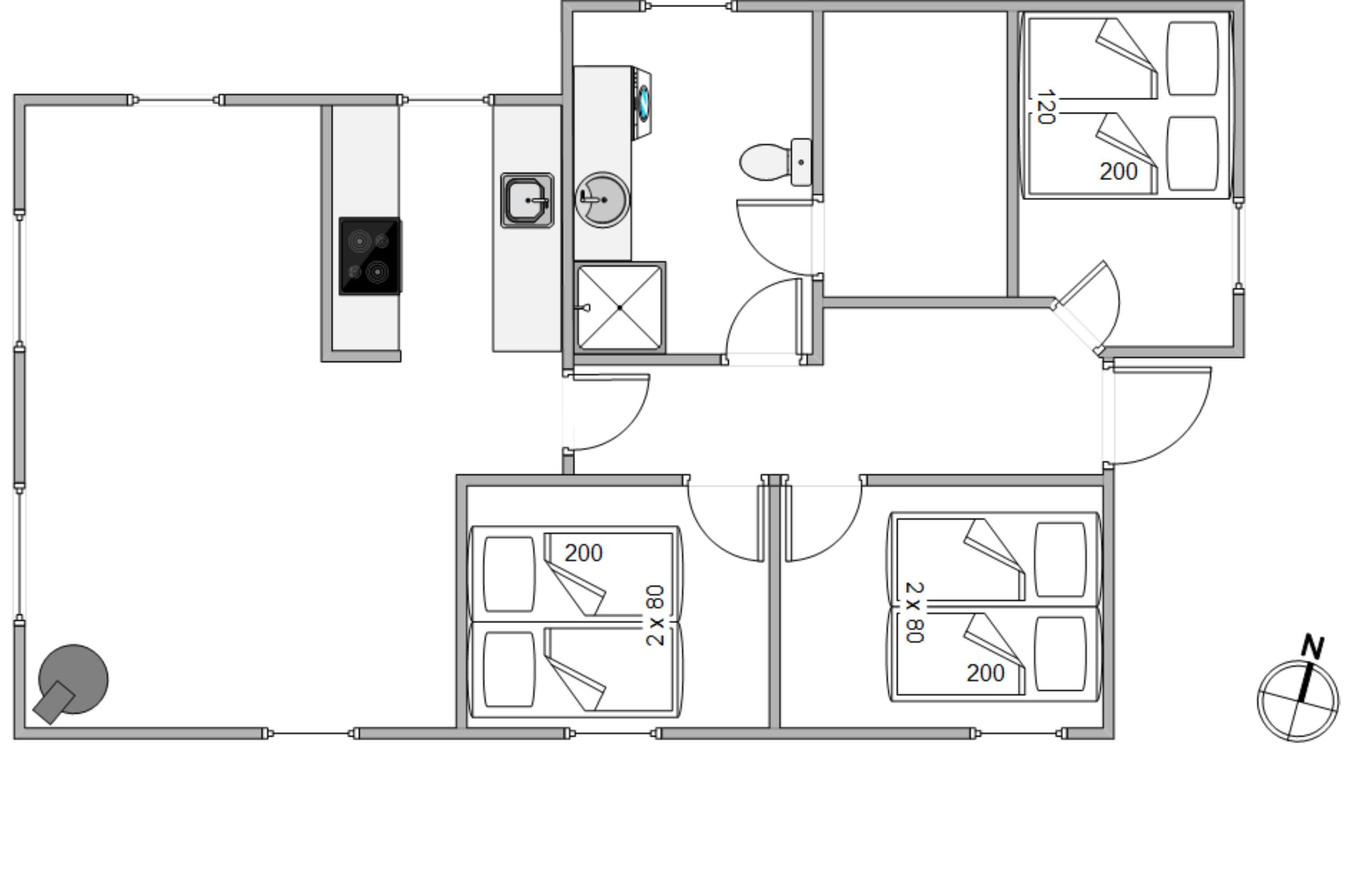 Husets centrum er det lyse og venlige opholdsrum med hjørnesofa, brændeovn, fladskærm og DVD-afspiller og spiseafdeling. Opholdsrummet har også en varmepumpe, så I altid har en behagelig temperatur. Her finder I også det veludstyrede, integrerede køkken. I den anden ende af husetligger de tre soveværelser, hvor I kan hvile jer og få udsovet efter en spændende og udmattende dag i den friske havluft.