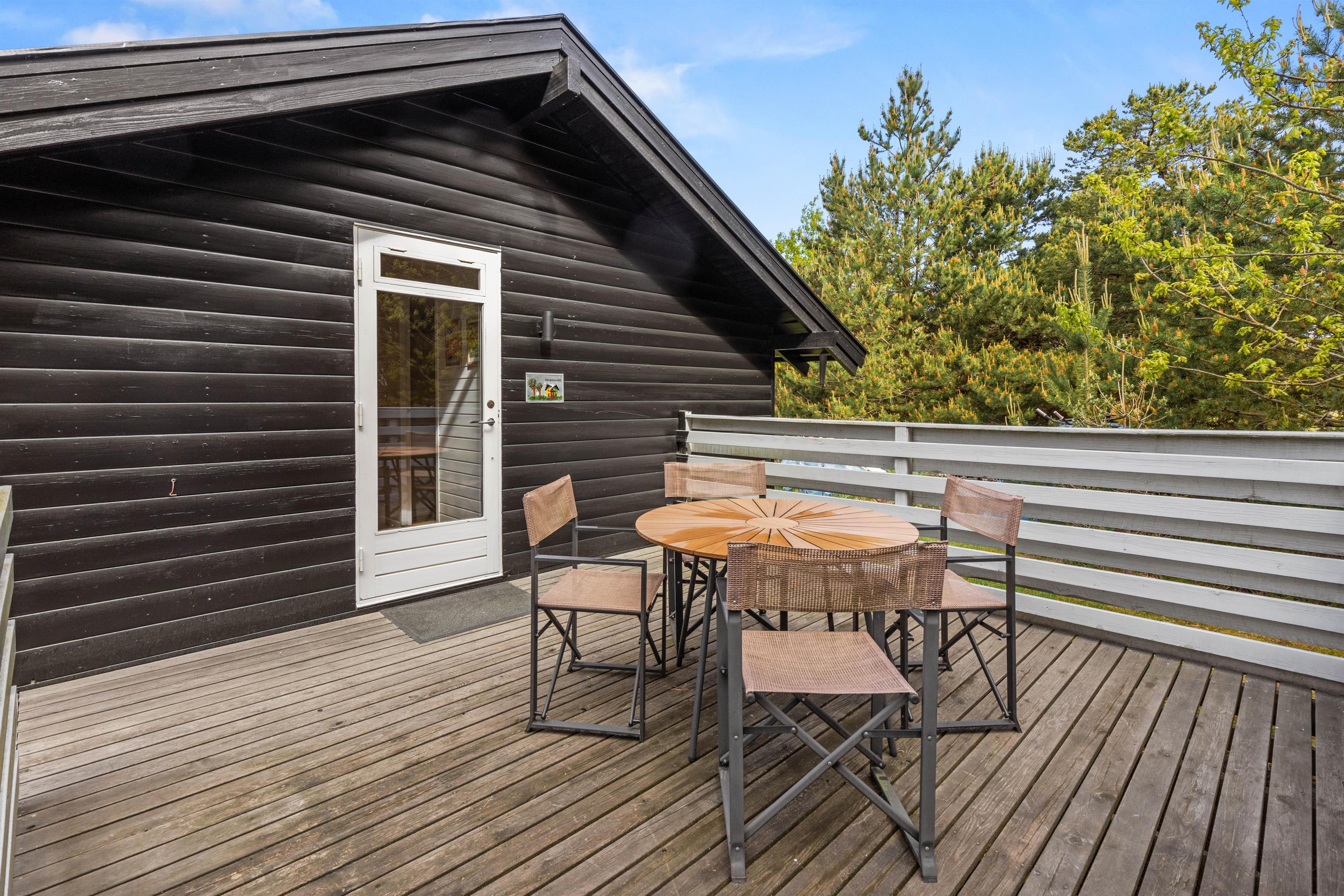 Når I træder ind i sommerhuset, bliver I straks mødt af de lyse trælofter og vægge, der sammen med den moderne indretning giver den skønne sommerhusstemning, der gør at man straks føler sig hjemme. Det store opholdsrum samler det flotte køkken, spiseområdet og stuen og gennem de store vinduer, har I udsigten over terrassen og den skønne naturgrund.