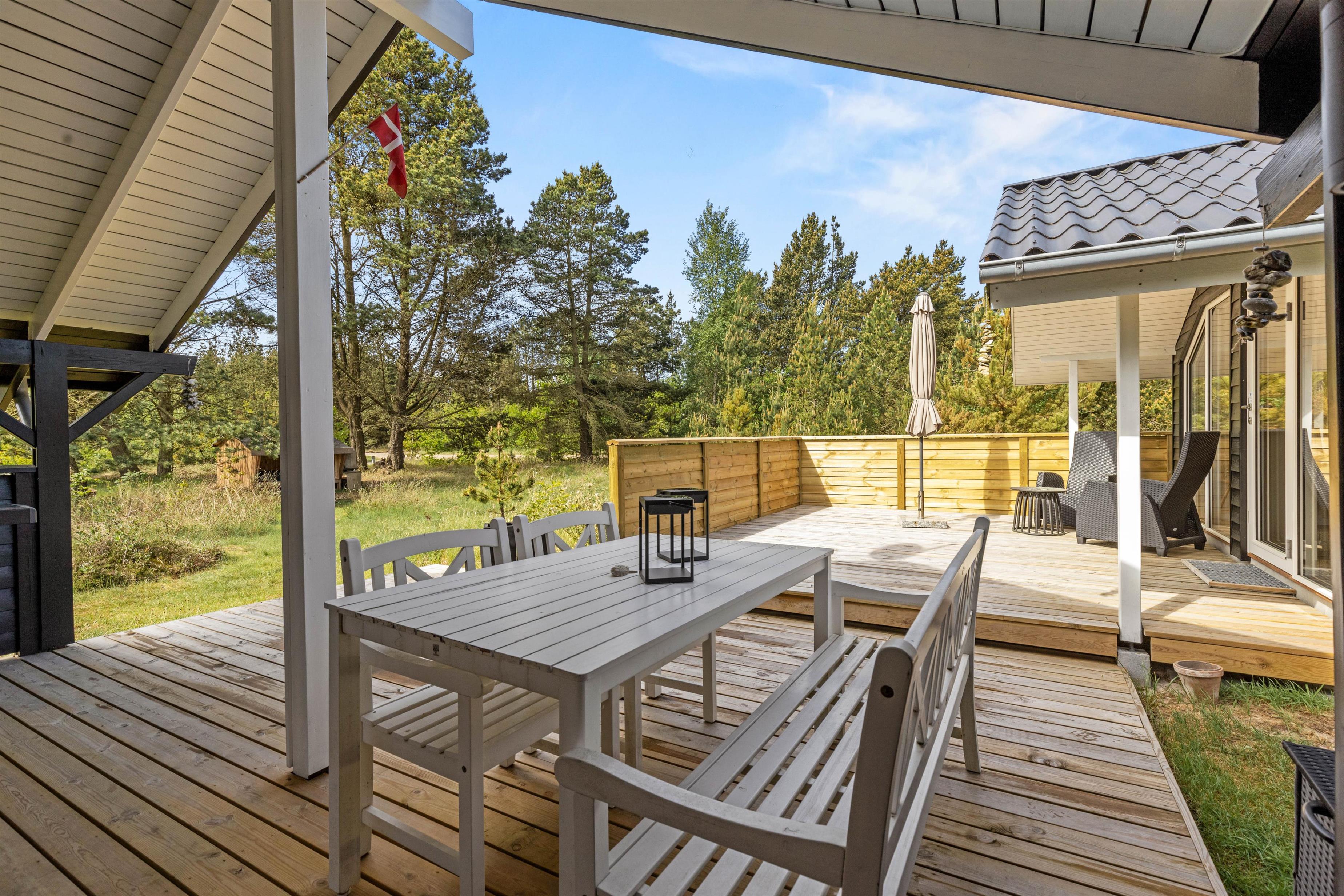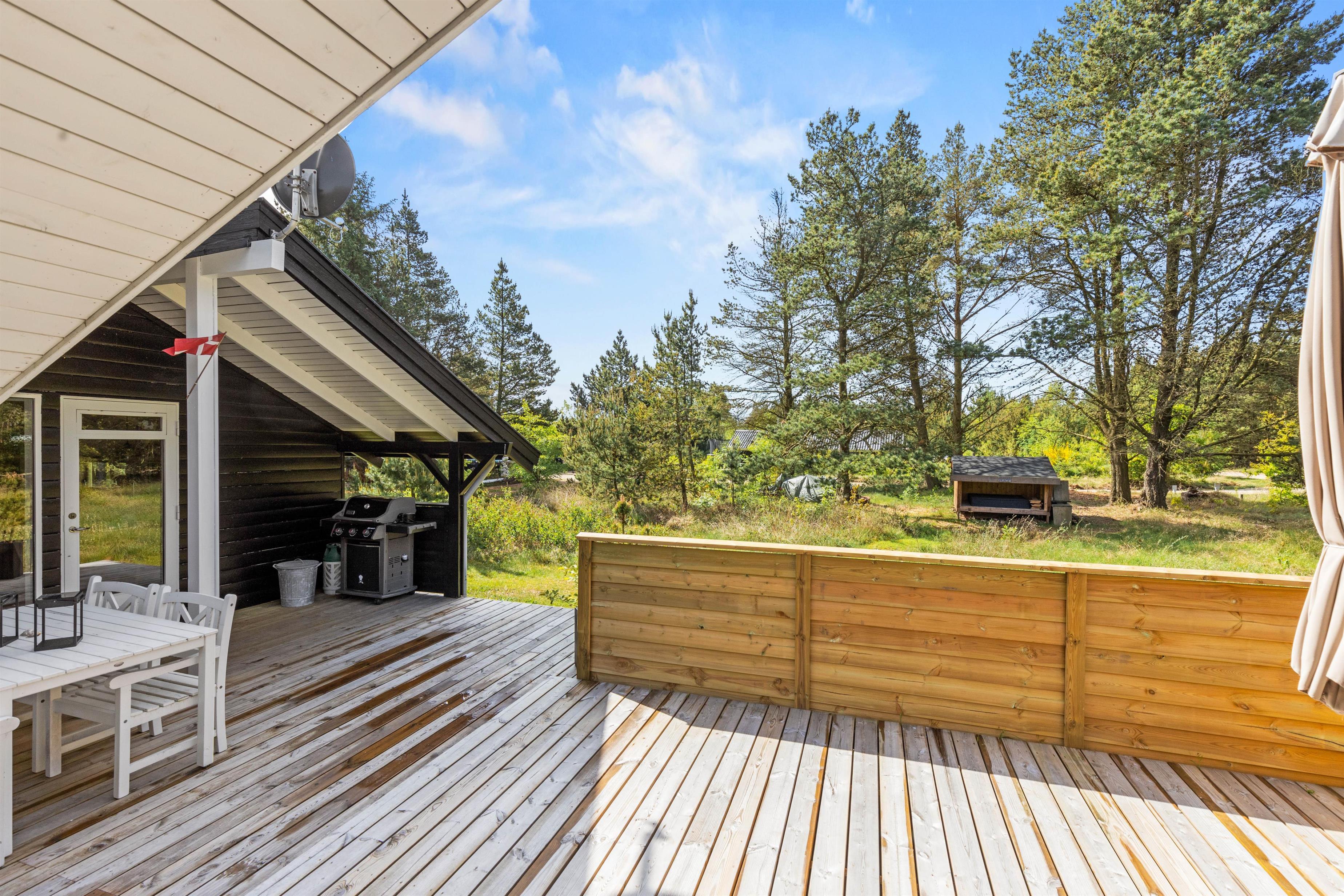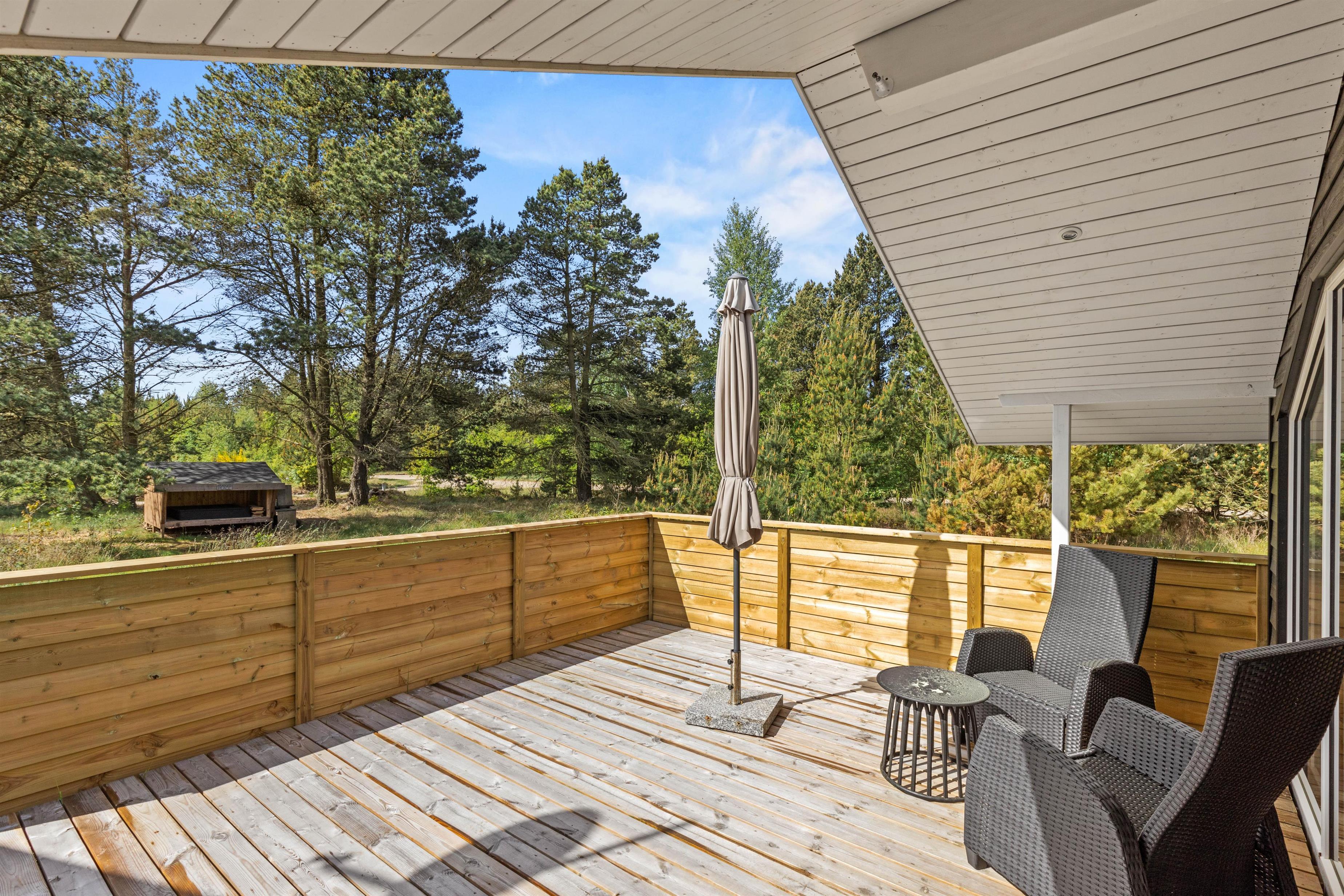 Sommerhusgrunden er omgivet af træer, der skærmer for blæsten på de mere vindige dage. Her kan I nyde mange gode feriestunder sammen, uanset om I foretrækker at nyde havemøblerne på den overdækkede terrasse, eller om I er mere til leg og udeliv. Her på Kirkeflod 82 er der nemlig rigtig skønne omgivelser, hvor I kan gå på opdagelse, og når dagen går på hæld, kan I hoppe i shelteret og falde i søvn i den friske luft.