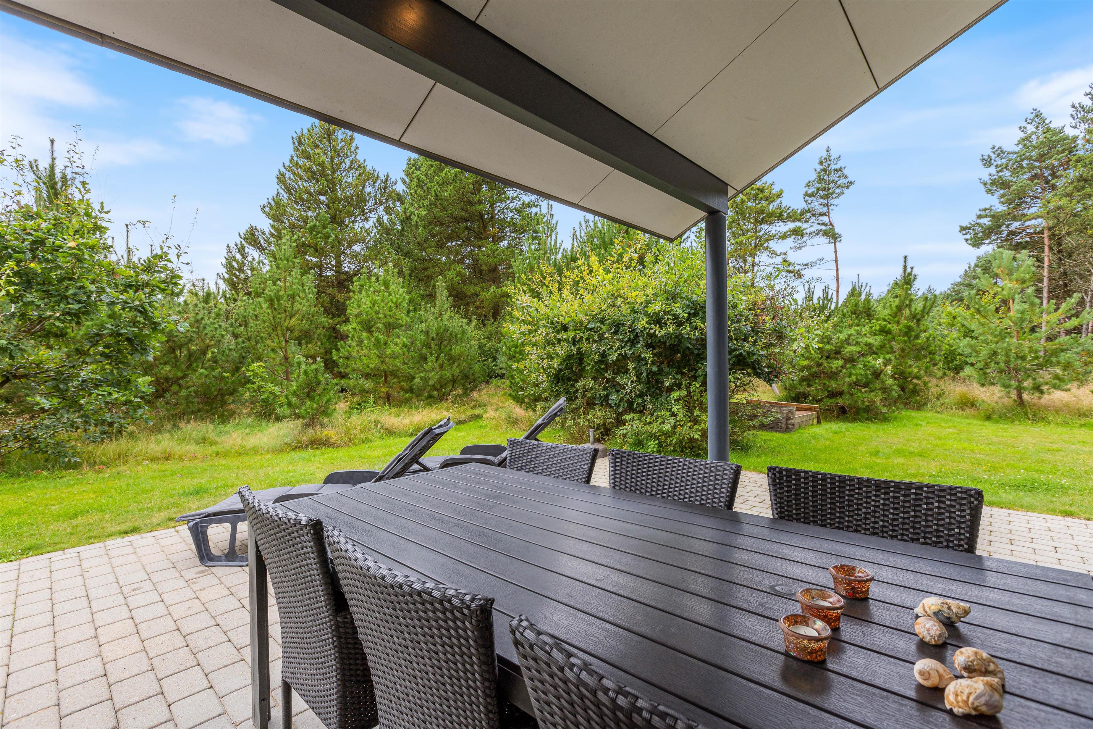 Sommerhus på læfyldt grund med overdækkede terrasser