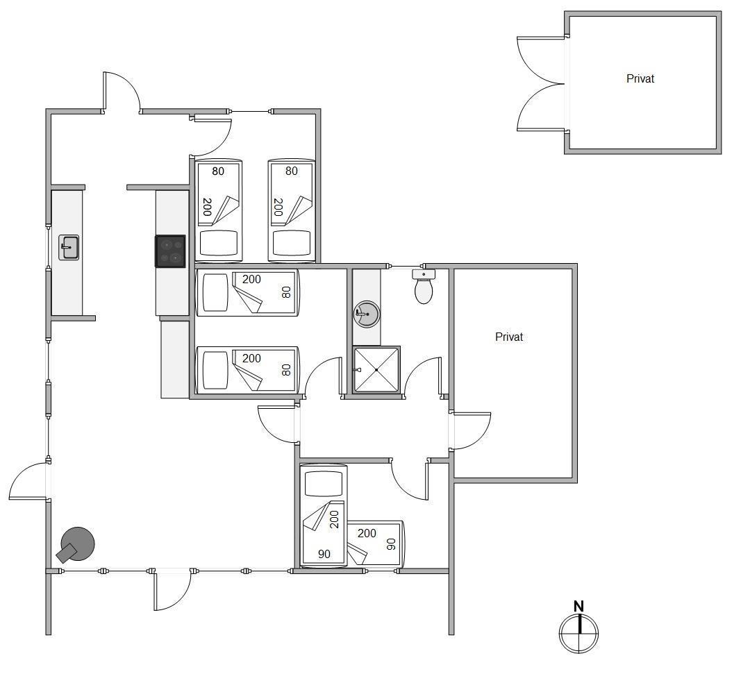 Houstrup er kendt for sin naturskønne beliggenhed og rolige omgivelser, hvilket gør det til et populært valg for ferie. Kun 3500 meter fra sommerhuset finder I den lange, hvide sandstrand, der indbyder til afslappende gåture, solbadning eller en dukkert i det friske hav. Når det kommer til nødvendigheder, ligger nærmeste indkøbsmulighed blot 3000 meter væk, hvilket gør daglige indkøb til en nem og bekvem oplevelse.