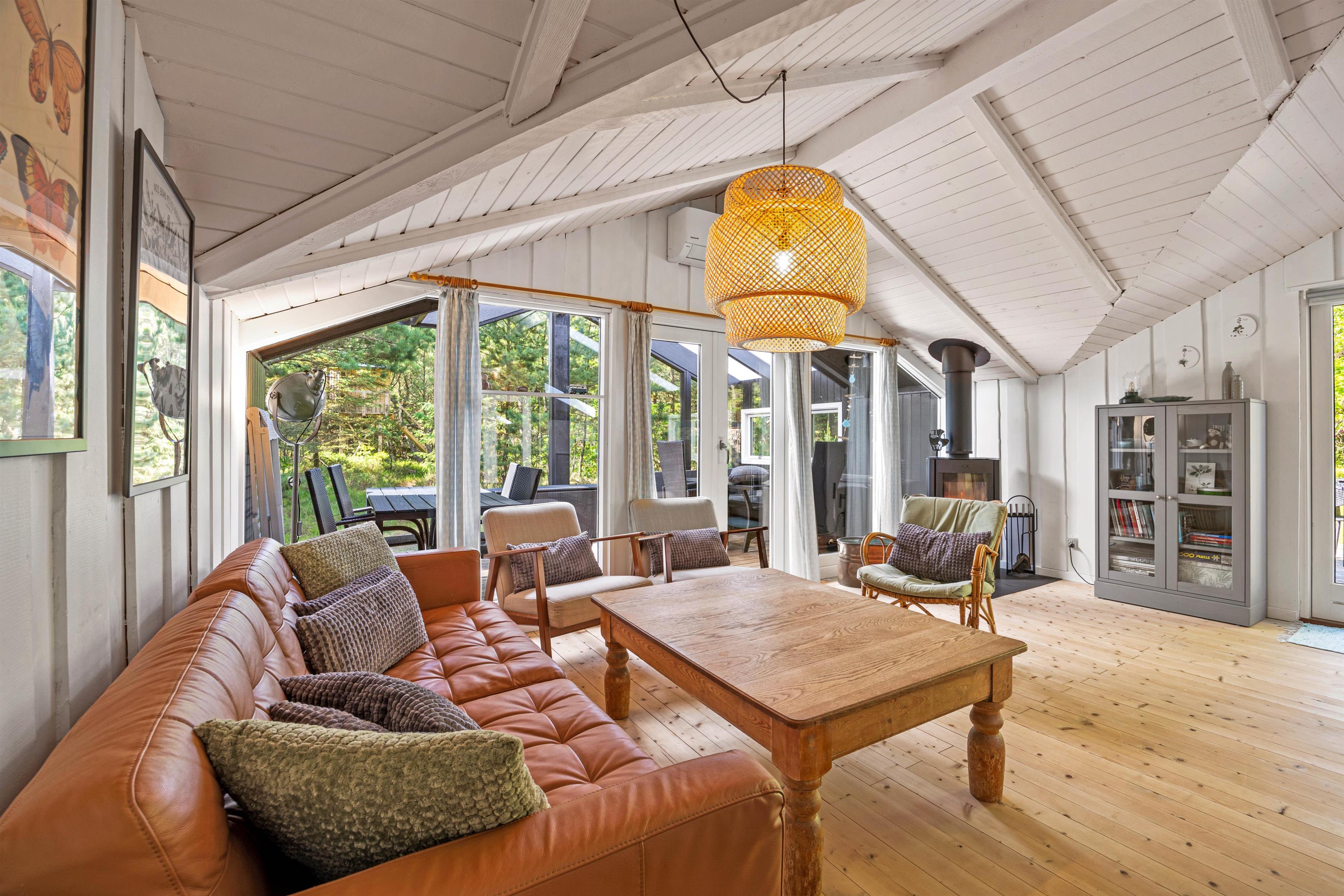 De 70 kvadratmeter er indrettet lyst og venligt med en blanding af nyt og gammelt, som giver sommerhuset en rigtig fin og hyggelig atmosfære. Her af 3 soverum, hvoraf 2 af disse er udstyret med 2 enkeltsenge i hvert værelse, og det tredje rum har en norskkøjeseng, som feriens yngste gæster helt sikkert vil have glæde af.