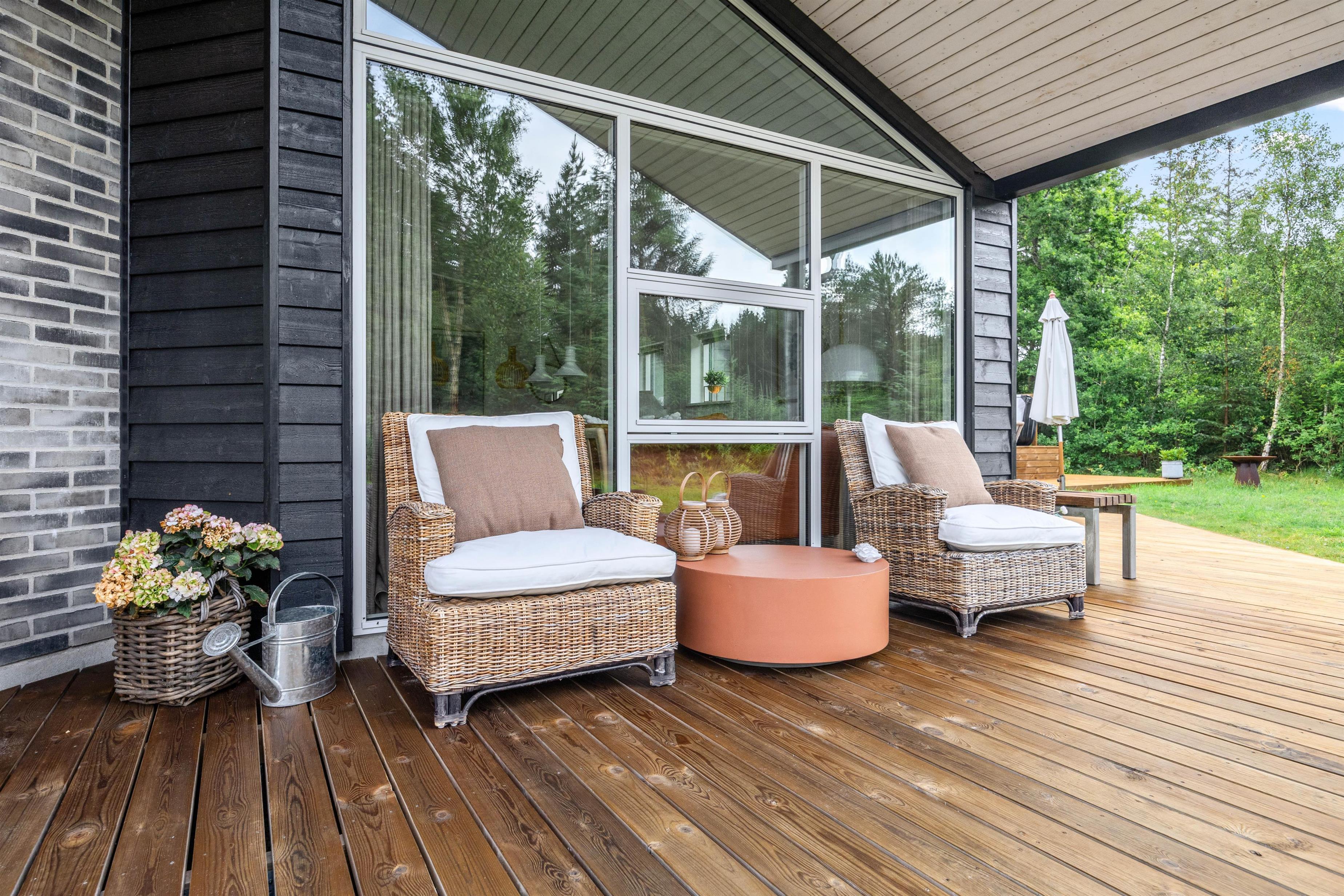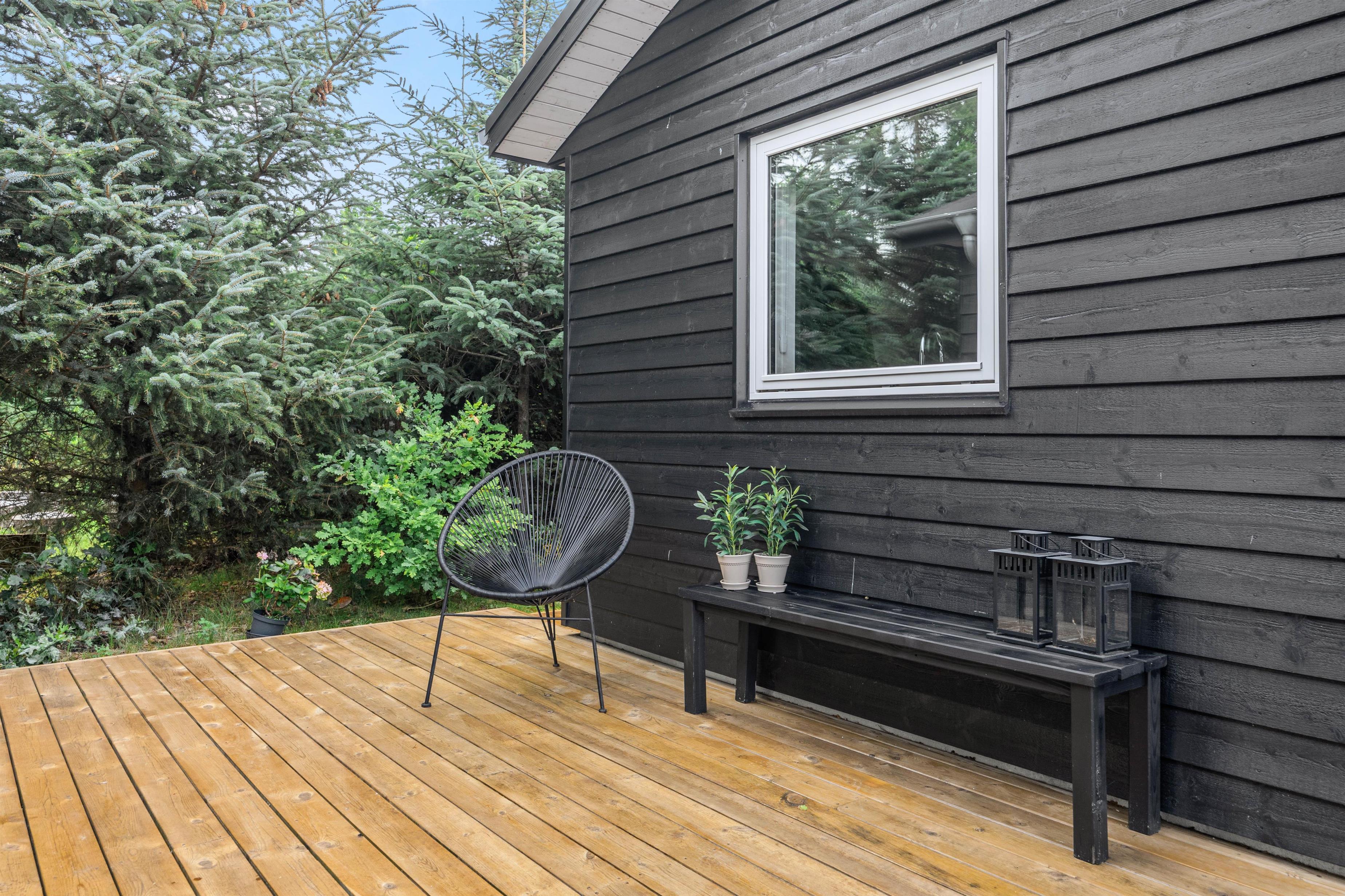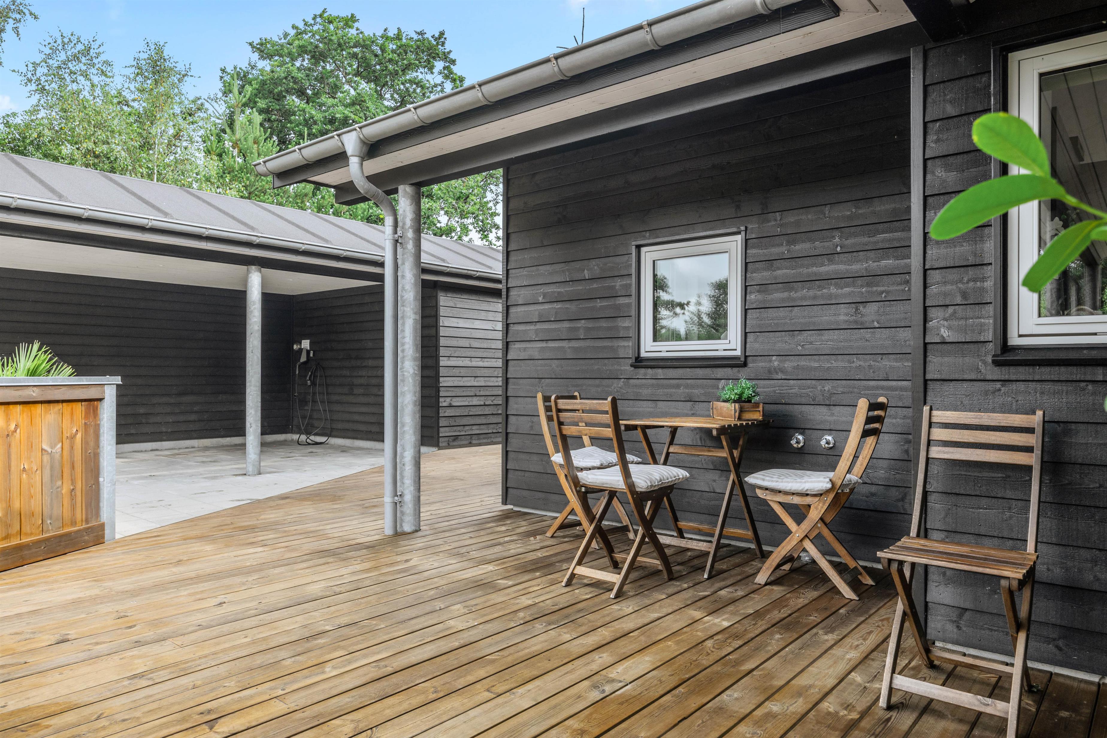 Terrassens højdepunkt er uden tvivl udespaen, en perfekt oase for at lade musklerne slappe af. Efter en tur i spaen kan I tage en forfriskende skyller under udebruseren, som kan benyttes fra april til november. Mens I slapper af og nyder omgivelserne på terrassen, kan I også oplade bilen klar til næste dags eventyr ved sommerhusets ladestander.