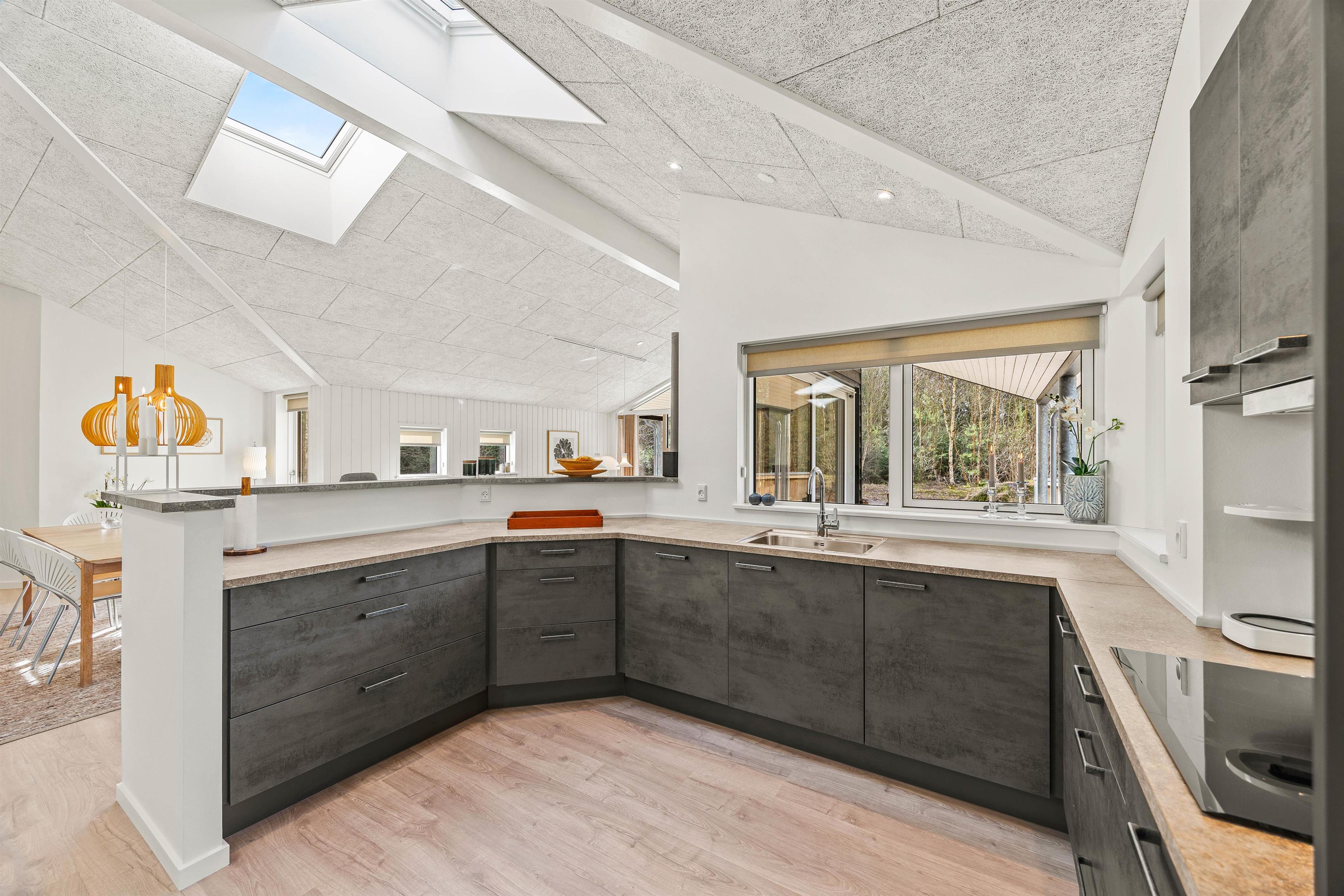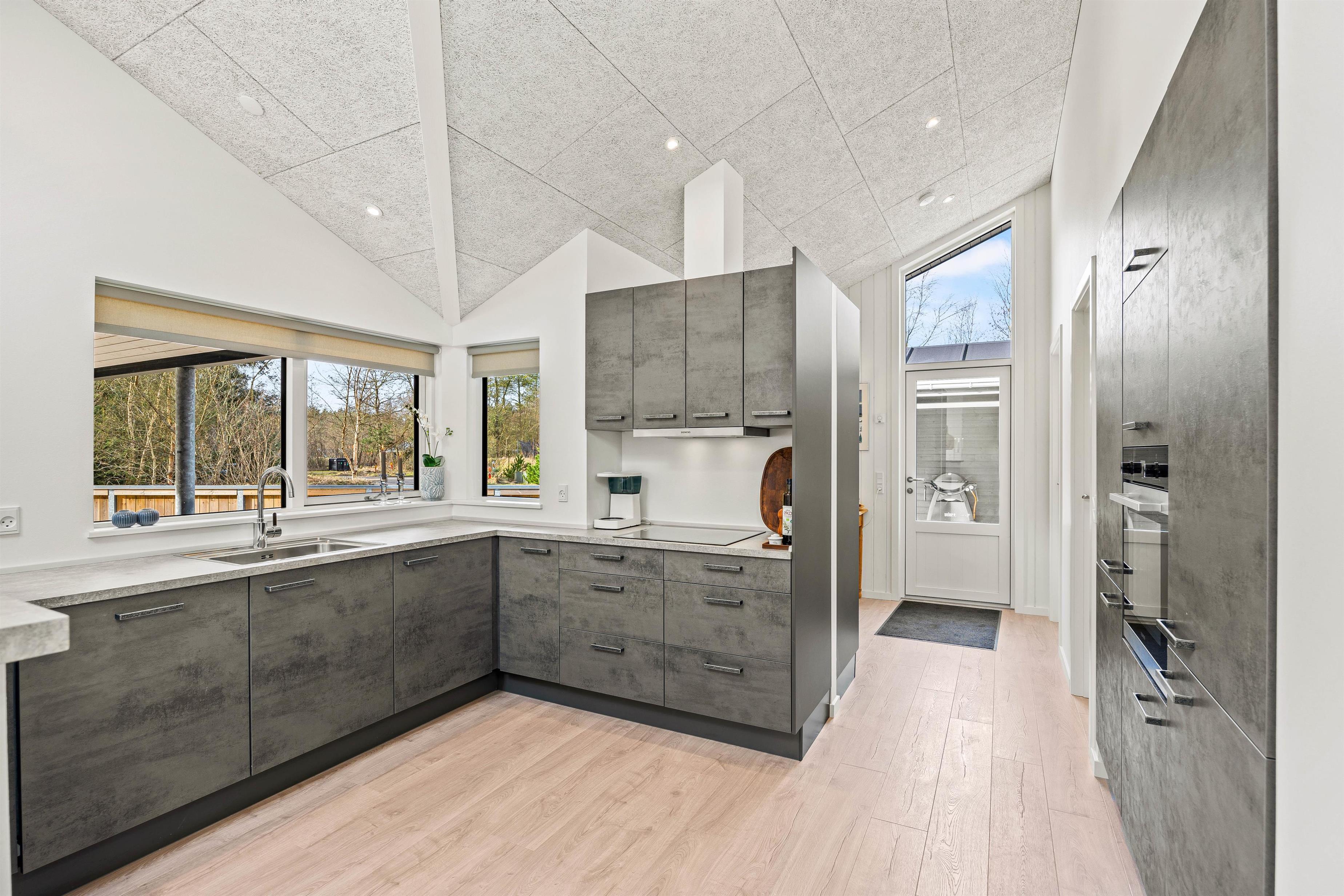 Indenfor fortsætter charmen med et rummeligt køkkenalrum, der byder jer velkommen til samvær og hygge med familien. I stuen skaber den hyggelige brændeovn den perfekte atmosfære for afslappende aftener.