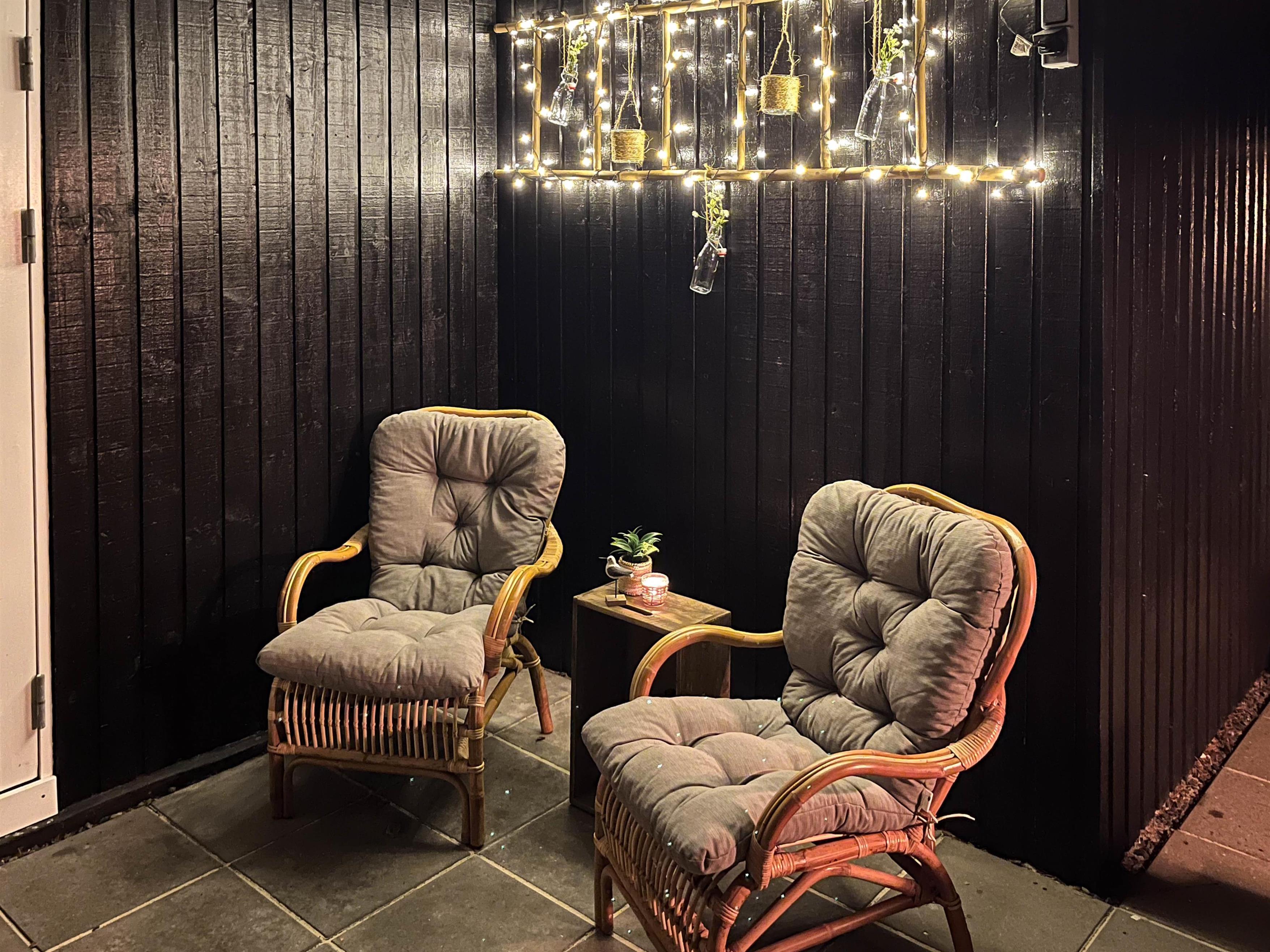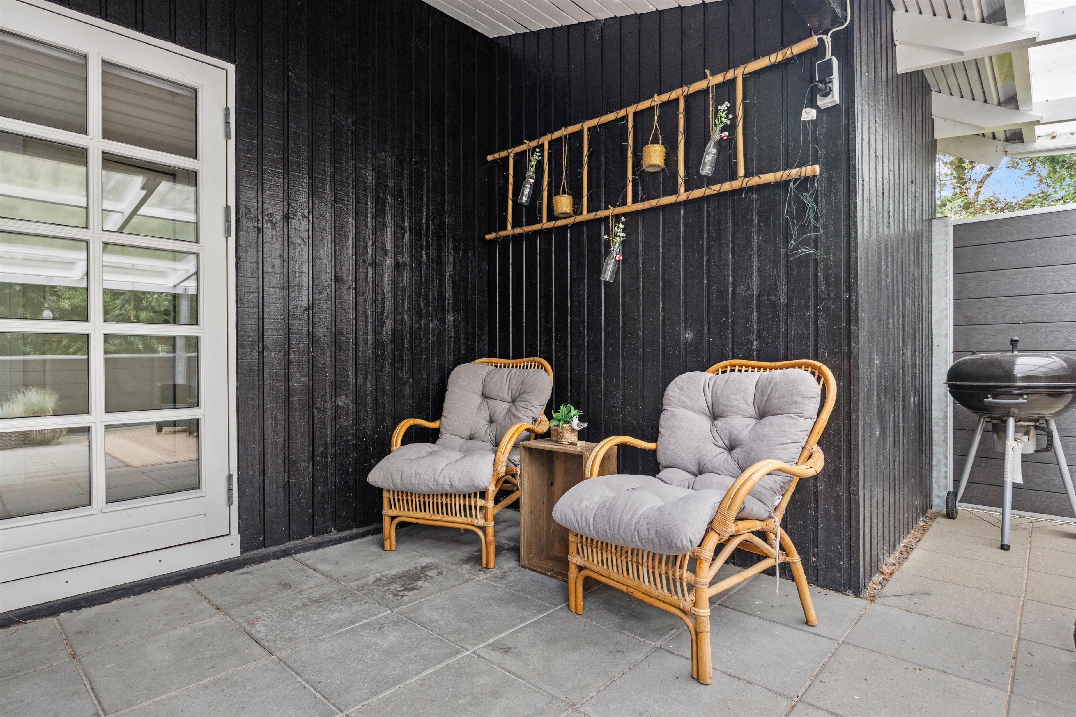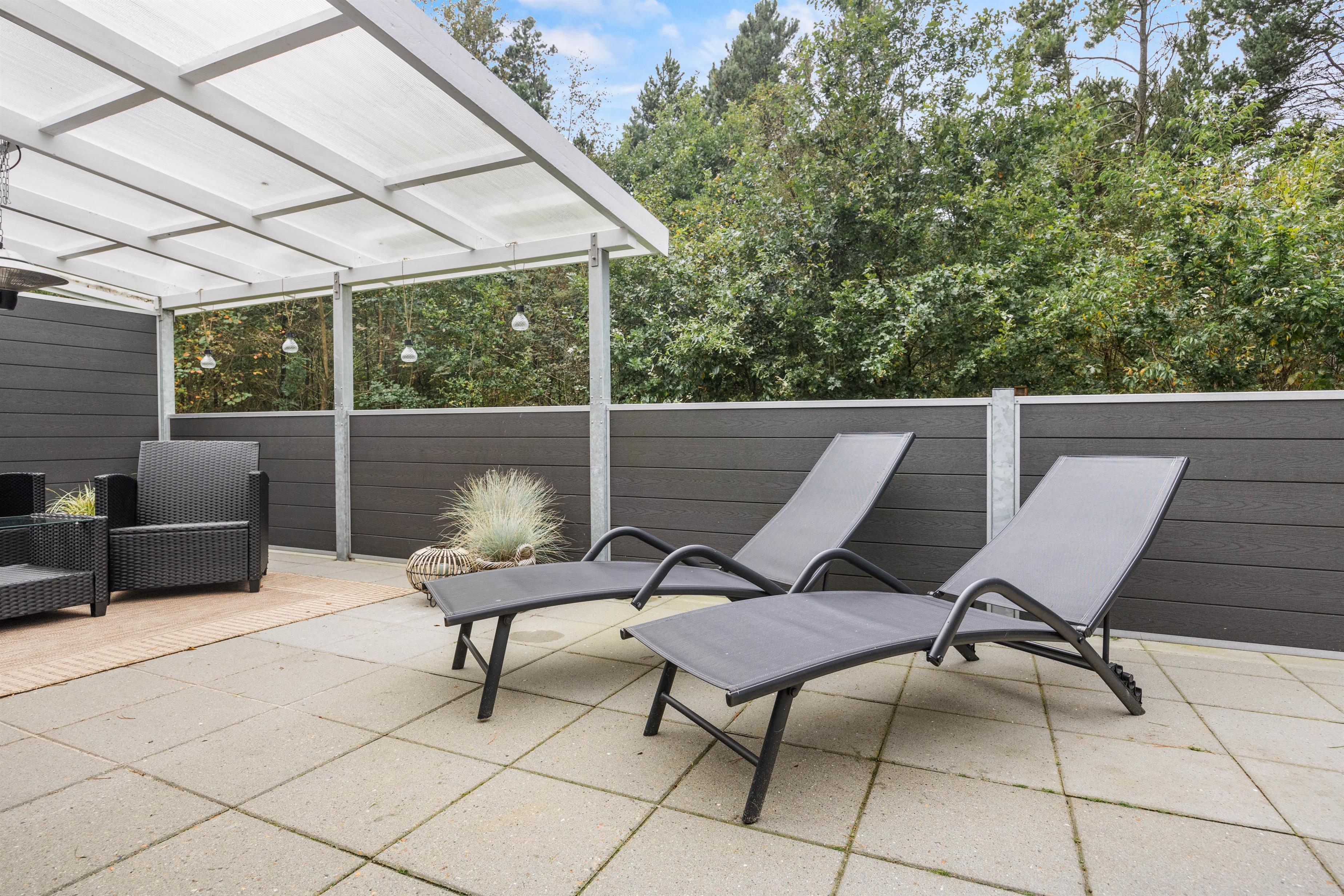 Efter en dag i solen er der intet bedre end at samles på den overdækkede terrasse. Her finder I også havemøbler, så I kan nyde lækre feriemåltider udendørs, mens hunden trygt kan lege på den lukkede terrasse.