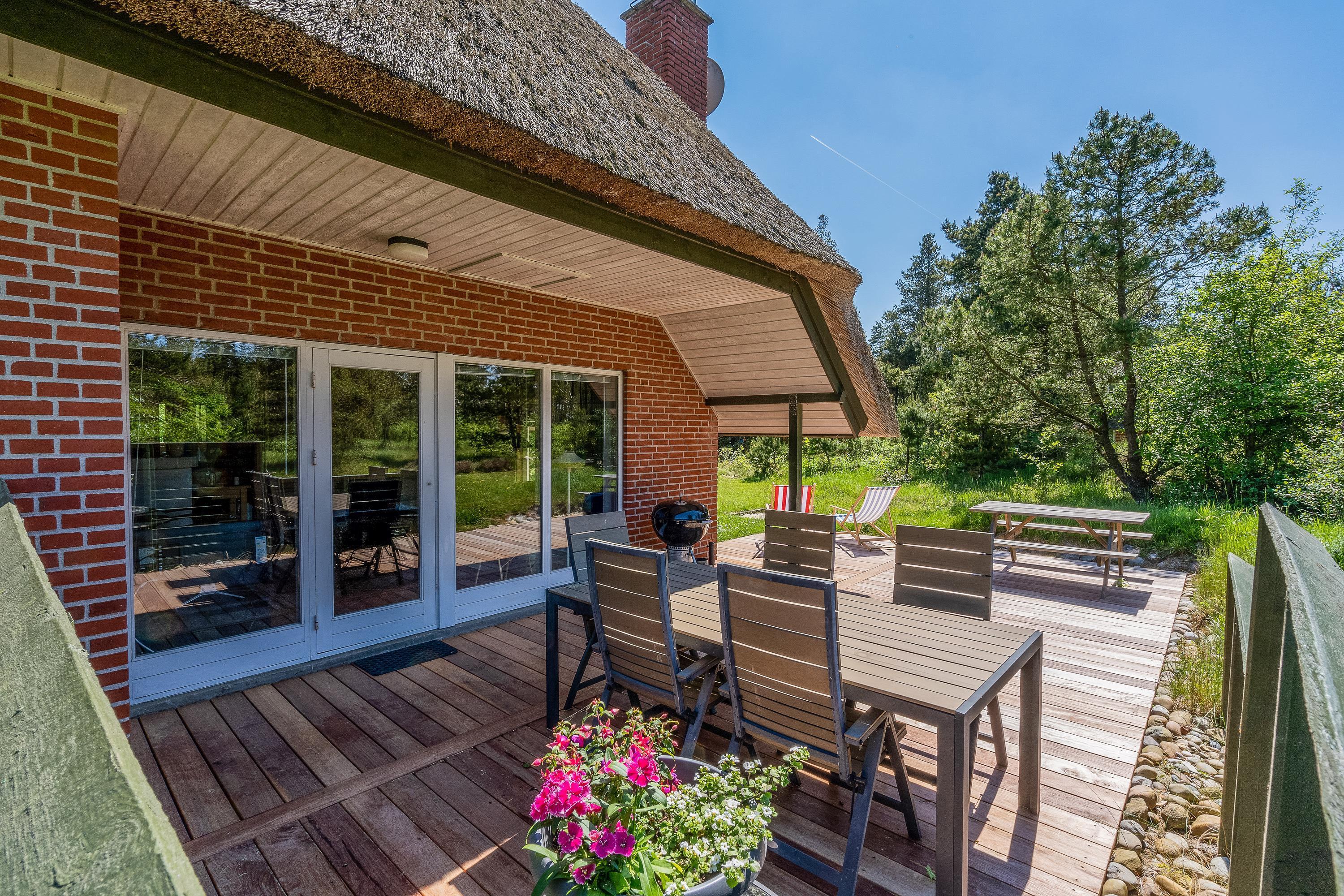Dette skønne stråtækte ikke-ryger hus på Sdr. Skovvej 39 i Houstrup byder plads til 6 personer og ligger på en stor naturgrund, omgivet af skovens høje træer. Huset ligger et stenkast fra Blåbjerg Plantage med et net af vandre- og cykelstier, og de 2 etager byder på masser af hygge og en behagelig atmosfære for op til 6 personer