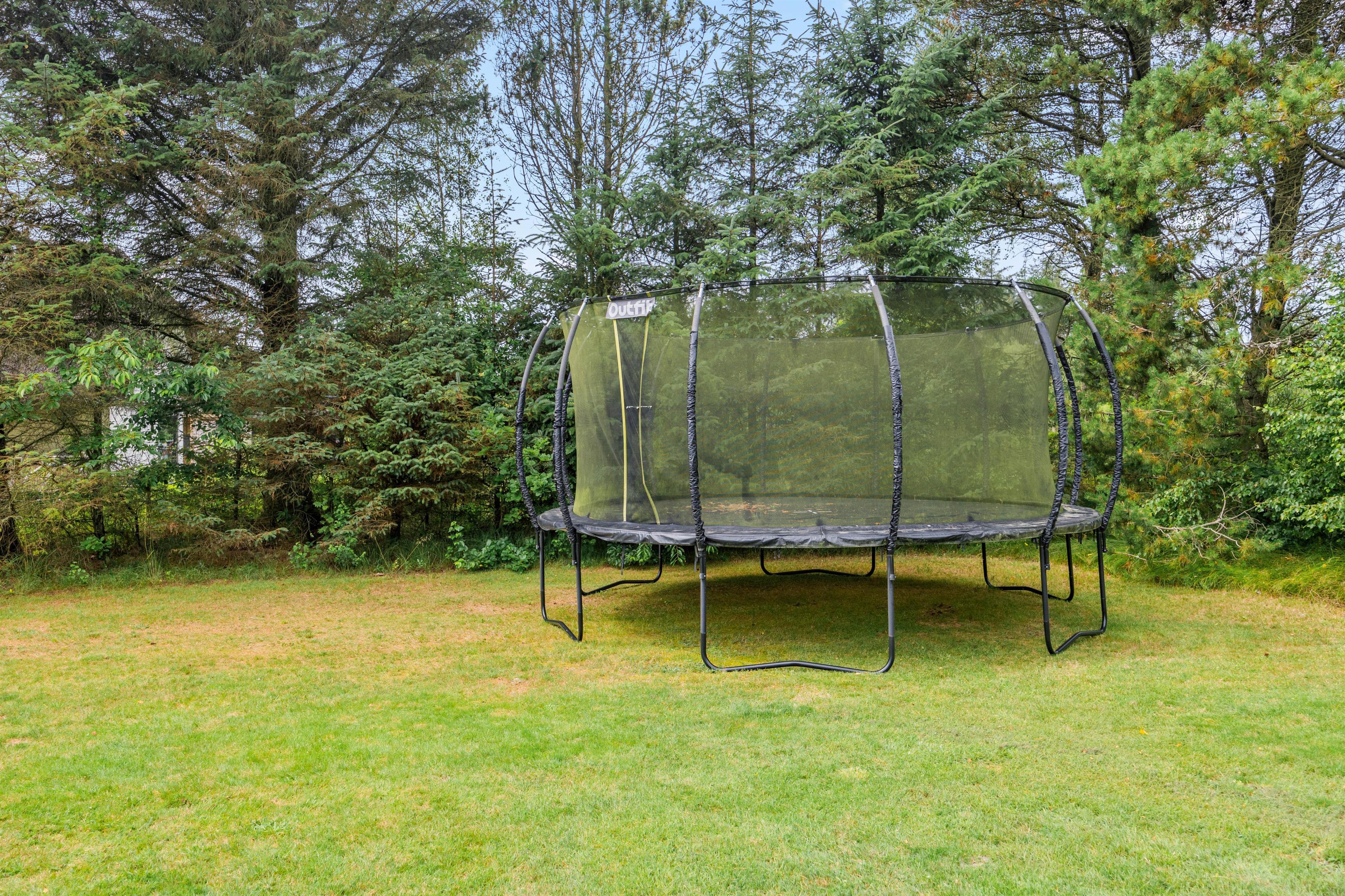 Den store naturgrund giver også børnene og hunden rig mulighed for at slå sig løs. Mens I læner jer tilbage i liggestolene, kan børnene nyde godt af gyngerne, sandkassen og sågar trampolinen, som står til rådighed fra april til oktober hvert år.